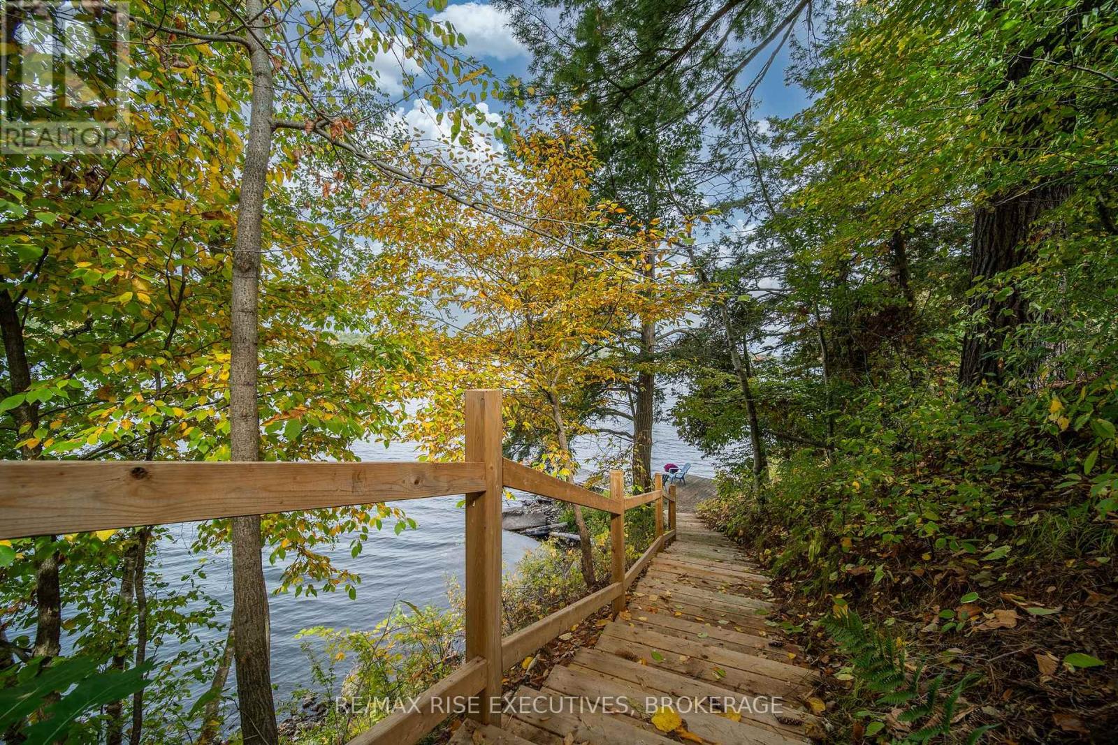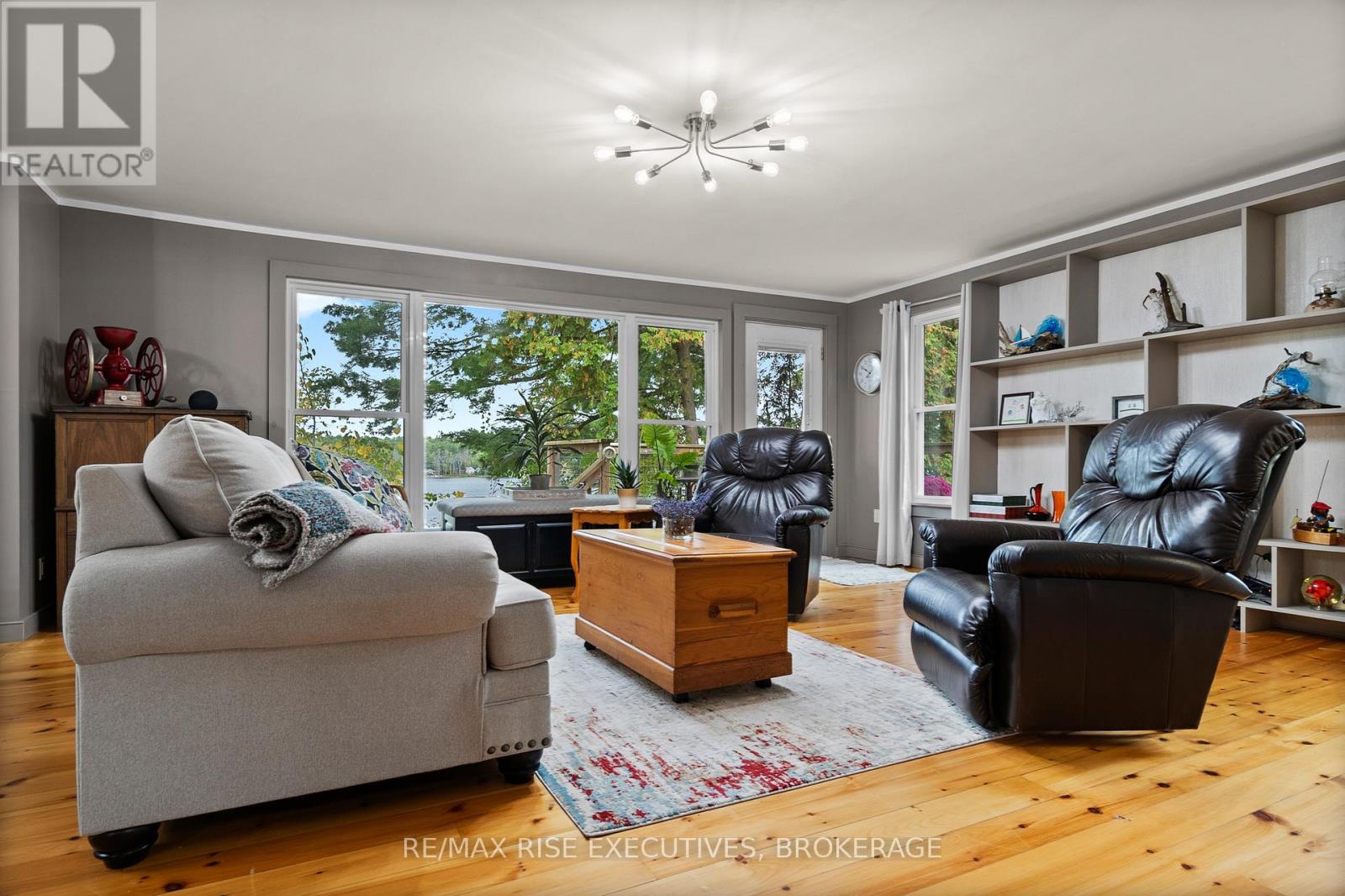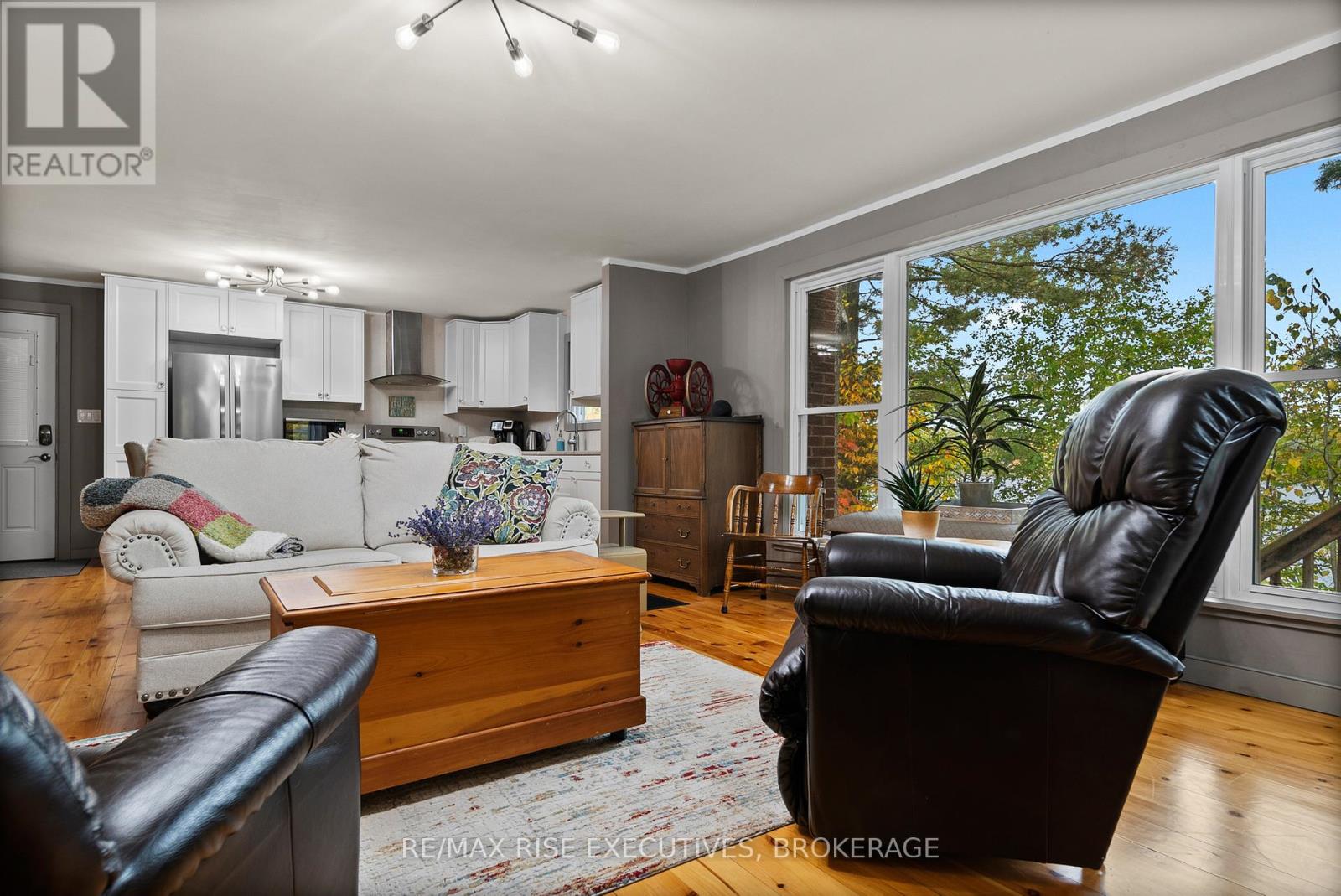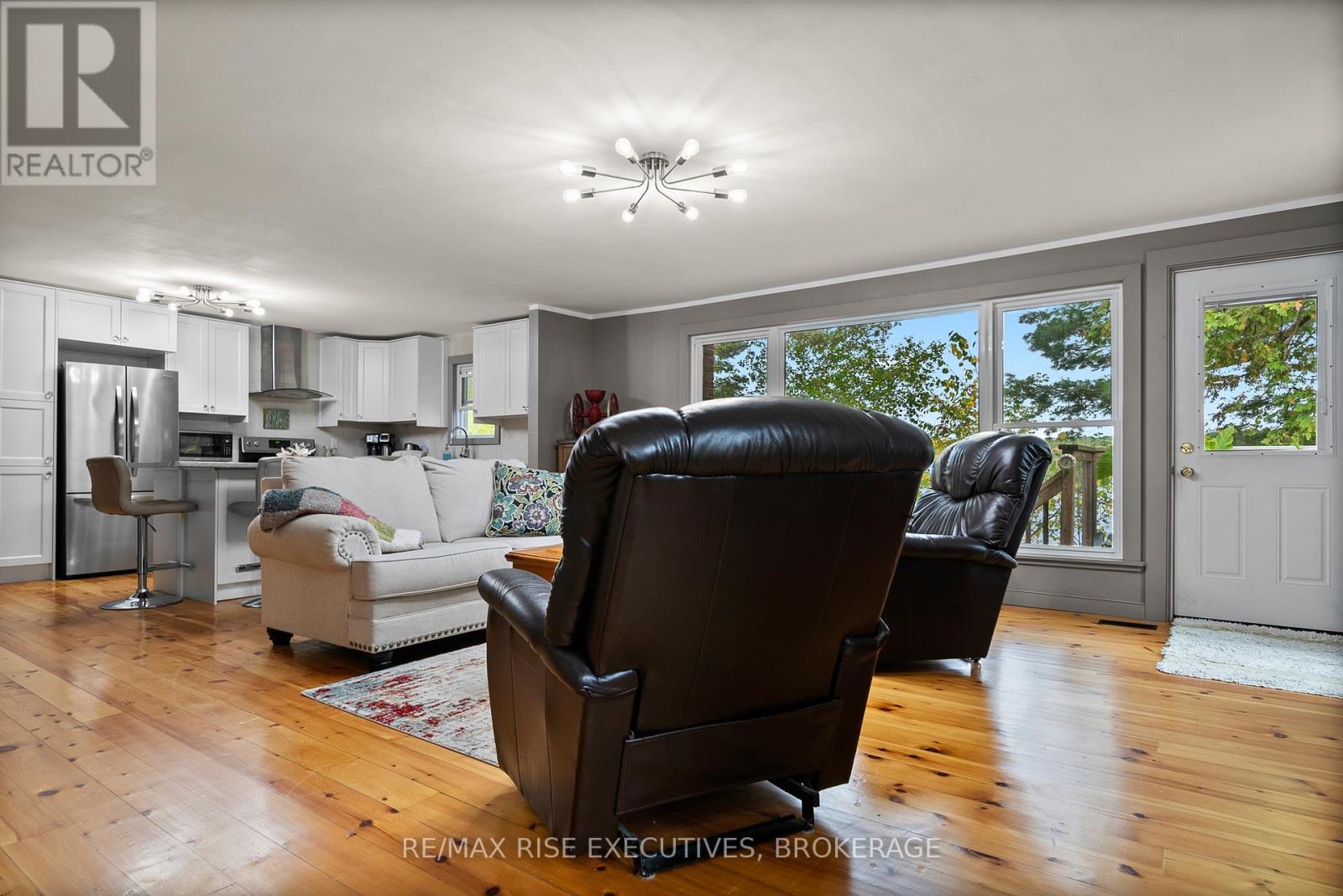 1017 Woods Lane is an affordable waterfront retreat on the shores of Howes Lake, offering modern updates and year-round enjoyment. Over the past few years, this home has been extensively renovated to combine comfort with lakefront living. The heart of the home is the beautifully updated kitchen, featuring crisp white cabinetry, stainless steel appliances, and a large island with seating - perfect for gathering with family and friends. The living room continues the charm with pine floors and sweeping water views. Two spacious bedrooms and a stylishly upgraded bathroom complete with a glass-enclosed tiled shower and heated tile floors. The lower level, with its generous windows, remains mostly unfinished, offering plenty of potential for added living space. Step outside to multiple decks overlooking the lake, secure stairs leading to your private dock, and an attached 25 x 21 garage for all your storage needs. Major updates include new vinyl siding, vinyl windows, roof shingles, a high-efficiency propane furnace, and central air conditioning - providing peace of mind for years to come. This turnkey lakefront home is ready for its next chapter, conveniently located just minutes from Verona and a short drive to nearby towns and Highway 401. Schedule your viewing today! (id:29295)