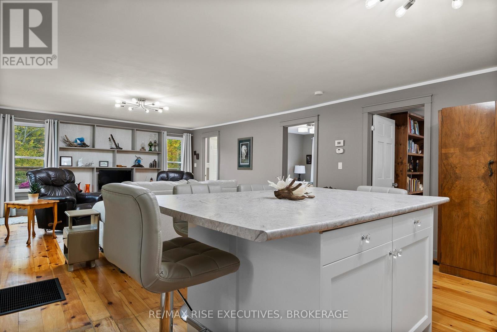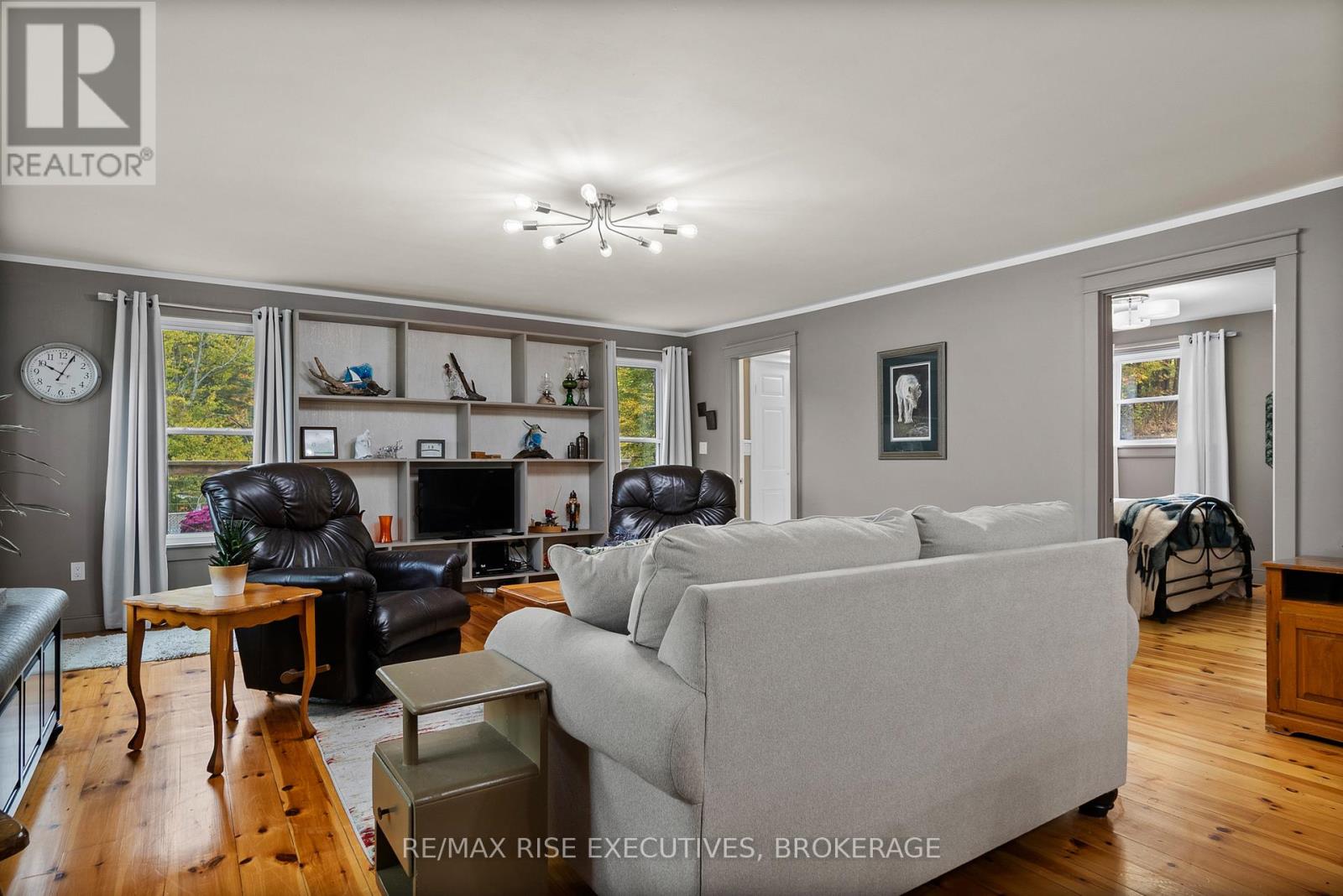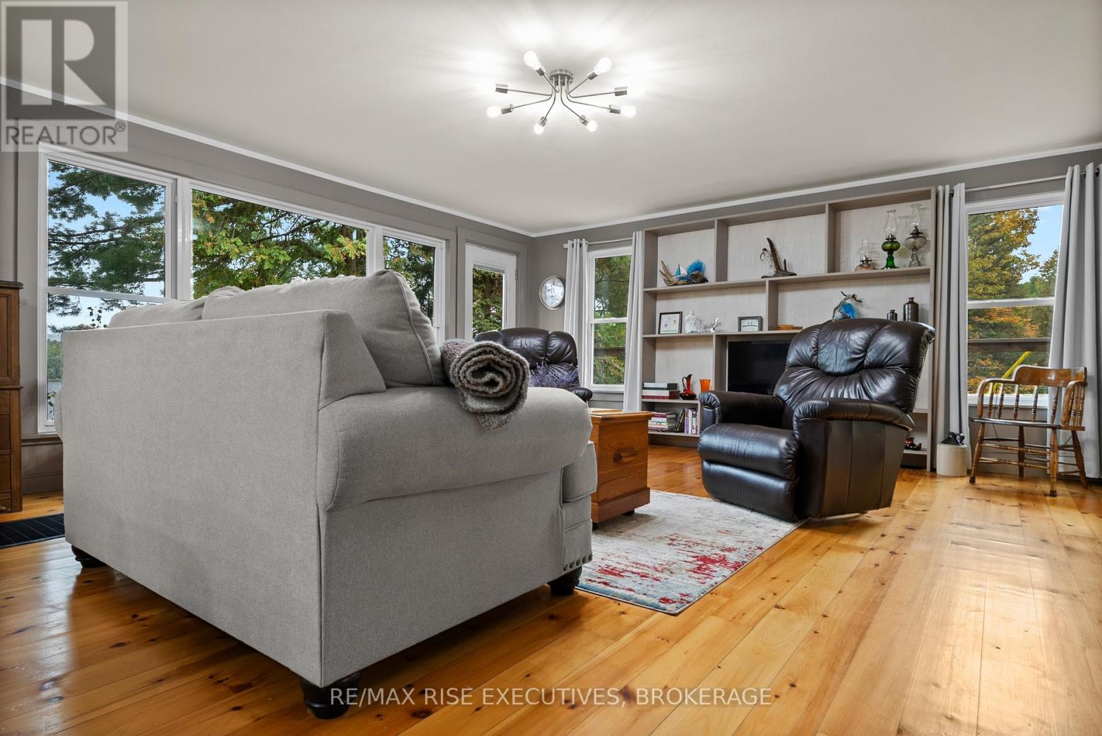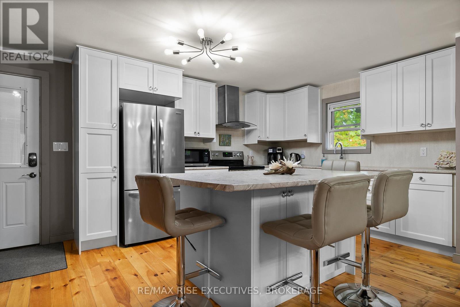 1017 Woods Lane is an affordable waterfront retreat on the shores of Howes Lake, offering modern updates and year-round enjoyment. Over the past few years, this home has been extensively renovated to combine comfort with lakefront living. The heart of the home is the beautifully updated kitchen, featuring crisp white cabinetry, stainless steel appliances, and a large island with seating - perfect for gathering with family and friends. The living room continues the charm with pine floors and sweeping water views. Two spacious bedrooms and a stylishly upgraded bathroom complete with a glass-enclosed tiled shower and heated tile floors. The lower level, with its generous windows, remains mostly unfinished, offering plenty of potential for added living space. Step outside to multiple decks overlooking the lake, secure stairs leading to your private dock, and an attached 25 x 21 garage for all your storage needs. Major updates include new vinyl siding, vinyl windows, roof shingles, a high-efficiency propane furnace, and central air conditioning - providing peace of mind for years to come. This turnkey lakefront home is ready for its next chapter, conveniently located just minutes from Verona and a short drive to nearby towns and Highway 401. Schedule your viewing today! (id:29295)