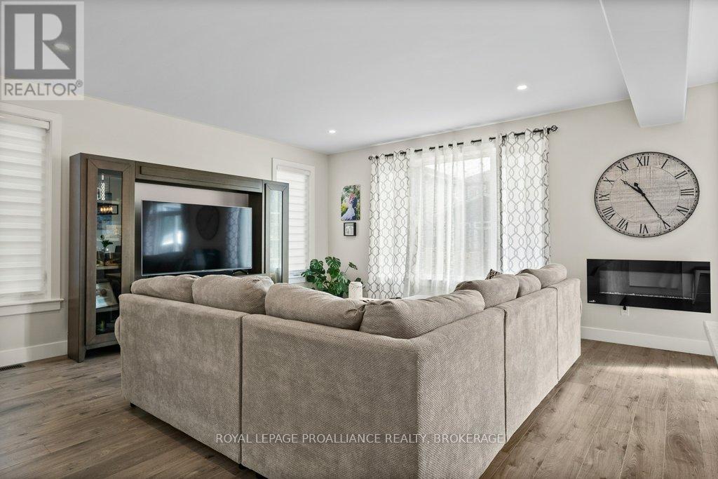 Welcome to this beautiful 2-storey detached home in the family-friendly community of Amherstview. Built in 2021, this modern home offers a spacious floorplan designed with comfort and functionality in mind and immaculately maintained. The upper level features 4 generously sized bedrooms and 2 full bathrooms, including a primary suite with a walk-in closet and ensuite. The main floor is bright and open, with a large living area, dining space, additional 2 piece washroom, and a well-appointed kitchen that's perfect for family living and entertaining. Convenient main floor laundry adds to the ease of everyday living. The basement is large and unfinished, offering endless potential for future customization. An attached 2 car garage + double wide driveway offers parking for 4. Outside, you'll find a fully fenced backyard; ideal for kids, pets, or summer gatherings with a gazebo, hot tub and firepit. This is the perfect home for families looking to settle in a welcoming neighbourhood close to schools, parks, and amenities! (id:29295)