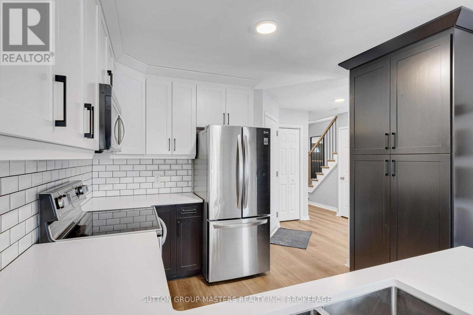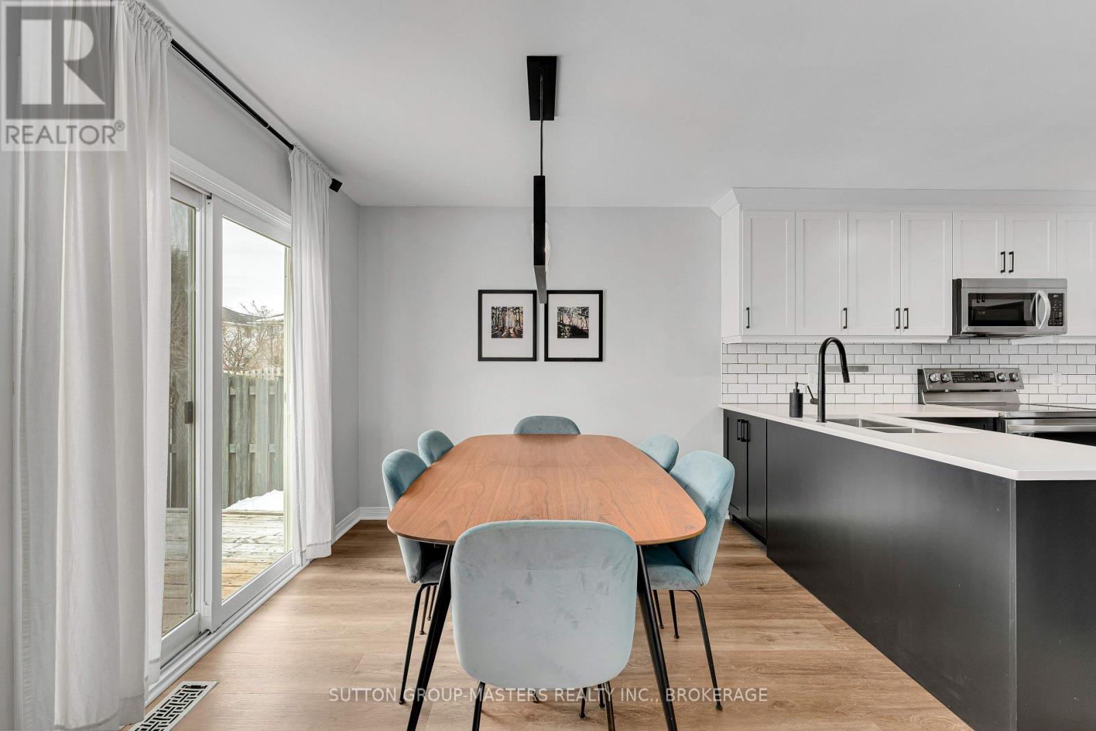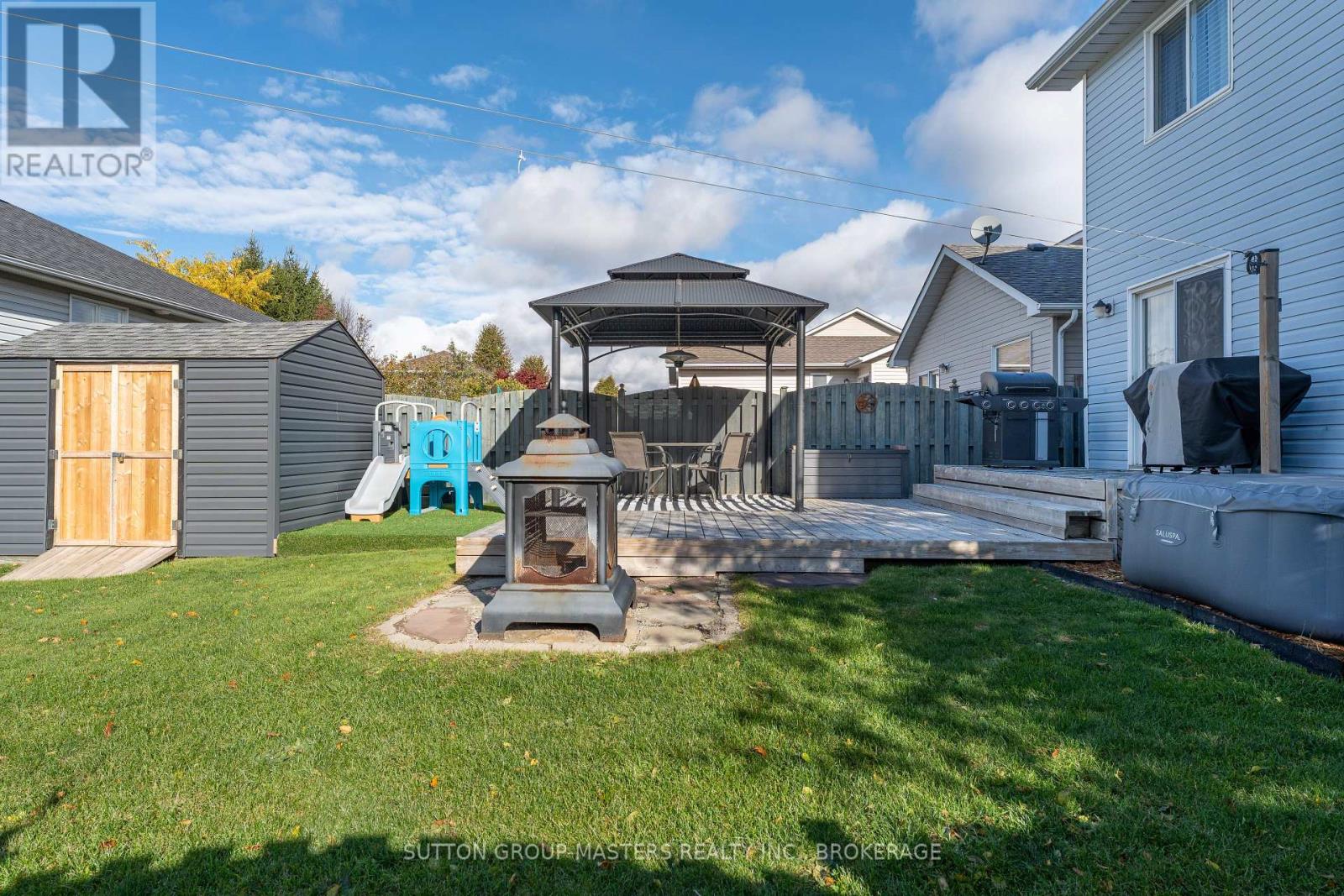 Welcome to 1041 Rainbow Crescent! This 2 storey home is situated in Kingston's East End, close to restaurants, grocery, daycare, schools, parks, and more. The main floor offers a welcoming foyer, convenient 2 pc washroom, living room, dining room with patio door to the tiered deck and private fenced yard, and updated kitchen with quartz counters, stainless steel appliance package, and 2 tone cabinetry for a modern look. The second floor offers 2 generous sized bedrooms, a 4 pc bathroom and large primary bedroom with walk-in closet. The basement is rounded out with a rec-room, 3 pc bathroom, storage area and utility closet. The exterior offers a paved driveway with concrete walkway and space for 2 cars, as well as an attached single car garage with inside entry. The back yard offers a tiered deck with gazebo, perfect for dining outdoors in the summer, or relaxing after a long day. The fully fenced yard is perfect for families with kids, or those looking for some privacy in the city. Recent updates include flooring throughout the main/second floor (2020), HRV (2023), A/C (2019), Roof (2017). With immediate possession available. Do not wait to call to arrange your private viewing today. (id:29295)