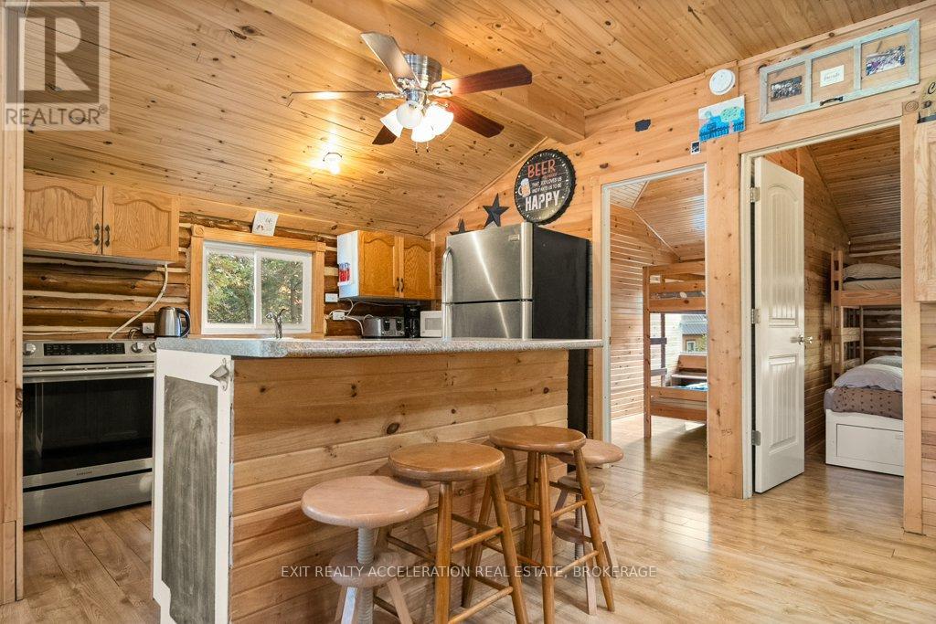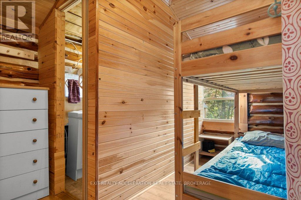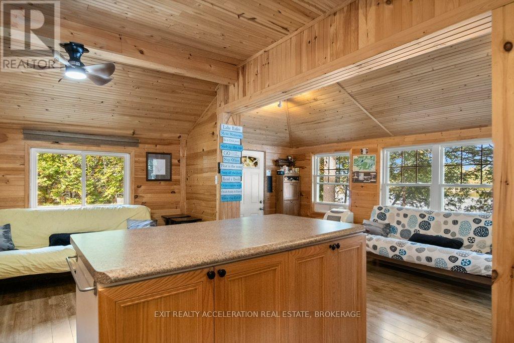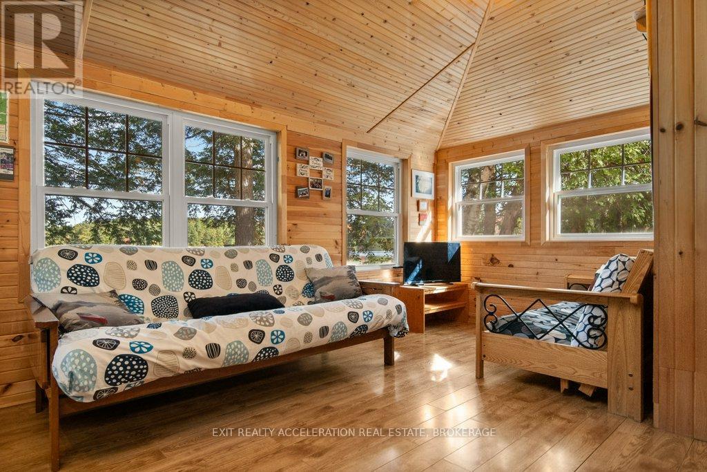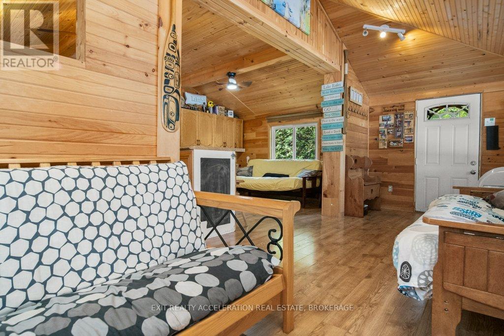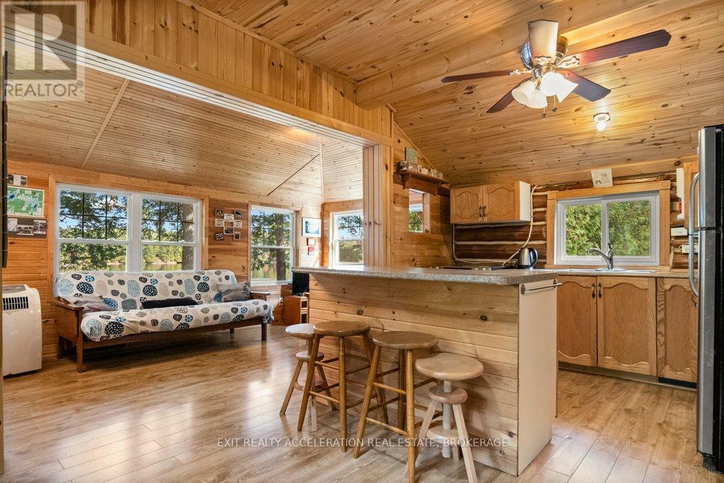 Escape to the tranquility of lakeside living with this charming two-bedroom log cottage nestled on the peaceful shores of Sharbot Lake. Tucked away at the end of a quiet lane, this inviting retreat offers privacy and relaxation in a natural setting. The recently upgraded cozy interior features rustic charm throughout, complemented by a convenient two-piece bathroom and an outdoor shower. Step outside to enjoy an enclosed seating area ideal for morning coffee or evening sunsets overlooking the water. A private dock invites you to swim, boat, or simply take in the serene views on those perfect summer days. The property also includes a delightful bunkie with a loft, perfect for guests, and a shed for storing your outdoor gear. Whether you're looking for a getaway that is a peaceful place to unwind, this lakeside haven captures the essence of cottage living. (id:29295)