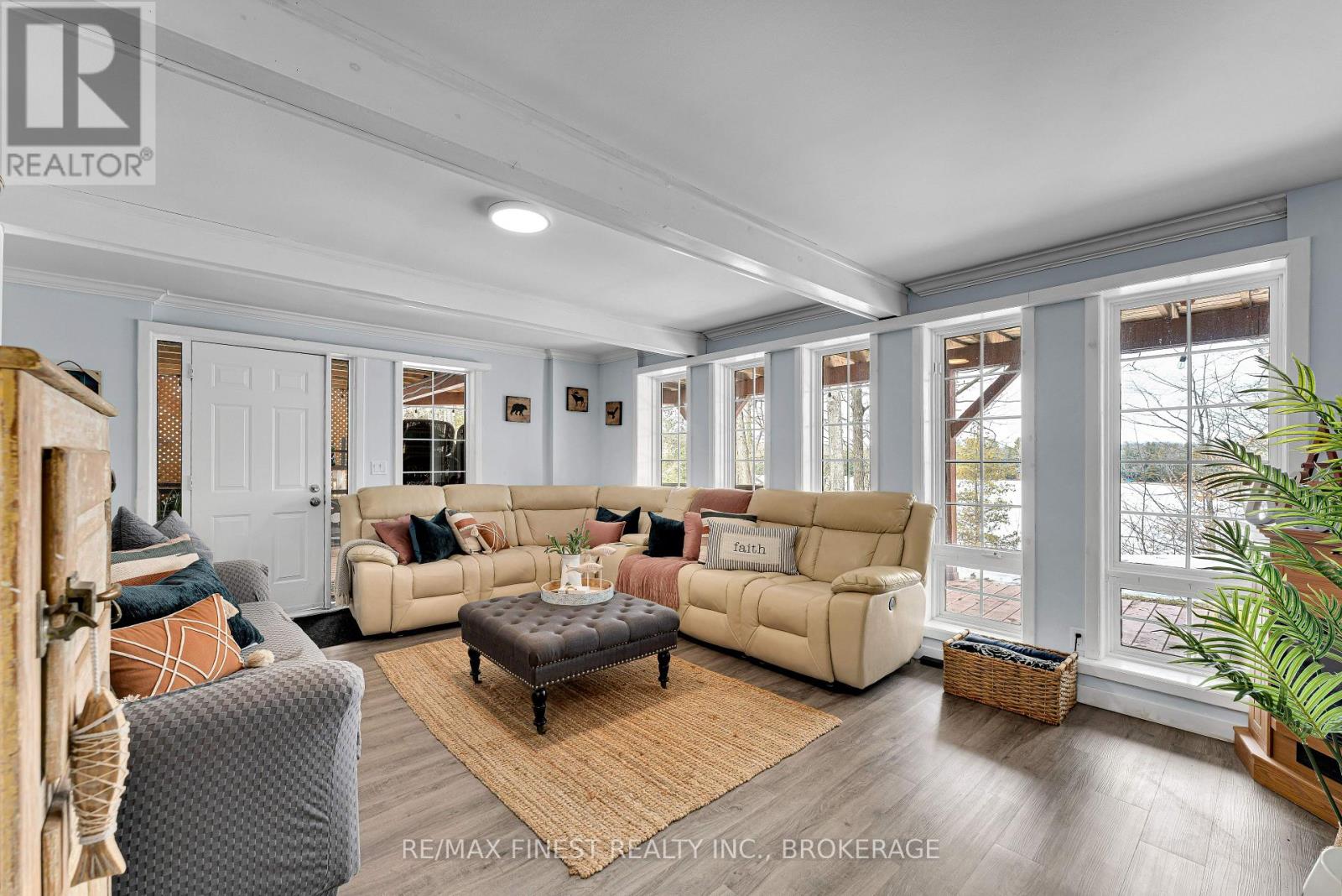 Welcome to life on the lake at 1066 Mountvale Point on sought-after Sharbot Lake. Tucked among mature trees on a beautifully private 1.4-acre lot with over 290 feet of frontage, this fully renovated, turn-key cottage offers the perfect blend of comfort, style, and effortless waterfront living. From the moment you arrive, the pace slows. Sun-filled, west-facing views stretch across the lake, offering unforgettable sunsets from the expansive wraparound deck or down by the water's edge. Inside, the open-concept living space is designed for gathering, with wall-to-wall windows that bring the outdoors in and frame the lake as your everyday backdrop. This thoughtfully updated 4-bedroom, 2-bathroom cottage is being offered fully furnished and equipped, allowing you to step into cottage life immediately. From quality furnishings to linens, kitchen essentials, and a full collection of water toys including kayaks, canoe, paddleboard, and more, everything is in place to enjoy from day one. Spend your days on the water, afternoons lounging on the dock, and evenings around the fire under the stars. Whether you're looking for a personal retreat, a family gathering place, or an income-generating rental, this property offers flexibility and ease in a highly desirable location. With excellent privacy, clean shoreline, and a welcoming sense of arrival, this is more than a cottage-it's a complete lakefront lifestyle. (id:29295)