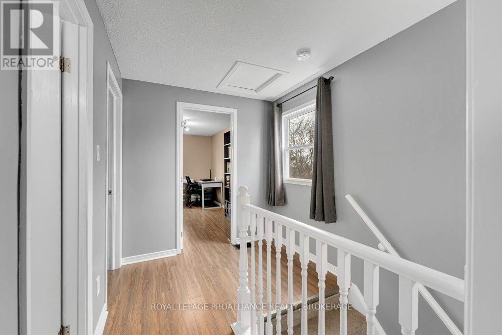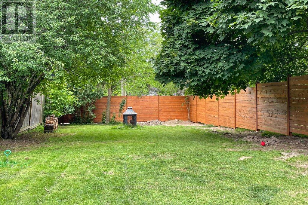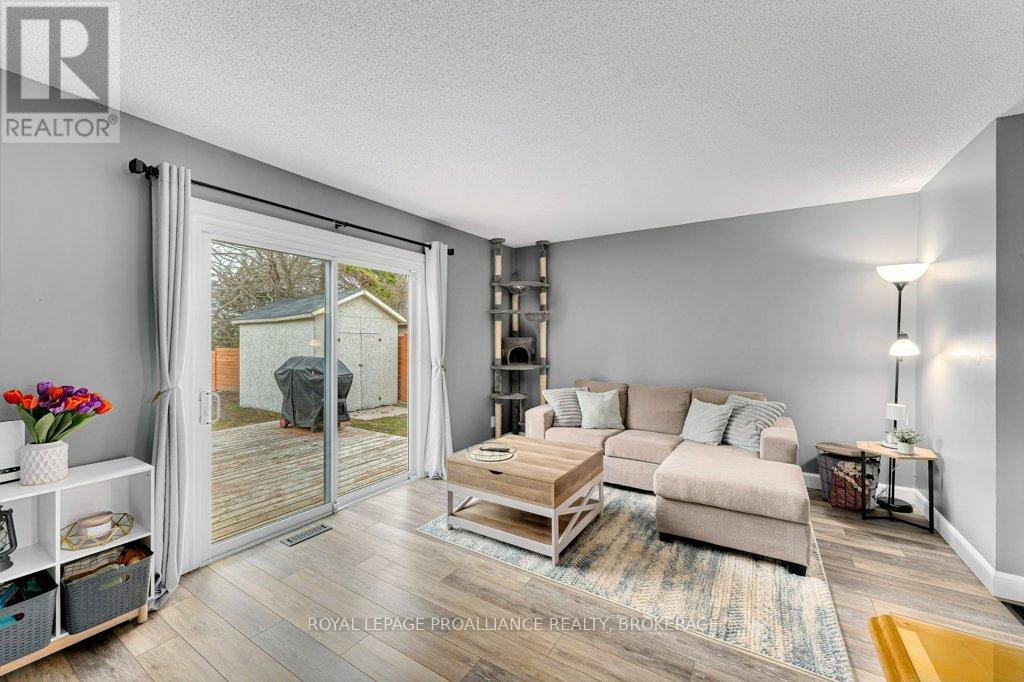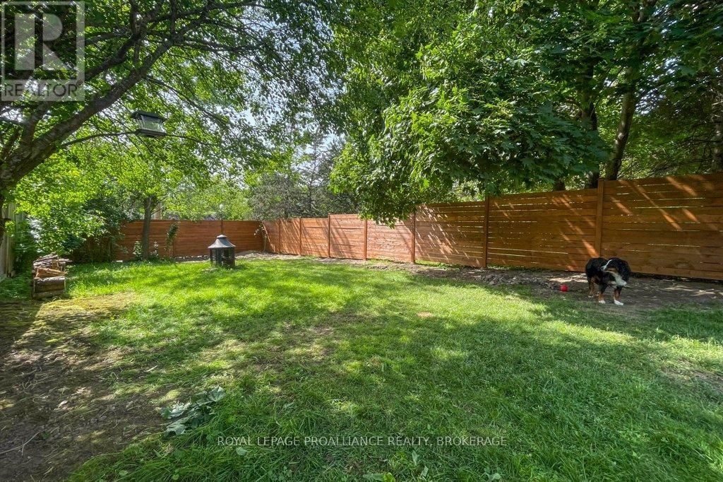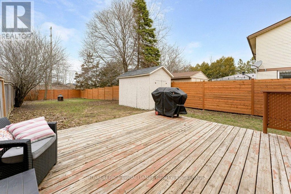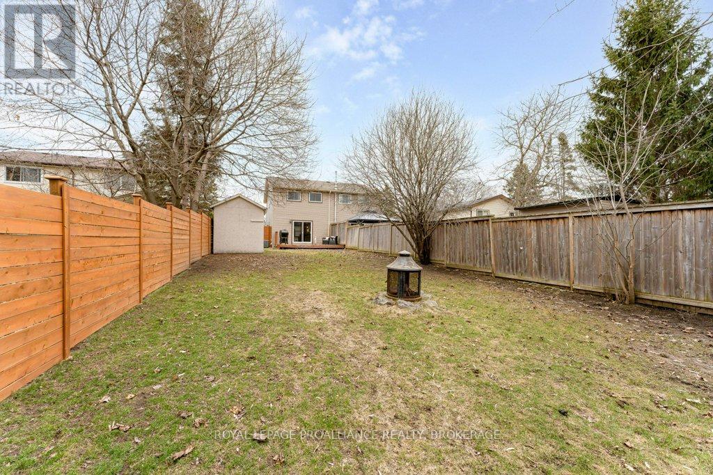 This semi-detached home in Cataraqui Woods is more than meets the eye, you'll be surprised at the 150 foot lot depth, meaning that even with a deck and a large shed, there is still plenty of room to run, and even a fire pit! The kitchen here is bright, owing to the large, east-facing window, and updated cabinetry. The living space is generous for a semi in this neighbourhood as well, with plenty of room for a large table. Upstairs there are three bedrooms, two of which can easily accommodate a king size bed, and a full bath. There is a second full bath in the basement level, along with a rec-room and utility/storage spaces. There is parking for at least three vehicles in the drive but you are close to transit, school bus routes, schools and shopping...so you may not rely on your car much at all. (id:29295)