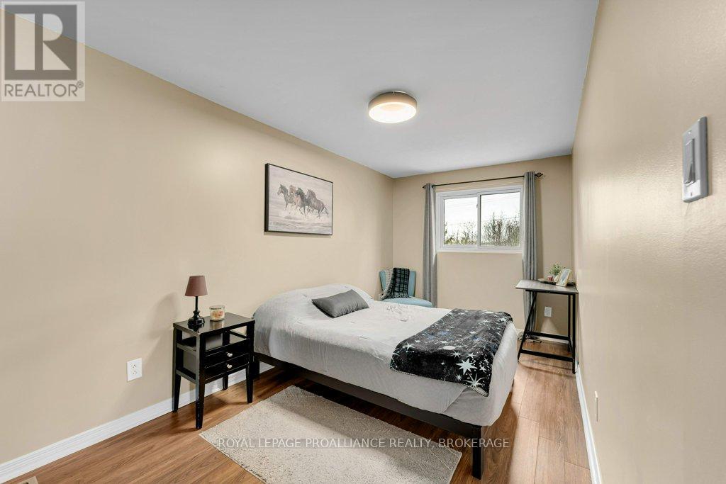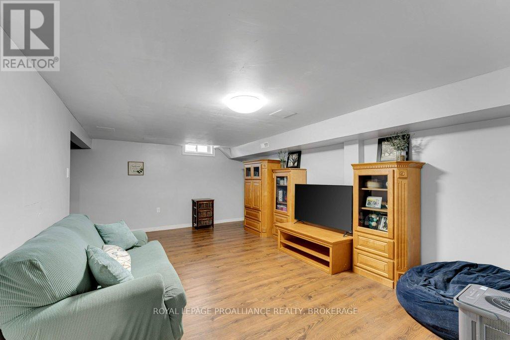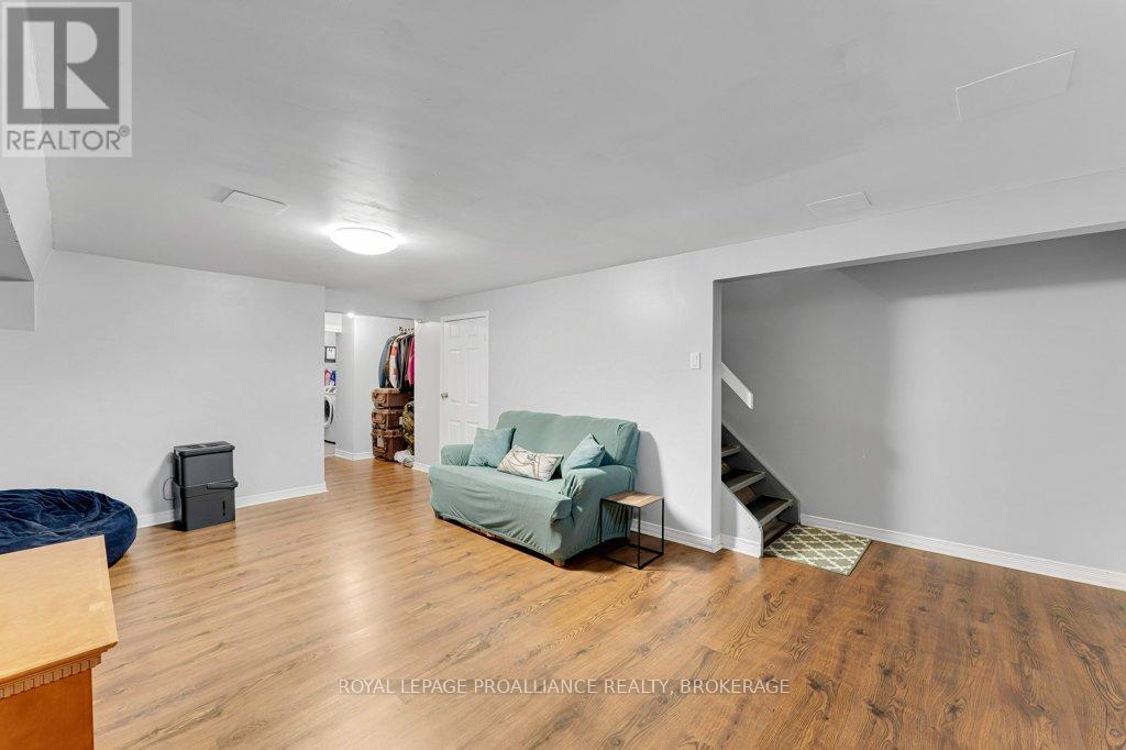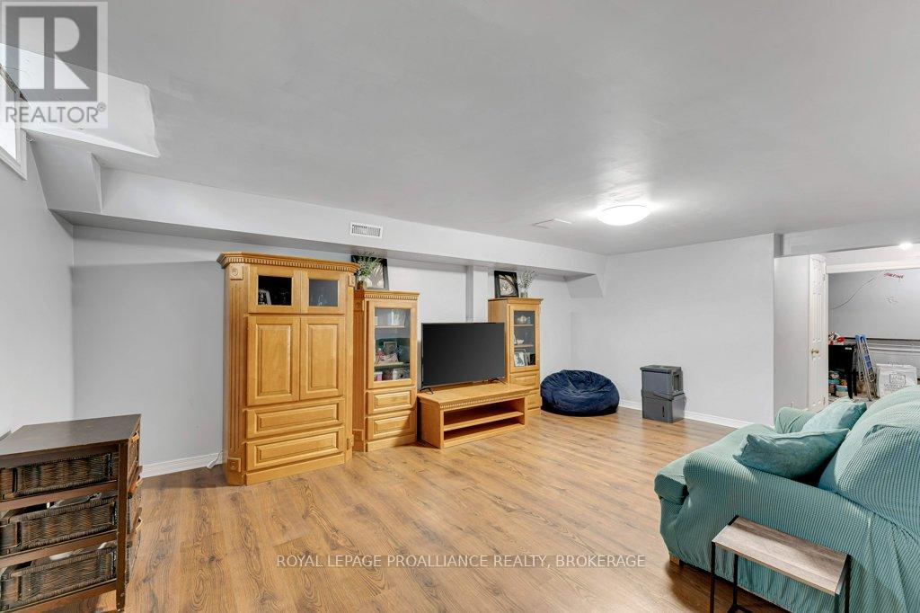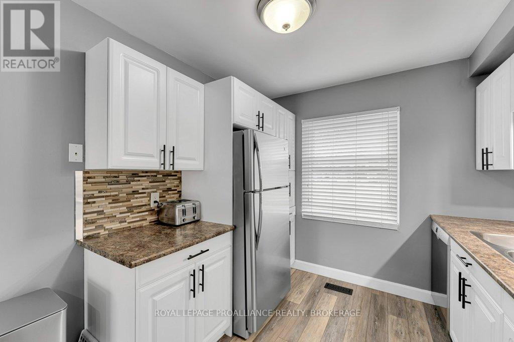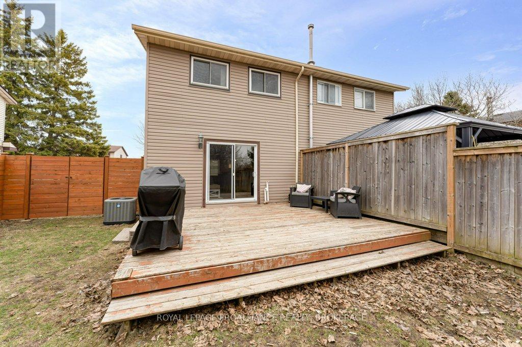 This semi-detached home in Cataraqui Woods is more than meets the eye, you'll be surprised at the 150 foot lot depth, meaning that even with a deck and a large shed, there is still plenty of room to run, and even a fire pit! The kitchen here is bright, owing to the large, east-facing window, and updated cabinetry. The living space is generous for a semi in this neighbourhood as well, with plenty of room for a large table. Upstairs there are three bedrooms, two of which can easily accommodate a king size bed, and a full bath. There is a second full bath in the basement level, along with a rec-room and utility/storage spaces. There is parking for at least three vehicles in the drive but you are close to transit, school bus routes, schools and shopping...so you may not rely on your car much at all. (id:29295)