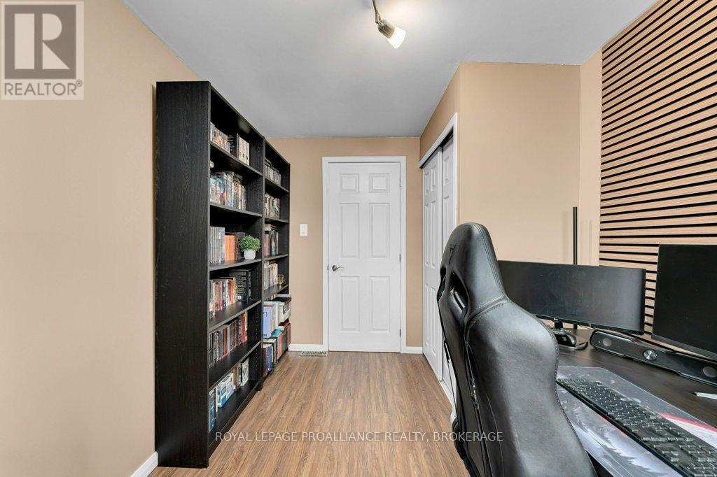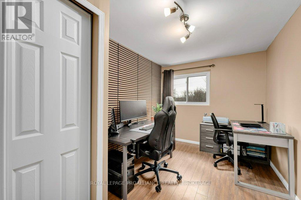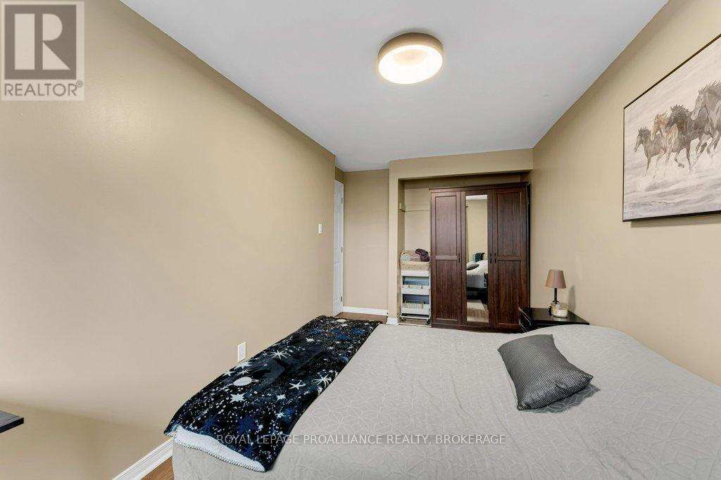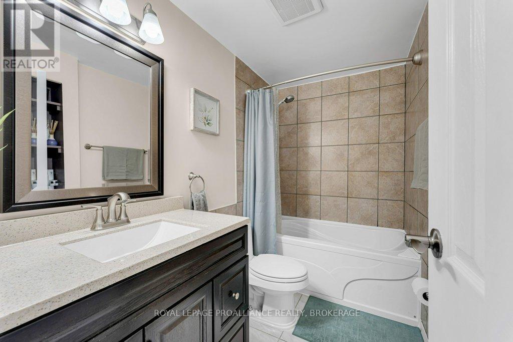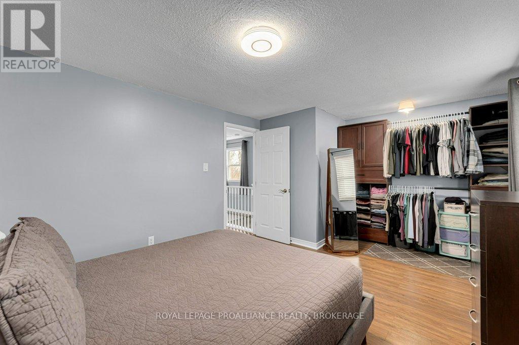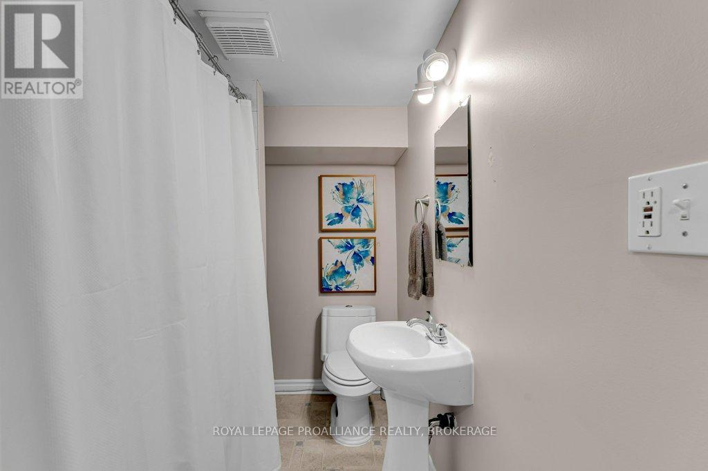 This semi-detached home in Cataraqui Woods is more than meets the eye, you'll be surprised at the 150 foot lot depth, meaning that even with a deck and a large shed, there is still plenty of room to run, and even a fire pit! The kitchen here is bright, owing to the large, east-facing window, and updated cabinetry. The living space is generous for a semi in this neighbourhood as well, with plenty of room for a large table. Upstairs there are three bedrooms, two of which can easily accommodate a king size bed, and a full bath. There is a second full bath in the basement level, along with a rec-room and utility/storage spaces. There is parking for at least three vehicles in the drive but you are close to transit, school bus routes, schools and shopping...so you may not rely on your car much at all. (id:29295)