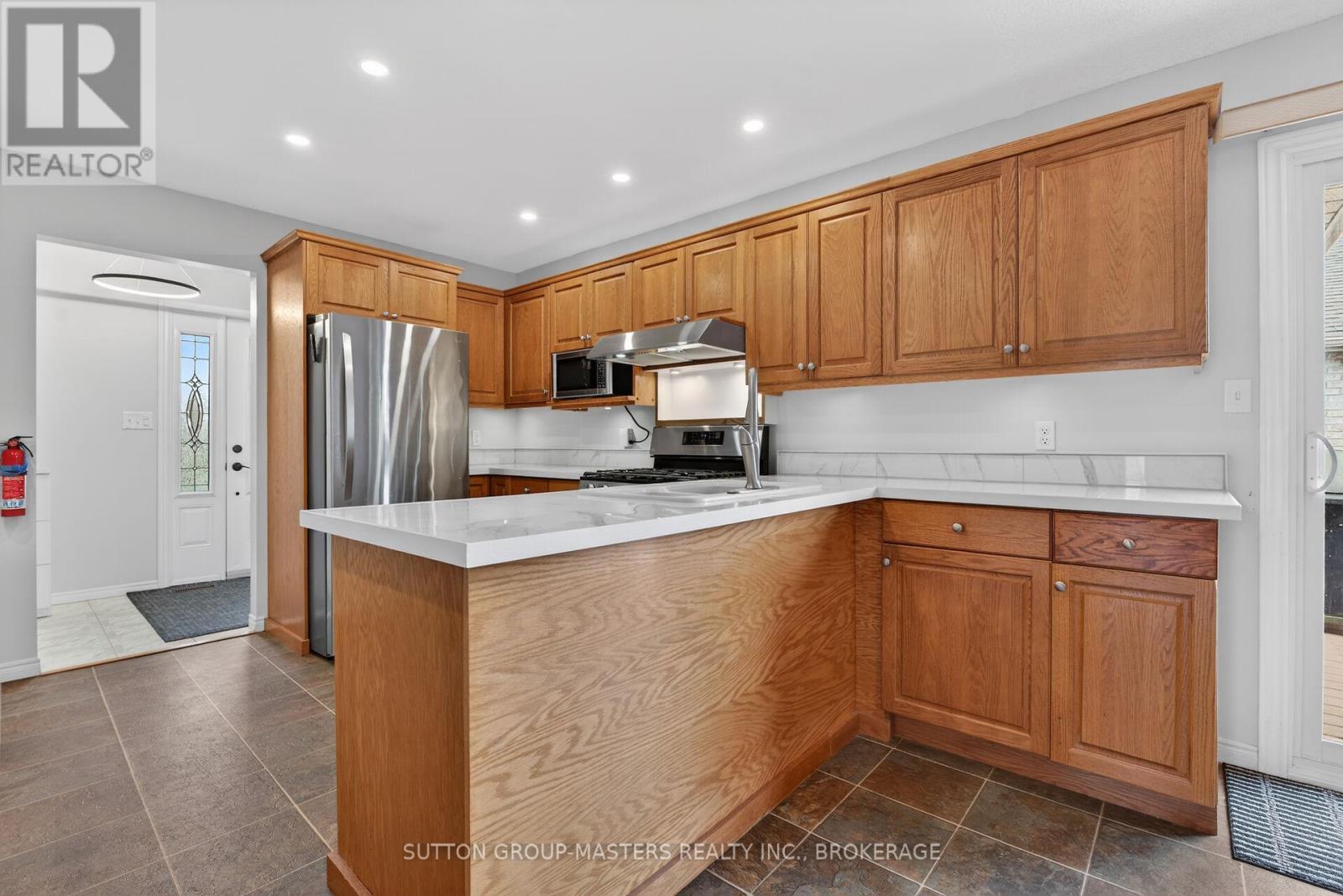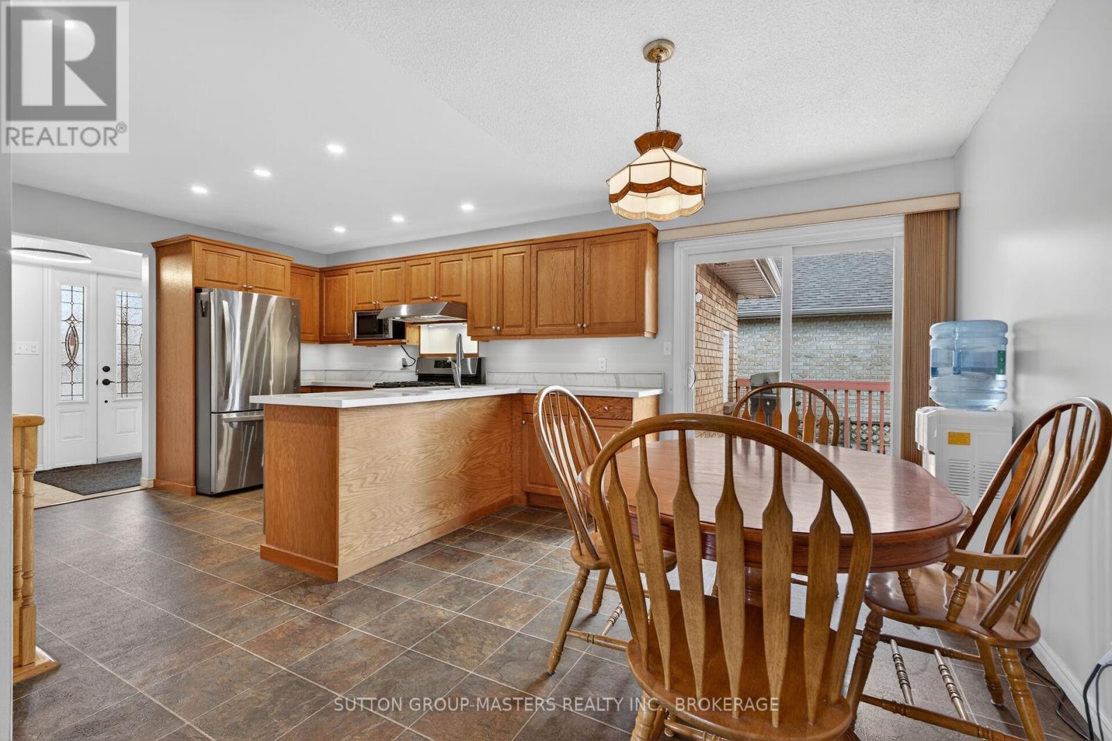 Perfect size all brick 3+2 bungalow in the heart of the school district, shopping, amenities and more. This home is in mint condition featuring a large front foyer to welcome family and friends. Huge living room great to gatherings, lovely kitchen with tile counters and stainless steel appliances , dining area with access to deck with a natural gas hook up for BBQing. Down the hall find 3 spacious bedrooms with the primary having convenient access to main washroom. Hardwood floors in the living room and bedrooms are a plus! Lower level is nicely set up and can be a perfect in law suite for the extended family featuring a cozy family room with gas corner fireplace, 2 great size bedrooms, 3 piece washroom, large laundry area and walk up stairs to the spacious garage. A great fenced backyard to relax or play with the kids, lots a parking out front. All windows have been replaced since 2015, driveway 2018, shingles 2020, Amperage 200 round out the features of the home. (id:29295)