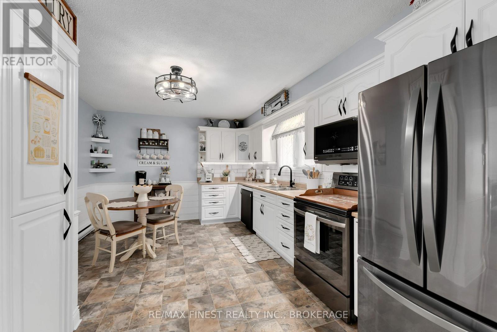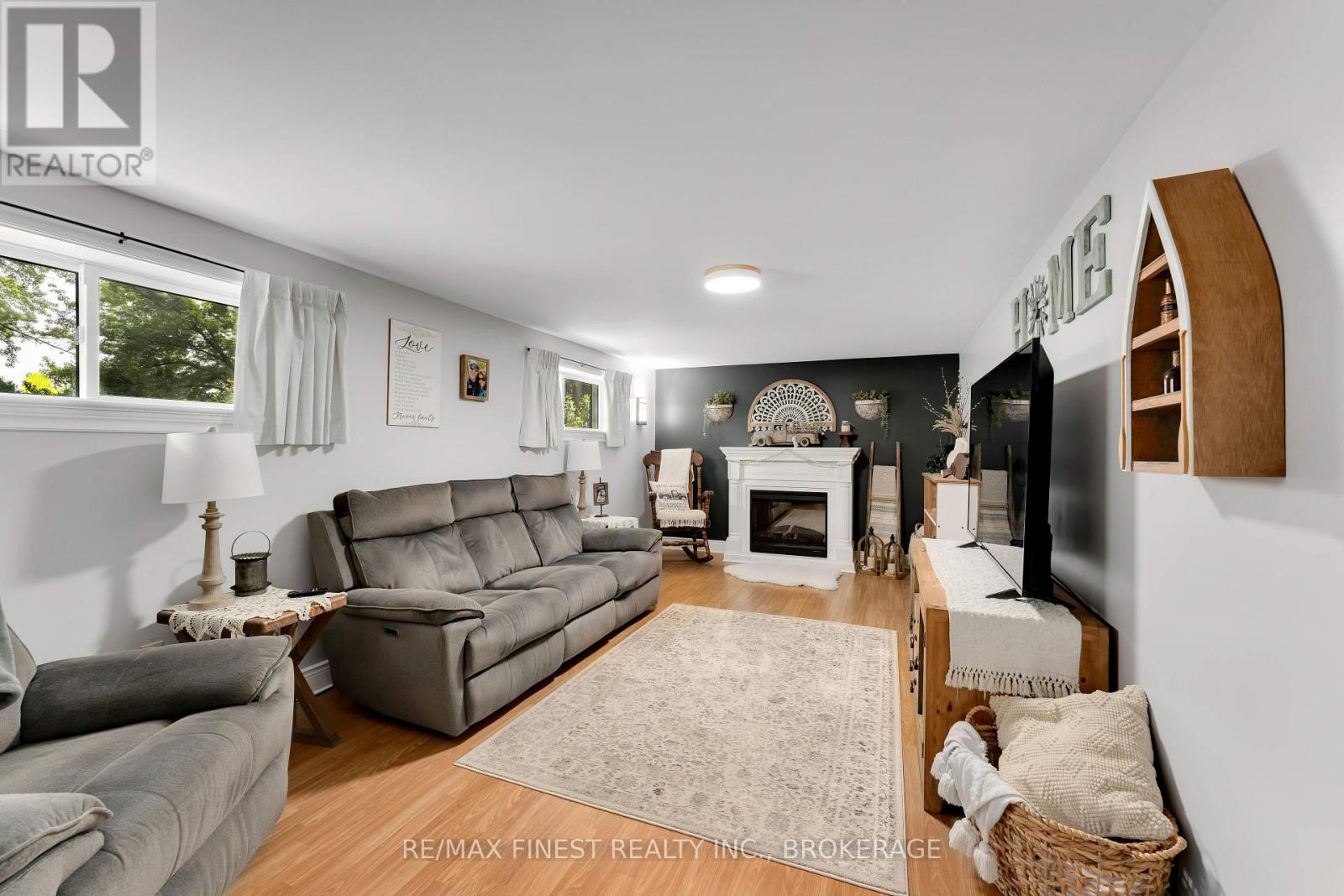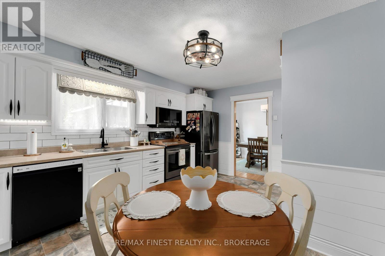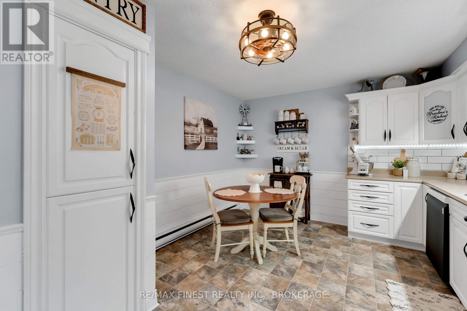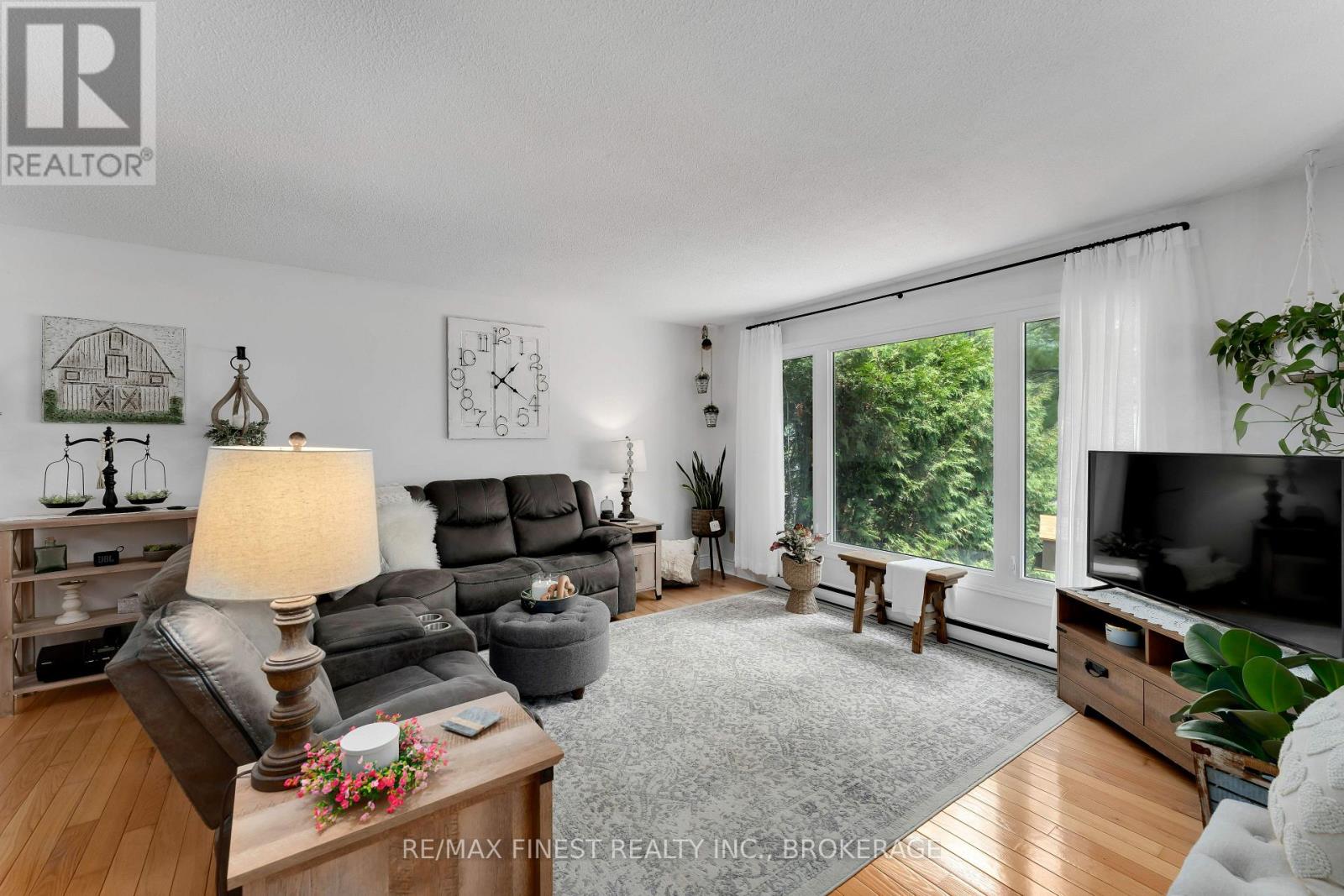 Discover the best of both worlds with this charming 3+1 bedroom, 1 Full Bath home, offering 1,200 +/- sq ft of comfortable living space on just under an acre. Enjoy the tranquility of country living while being only a short 7-minute drive to town. Step inside to warm hardwood floors and an updated kitchen that flows into the dining area, where patio doors lead out to a spacious deck overlooking your peaceful, tree-lined backyard, an ideal spot for relaxing or entertaining. The home features a generous rec room in the basement, perfect for a family space, home office, or gym. You'll also find a large storage/laundry room downstairs, offering plenty of functionality and organization options. An attached 1.5-car insulated garage includes inside entry and a convenient walk-up from the basement, adding both comfort and practicality to your everyday living. (id:29295)