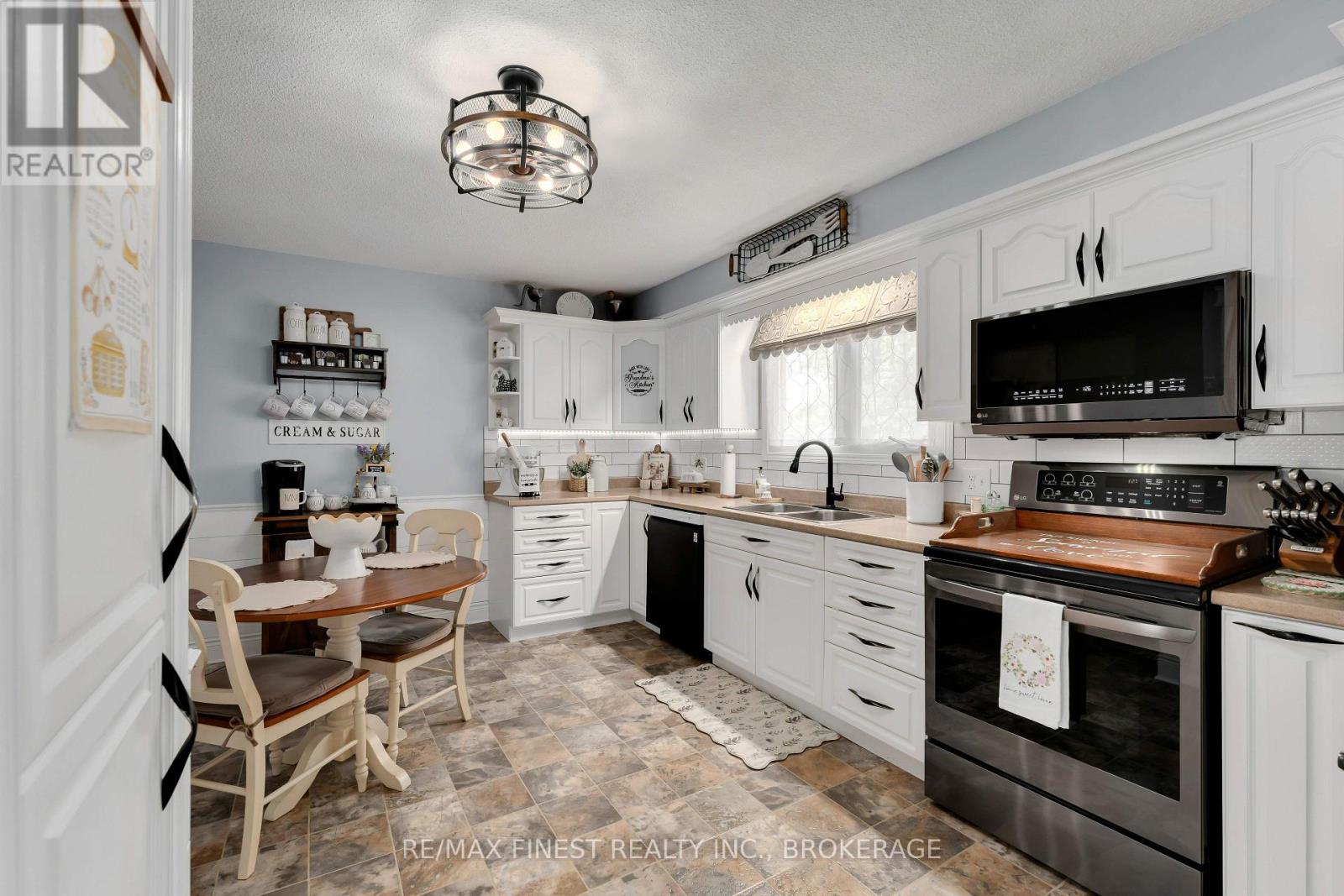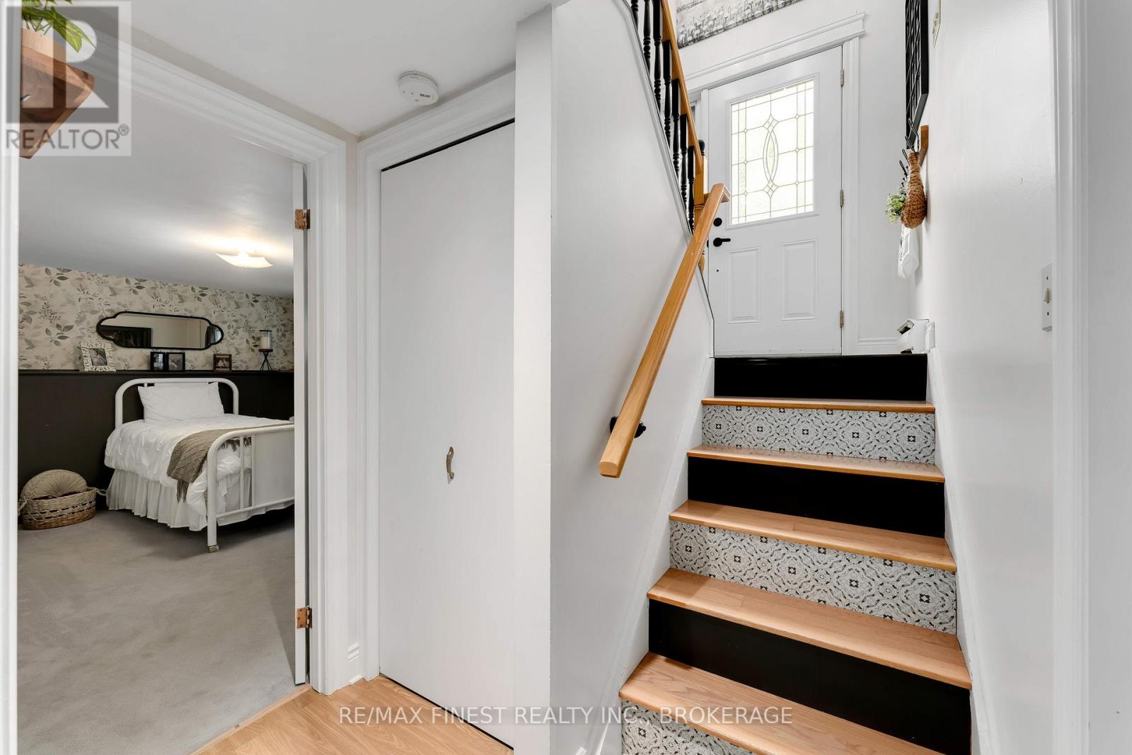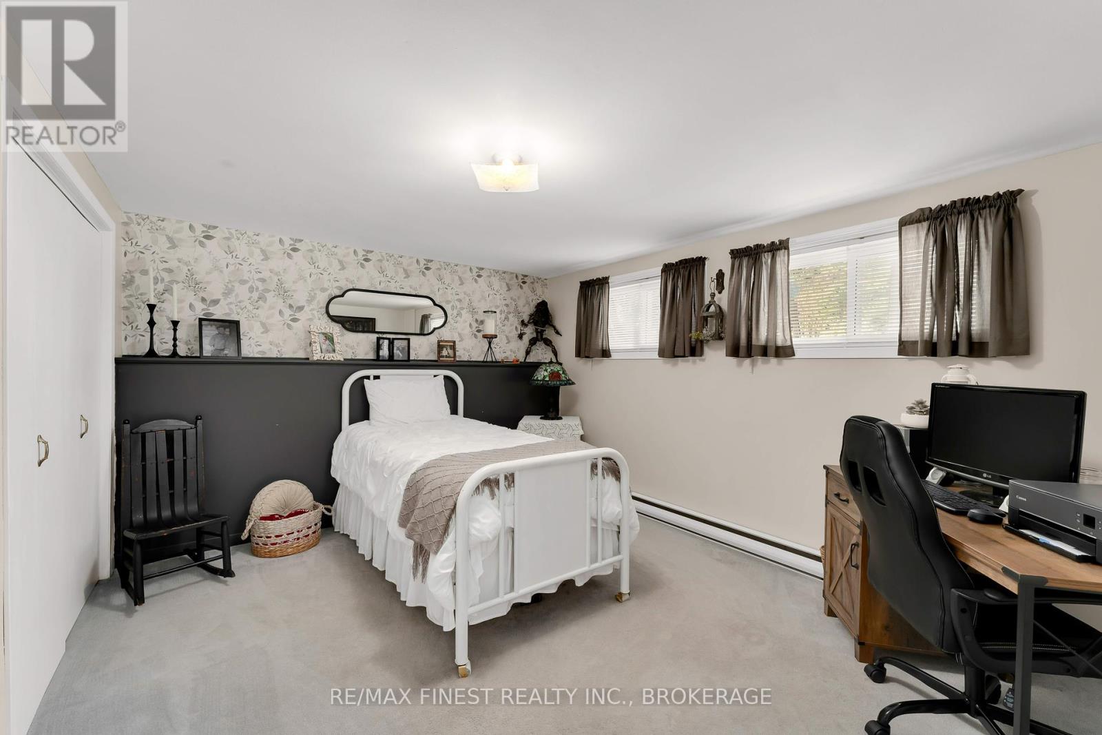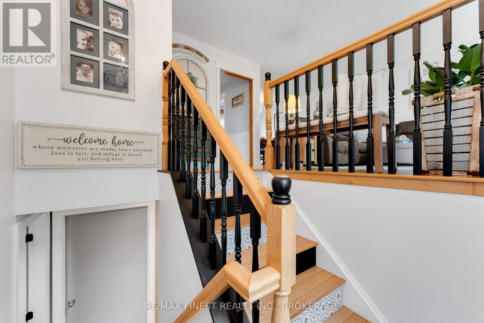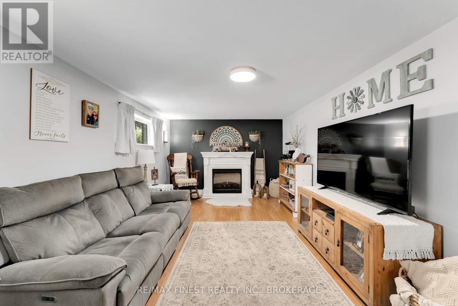Discover the best of both worlds with this charming 3+1 bedroom, 1 Full Bath home, offering 1,200 +/- sq ft of comfortable living space on just under an acre. Enjoy the tranquility of country living while being only a short 7-minute drive to town. Step inside to warm hardwood floors and an updated kitchen that flows into the dining area, where patio doors lead out to a spacious deck overlooking your peaceful, tree-lined backyard, an ideal spot for relaxing or entertaining. The home features a generous rec room in the basement, perfect for a family space, home office, or gym. You'll also find a large storage/laundry room downstairs, offering plenty of functionality and organization options. An attached 1.5-car insulated garage includes inside entry and a convenient walk-up from the basement, adding both comfort and practicality to your everyday living. (id:29295)