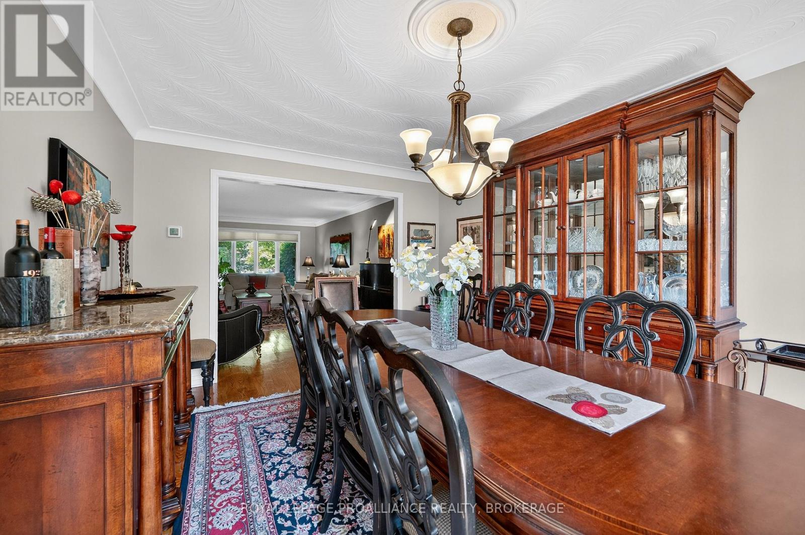 Beautifully updated 2 storey family home on a serene 0.5-acre lot backing onto a tranquil ravine. Offering nearly 3,500 sq. ft. of well-designed living space, this home features 5 spacious bedrooms and 3 updated baths. The bright eat in kitchen includes granite countertops, tile flooring, and large windows overlooking the patio and lush backyard. A warm main floor living/sitting room with a gas fireplace complements the generous dining area, ideal for gatherings. The walkout lower level provides direct backyard access and features a charming wood burning stove, fresh paint, new flooring, and a renovated bathroom with new shower and granite topped vanity. A dedicated wine storage and cold room add excellent utility for entertainers. A 2-car attached garage, extensive updates, and the peaceful ravine backdrop create a rare combination of privacy, space, and modern comfort-an ideal retreat close to all amenities. (id:29295)