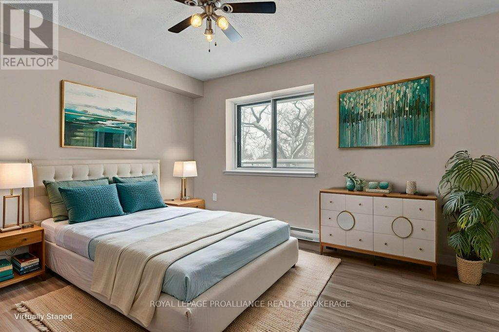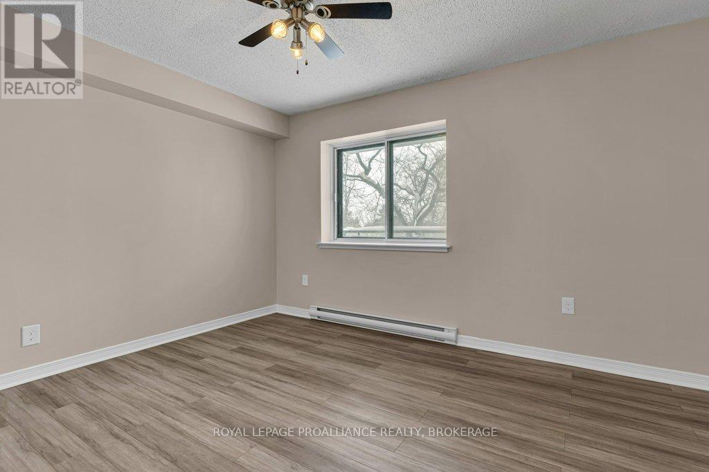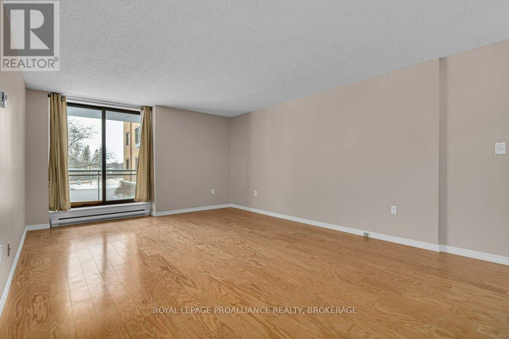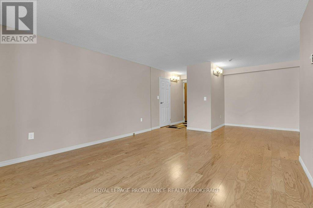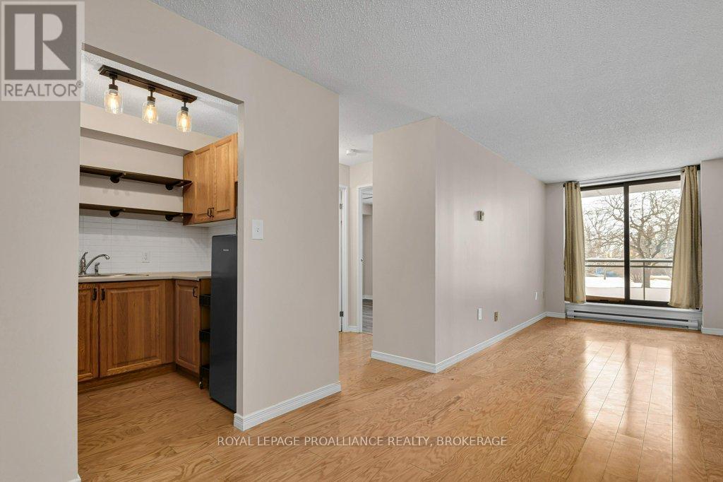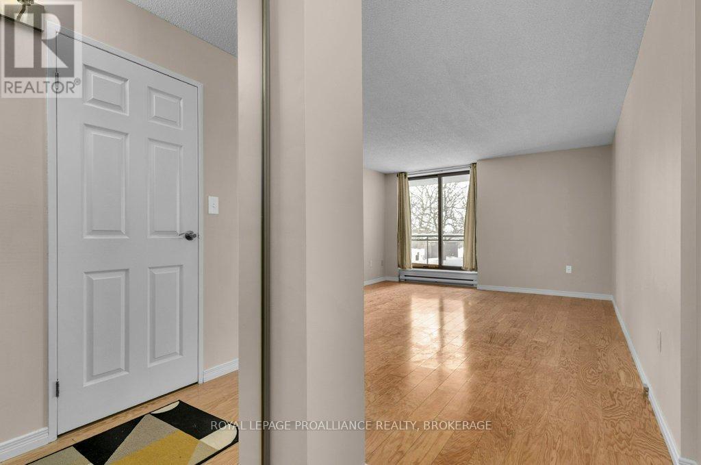 $523.56 MonthlyWelcome to Unit 111 at 120 Barrett Court - one of Kingston's most popular condos! Freshly painted and upgraded, this bright, spacious unit is turnkey and waiting for a new owner! The spacious living room/dining room opens to a lovely West facing balcony overlooking beautiful trees and lawns. Hardwood floors flow from the living room, dining room and kitchen through to the spacious bedroom while the bathroom features tile flooring and tub backsplash. Condo residents have access to a wonderful guest suite for visitors, a games room, party room, gym, indoor as well as roof top pool with breathtaking views of Kingston and the Cataraqui River. This condo is close to several delightful walking trails, grocery stores, pharmacies and CFB Kingston as well as a wonderful public library situated in a beautiful 19th century limestone farmhouse! Proximity to downtown Kingston is an added benefit - RMC, with it's pool and recreation centre, is a short walk away and just over the bridge you will find an endless list of wonderful restaurants, "Slush Puppy" Place - a venue for concerts as well as Junior hockey, waterfront parks, hospitals and Queens University or, if you prefer, just a short bus ride (5-10 minutes) will bring you to and from your destination with a bus stop right in front of the condo building! Location is excellent, price is amazing and value is undeniable! (id:29295)