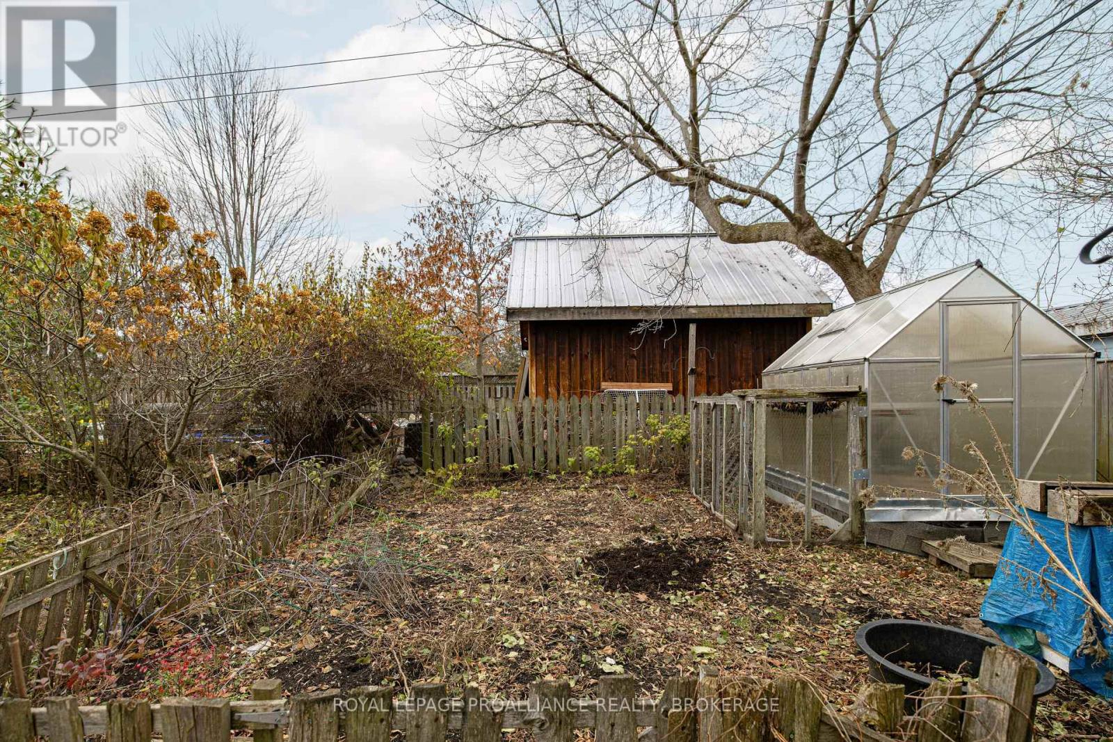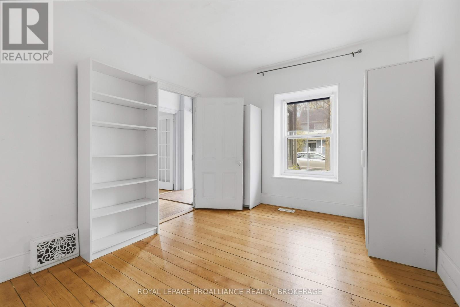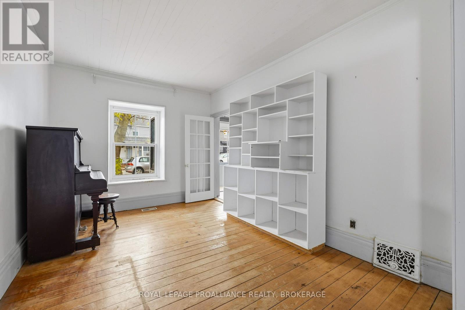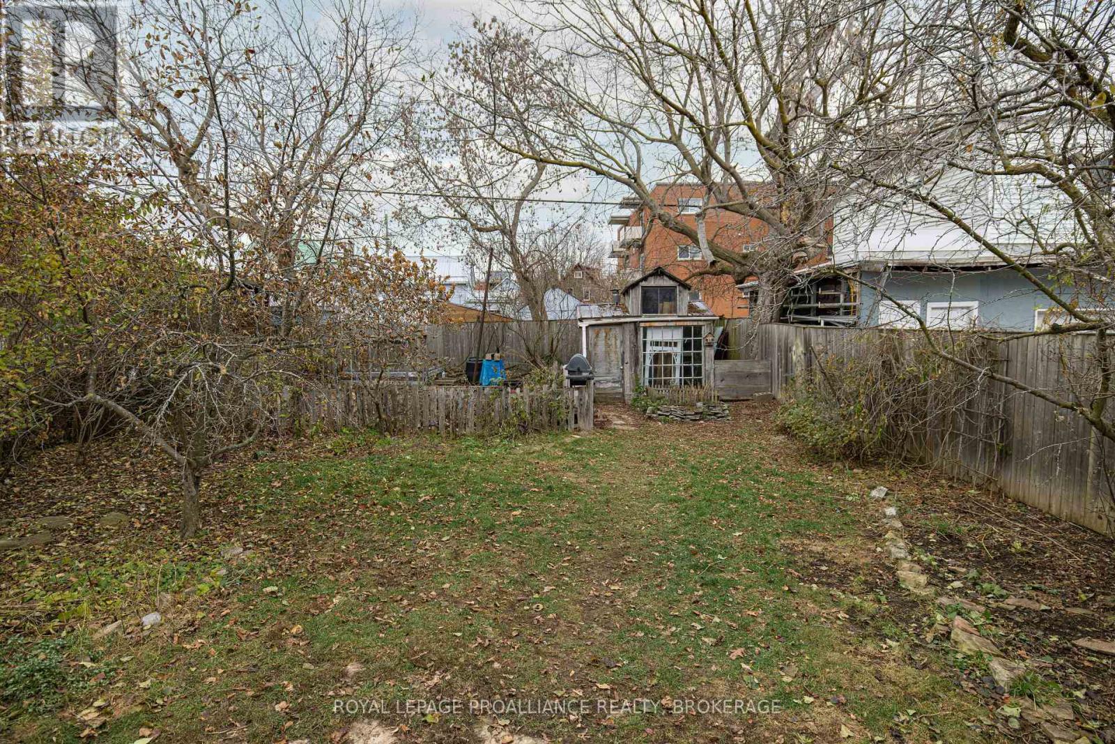 Middle of the nineteenth century, a builder worked his way up the north side of Charles St, in Kingston's Inner Harbour neighbourhood, honing his skills, trying on different styles, always working with limestone. He ended at 113 Charles, putting up a perfectly lovely (and perfectly symmetrical) Regency cottage. High-ceilinged, pine-floored rooms either side of a centre hall. Later a kitchen was added at the rear, and eventually a couple of extra rooms up above and two (!) narrow staircases (in case someone's after you and a quick getaway is required). Not an awful lot has changed in the main house. The plaster walls have fared remarkably well, and surely there's an old chimney hidden in the walls somewhere. At some point, probably a century after the house was built, someone covered everything in stucco, as if they were icing the grandest of wedding cakes. There is a closed-in lean-to attached to the side wall (could you use the footprint for a car port?), and a porch at the back. The garden is both wide and deep, with an elaborate shed and even a small greenhouse. So many futures are possible. You could build into the attic, or replace the rear wall with glass so the light pours in, maybe put an entirely new back section on a heated pad. Eventually you'll want to quietly close the door and admire in private what you've made, how glorious it is, but maybe that's just me. More sociable You might just wander down the block to The Elm, the Cataraqui River, Daughters, or up to McBurney Park and the Sunday market, showing off your album of before and after snapshots. (id:29295)