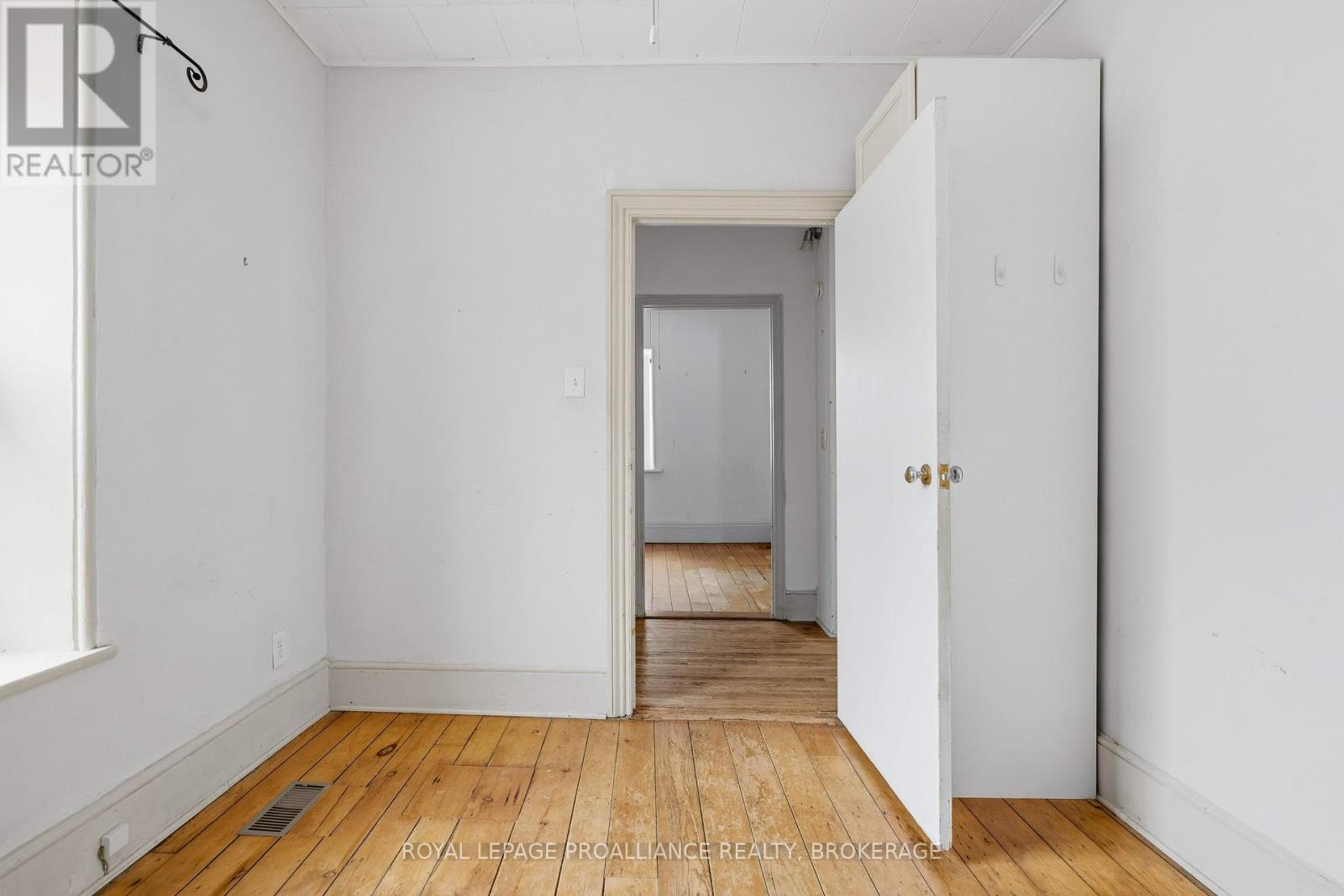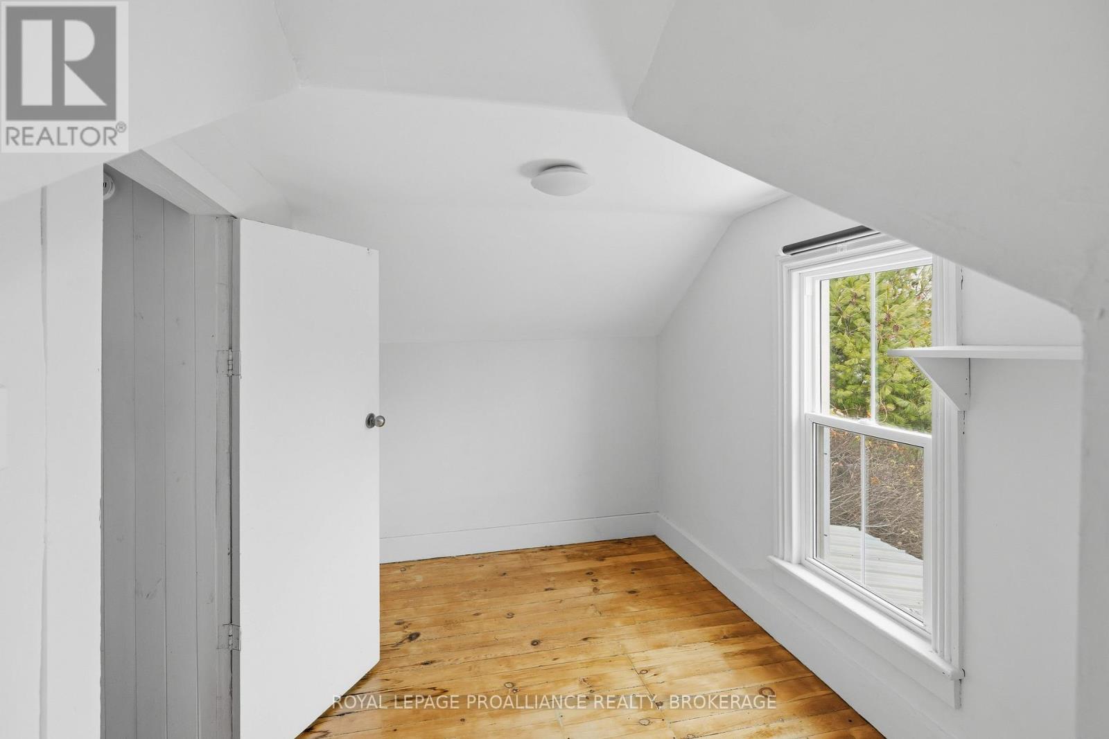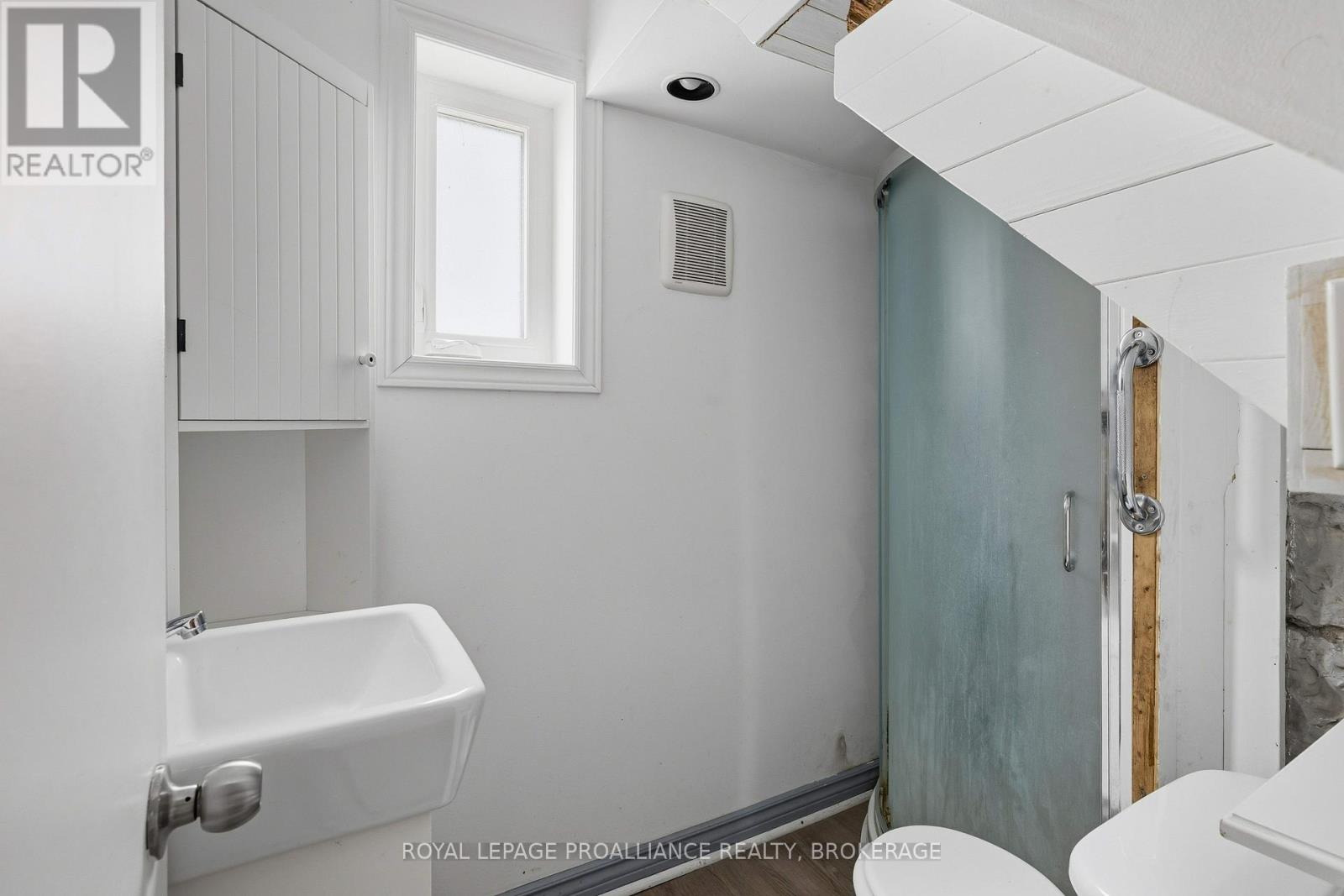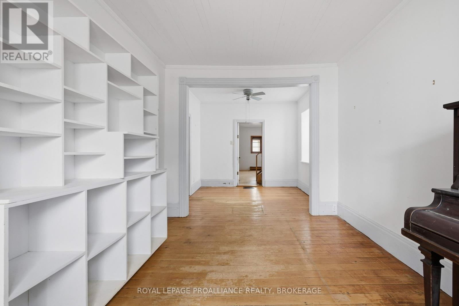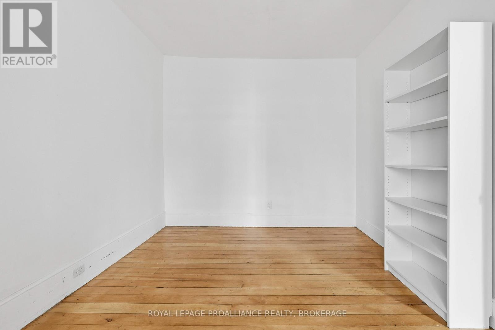 Middle of the nineteenth century, a builder worked his way up the north side of Charles St, in Kingston's Inner Harbour neighbourhood, honing his skills, trying on different styles, always working with limestone. He ended at 113 Charles, putting up a perfectly lovely (and perfectly symmetrical) Regency cottage. High-ceilinged, pine-floored rooms either side of a centre hall. Later a kitchen was added at the rear, and eventually a couple of extra rooms up above and two (!) narrow staircases (in case someone's after you and a quick getaway is required). Not an awful lot has changed in the main house. The plaster walls have fared remarkably well, and surely there's an old chimney hidden in the walls somewhere. At some point, probably a century after the house was built, someone covered everything in stucco, as if they were icing the grandest of wedding cakes. There is a closed-in lean-to attached to the side wall (could you use the footprint for a car port?), and a porch at the back. The garden is both wide and deep, with an elaborate shed and even a small greenhouse. So many futures are possible. You could build into the attic, or replace the rear wall with glass so the light pours in, maybe put an entirely new back section on a heated pad. Eventually you'll want to quietly close the door and admire in private what you've made, how glorious it is, but maybe that's just me. More sociable You might just wander down the block to The Elm, the Cataraqui River, Daughters, or up to McBurney Park and the Sunday market, showing off your album of before and after snapshots. (id:29295)