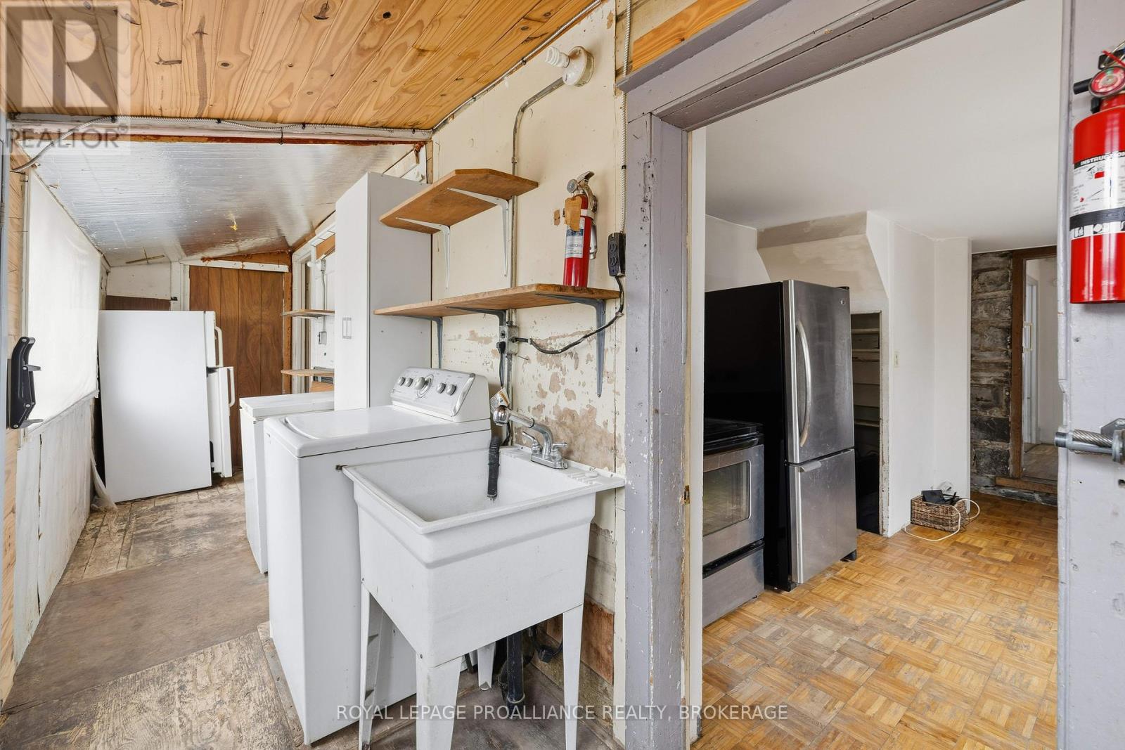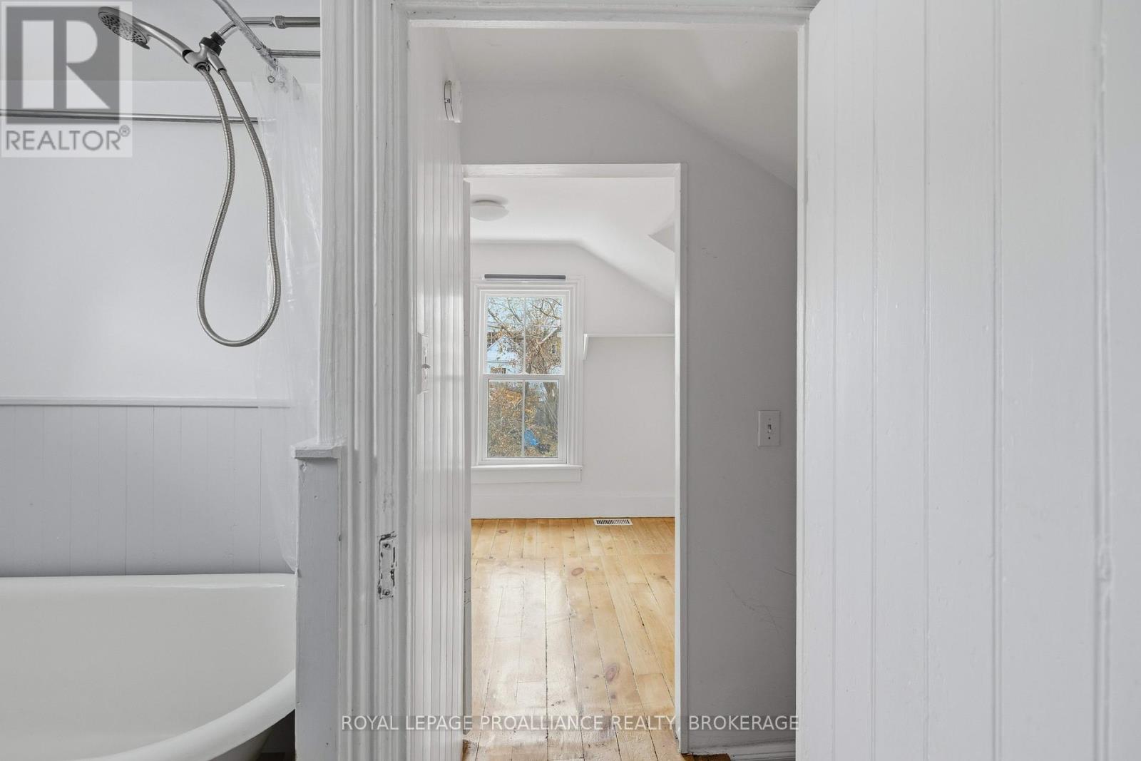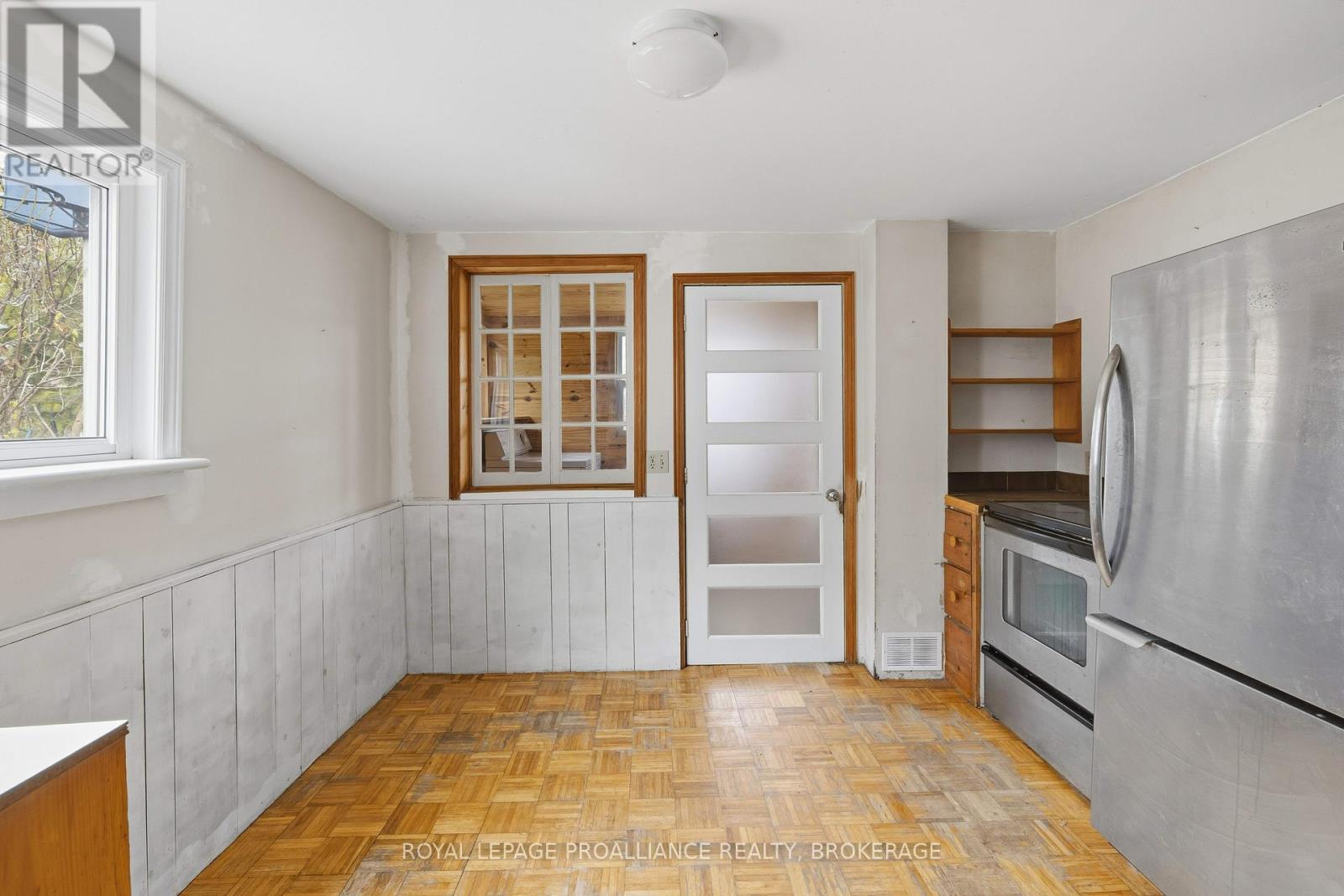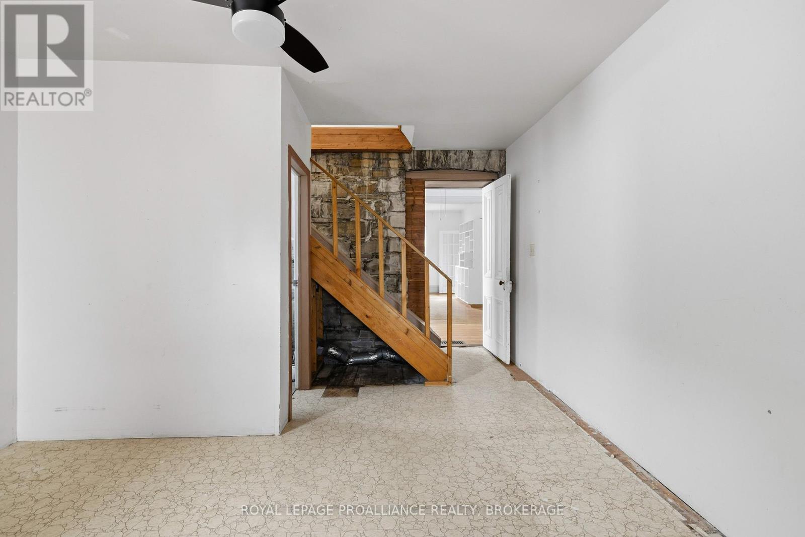 Middle of the nineteenth century, a builder worked his way up the north side of Charles St, in Kingston's Inner Harbour neighbourhood, honing his skills, trying on different styles, always working with limestone. He ended at 113 Charles, putting up a perfectly lovely (and perfectly symmetrical) Regency cottage. High-ceilinged, pine-floored rooms either side of a centre hall. Later a kitchen was added at the rear, and eventually a couple of extra rooms up above and two (!) narrow staircases (in case someone's after you and a quick getaway is required). Not an awful lot has changed in the main house. The plaster walls have fared remarkably well, and surely there's an old chimney hidden in the walls somewhere. At some point, probably a century after the house was built, someone covered everything in stucco, as if they were icing the grandest of wedding cakes. There is a closed-in lean-to attached to the side wall (could you use the footprint for a car port?), and a porch at the back. The garden is both wide and deep, with an elaborate shed and even a small greenhouse. So many futures are possible. You could build into the attic, or replace the rear wall with glass so the light pours in, maybe put an entirely new back section on a heated pad. Eventually you'll want to quietly close the door and admire in private what you've made, how glorious it is, but maybe that's just me. More sociable You might just wander down the block to The Elm, the Cataraqui River, Daughters, or up to McBurney Park and the Sunday market, showing off your album of before and after snapshots. (id:29295)