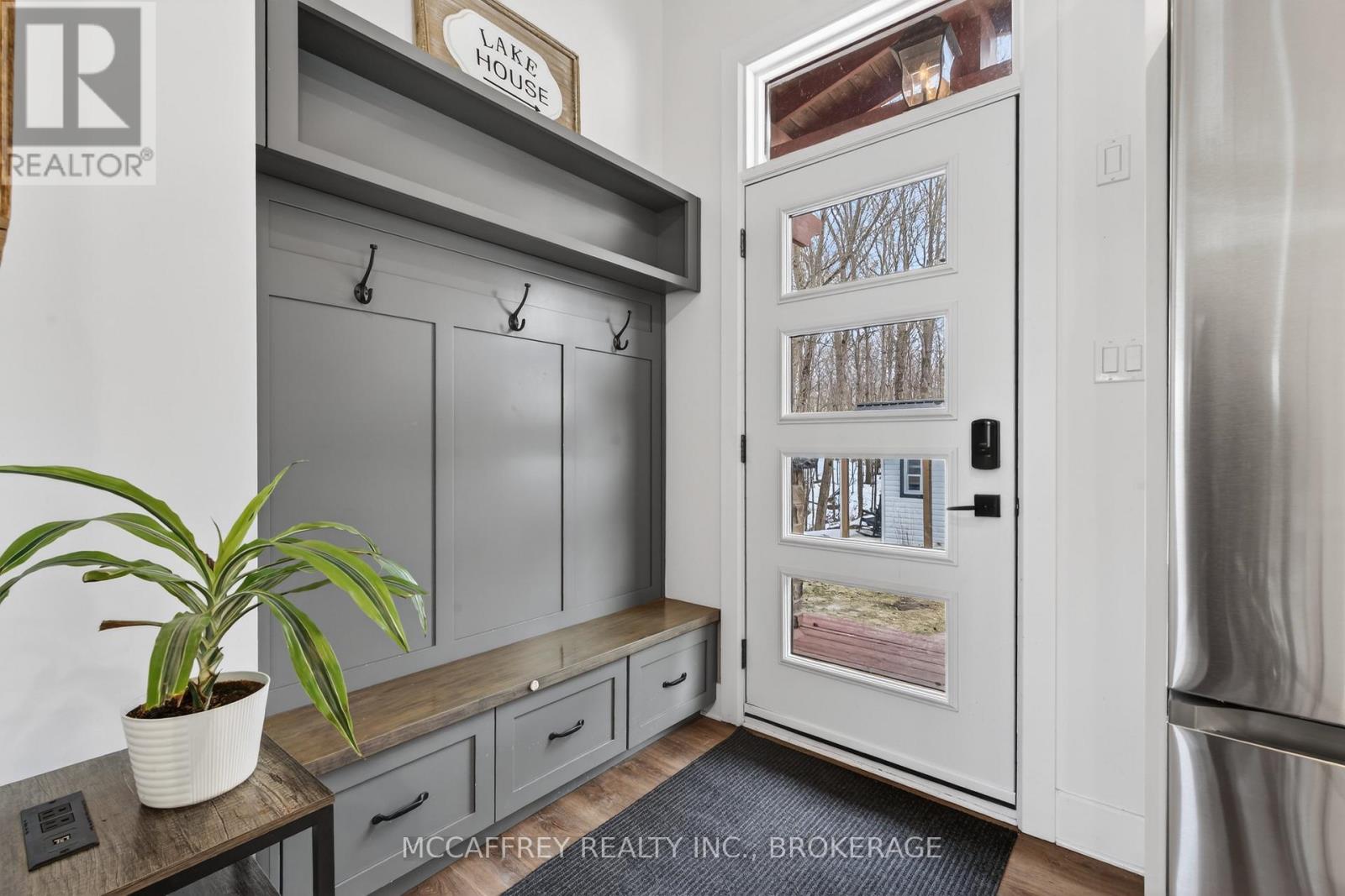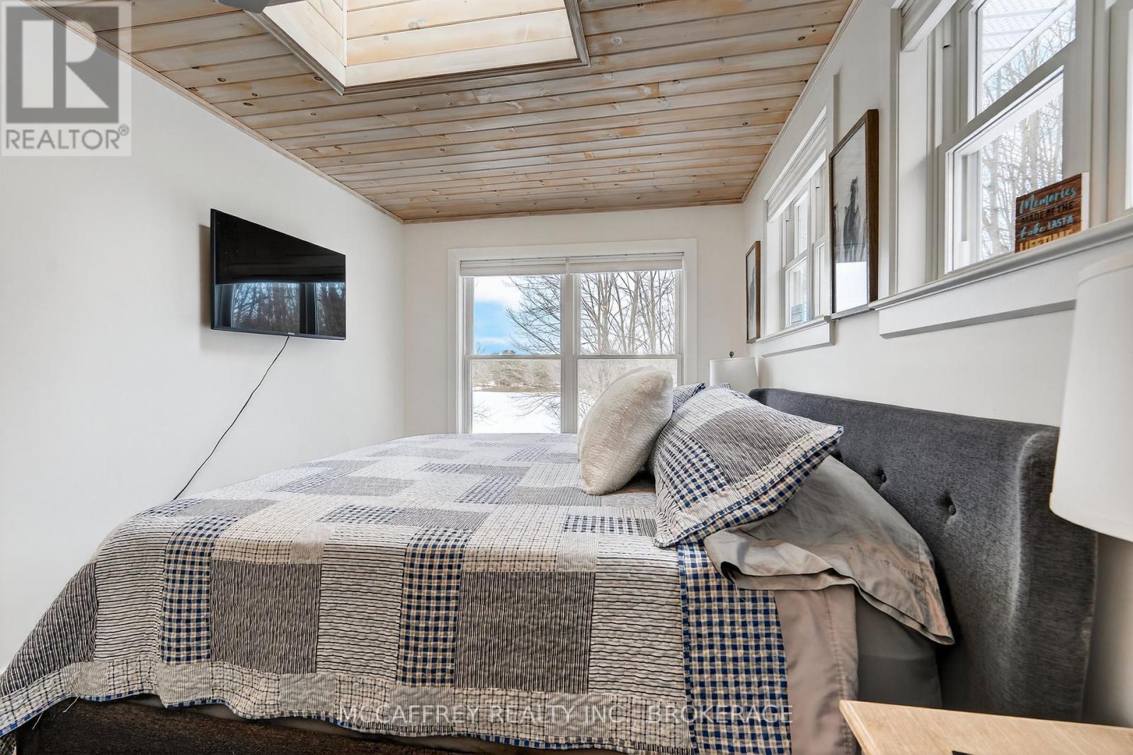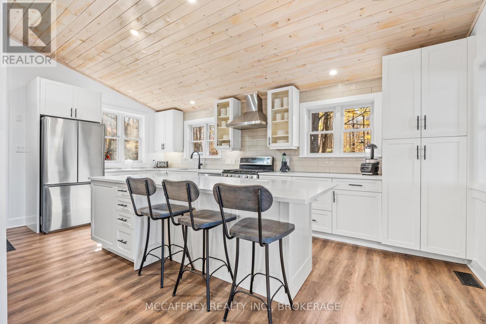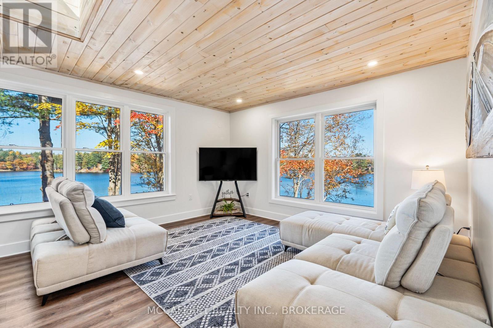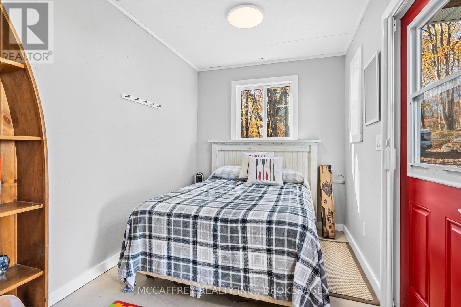 Welcome to your own slice of waterfront paradise on beautiful Elbow Lake. This beautifully updated bungalow sits on just over 140 feet of pristine shoreline, offering peaceful surroundings, mature trees, and stunning water views from nearly every room. Step inside to a gorgeous, fully updated kitchen featuring Quartz countertops, a large island, and ample cupboard space-perfect for entertaining or everyday living. The kitchen flows seamlessly into the spacious three-season sunroom, wrapped in windows that showcase breathtaking views of the lake and filled with natural light. From here, step out onto the deck overlooking the water, an ideal spot for morning coffee or evening sunsets. The main level also offers convenient main floor laundry, a 4-piece bathroom, and comfortable dining and living spaces designed to capture the beauty of the waterfront setting. The primary bedroom is a peaceful retreat, complete with a walk-in closet and private 3-piece ensuite. The fully finished walk-out basement expands the living space with two additional bedrooms, a 2-piece bathroom, and a generous utility room with plenty of storage. Patio doors lead directly outside, making it easy to enjoy the lakefront lifestyle. Outdoors, the property is framed by large mature trees that provide privacy and natural beauty. Enjoy clean, deep water from the brand new dock, perfect for swimming, boating, or simply relaxing by the shore. A convenient bunkie offers additional space for guests, making weekend gatherings and summer visits effortless. Whether you're looking for a year-round home or the perfect waterfront getaway, this exceptional property delivers the ultimate Elbow Lake lifestyle. (id:29295)