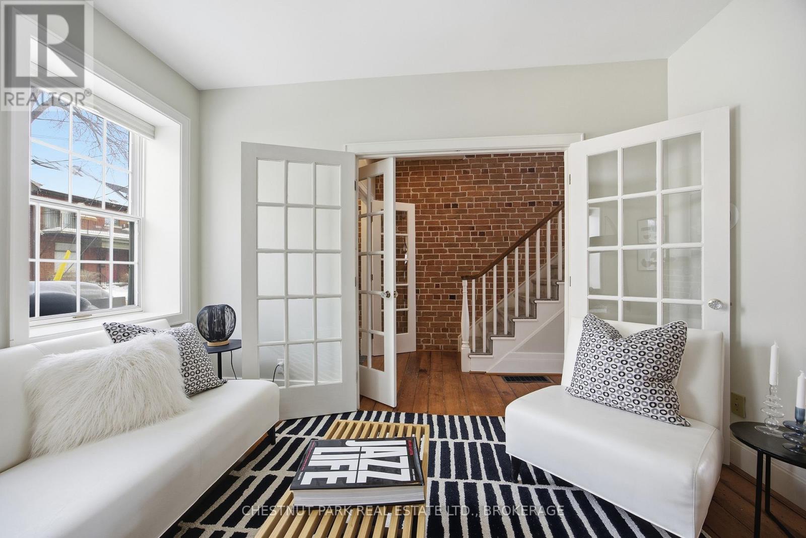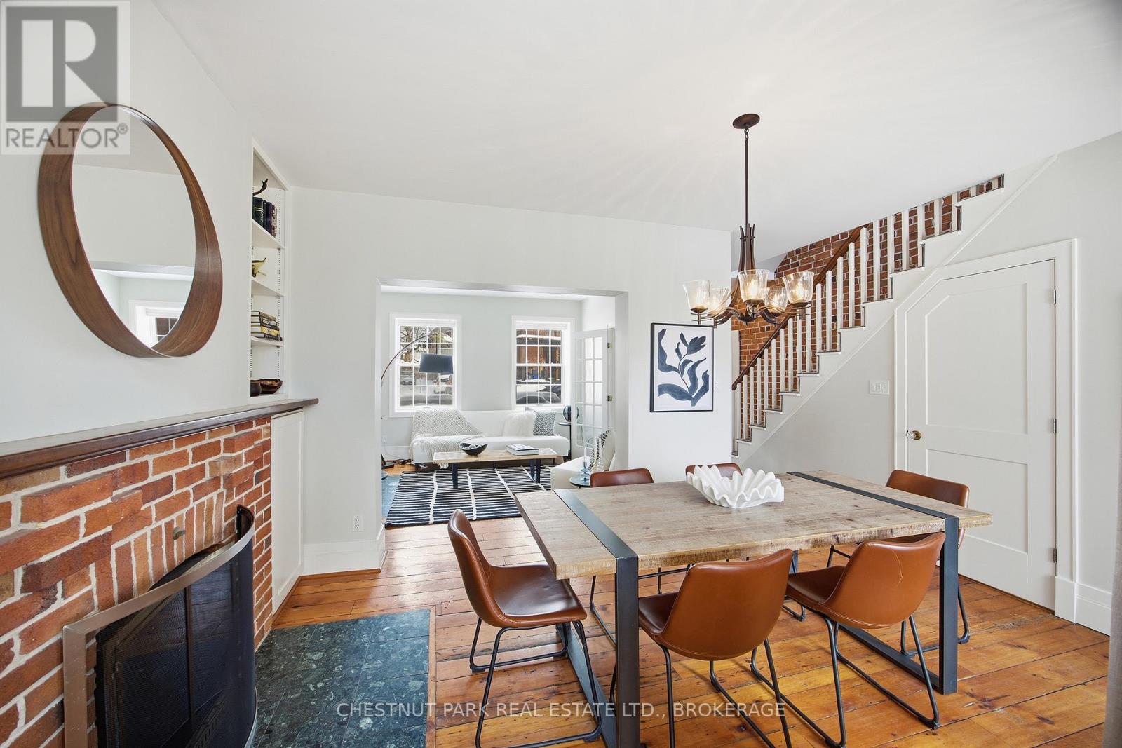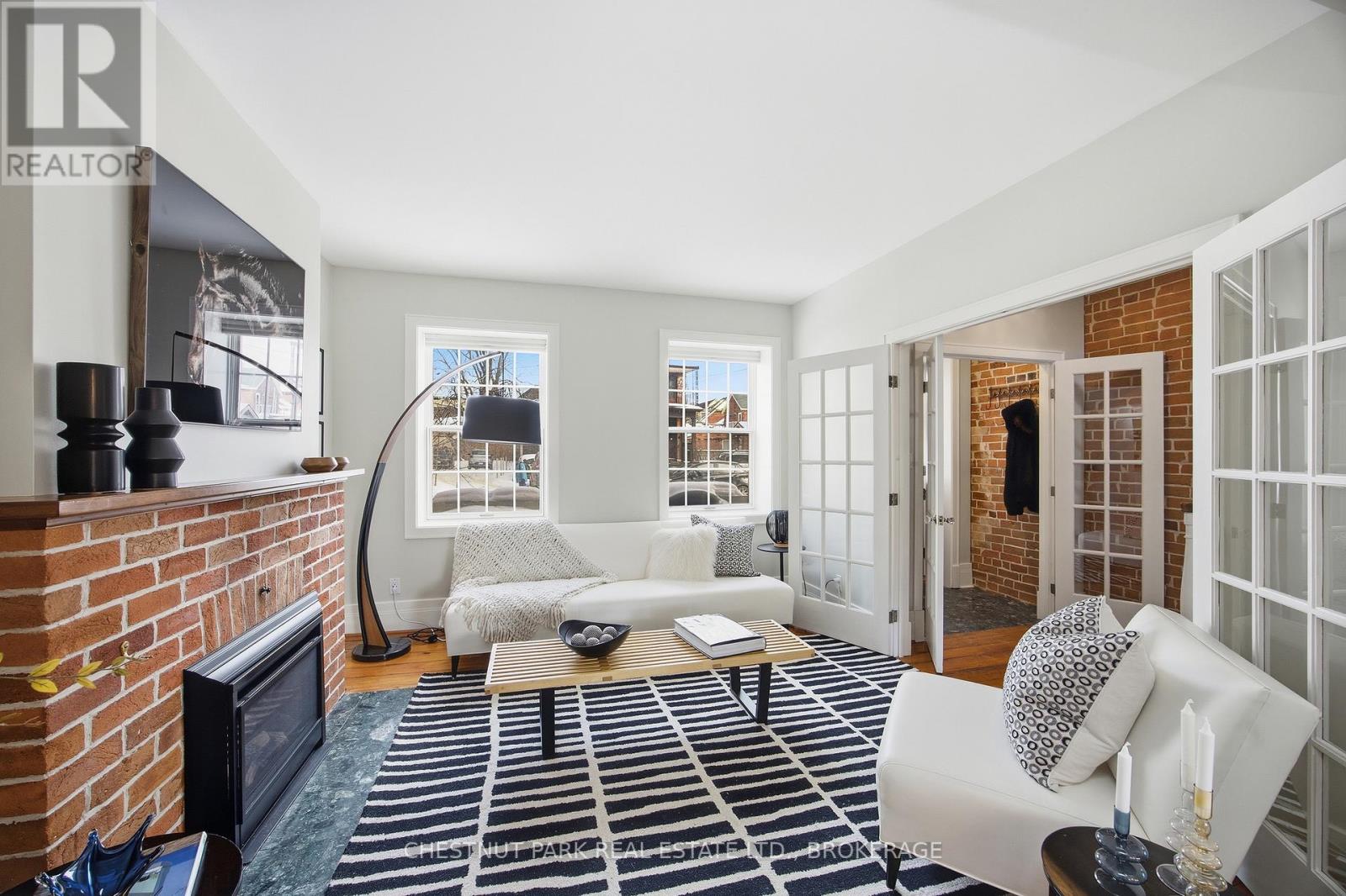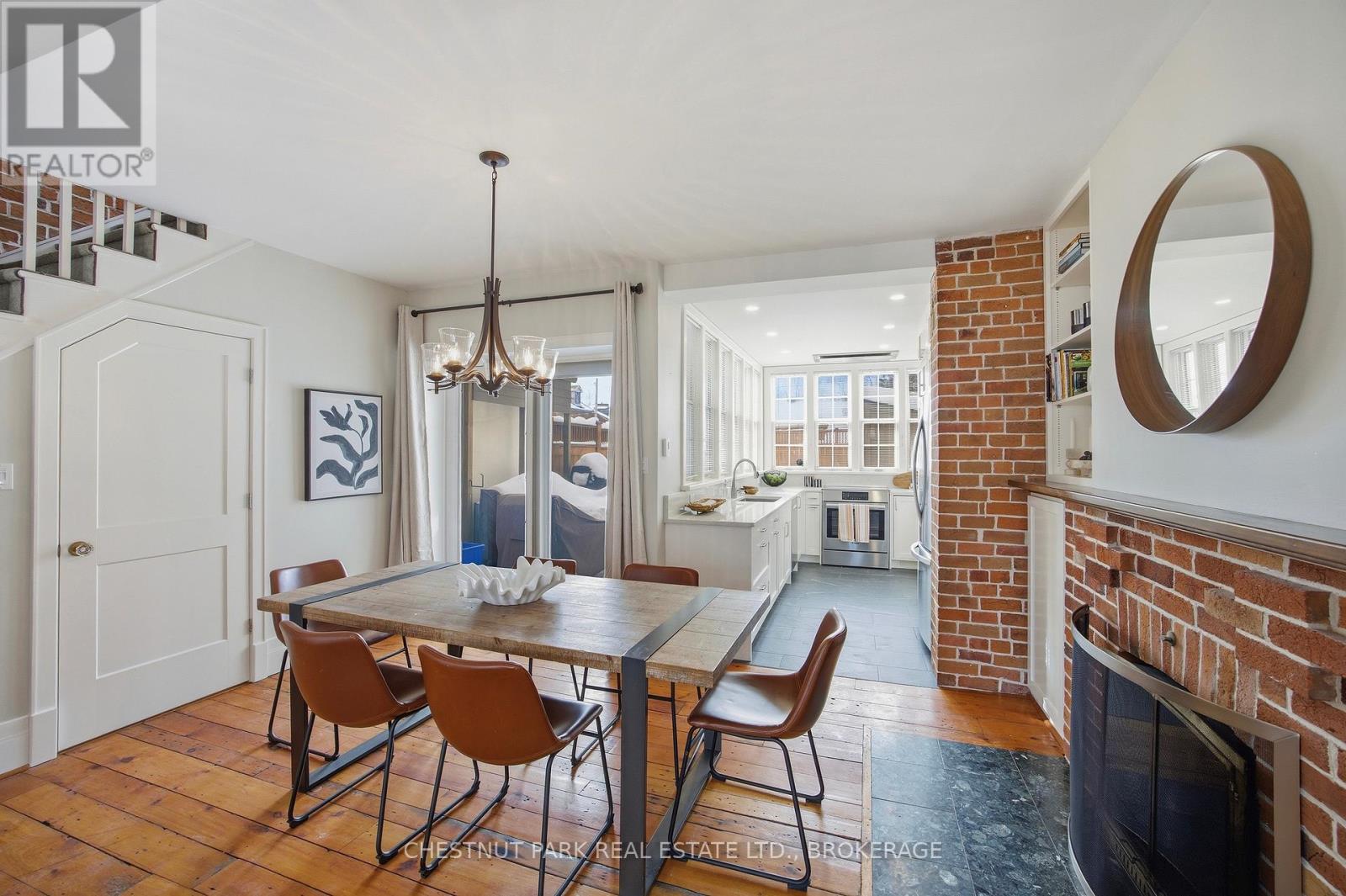Step into the charm of downtown Kingston living with this beautifully restored historic brick end-unit townhouse, where timeless character meets modern comfort. Completely renovated and truly move-in ready, this stunning home offers 1,763SF across three finished levels, filled with natural light, warmth, and thoughtful upgrades throughout. Inside, you'll love the rich character of exposed brick interiors, paired perfectly with stylish contemporary finishes. The cozy living room features a gas fireplace (2024), creating the perfect space to relax or entertain. The heart of the home is the bright, fully renovated kitchen (2024) with new appliances and heated floors, flowing seamlessly into the dining area with patio doors leading to a private backyard patio - ideal for summer dinners and morning coffee.The second floor offers two bedrooms and a full bathroom. The second bedroom features a rare bonus: an attached office/studio surrounded by windows, perfect for working from home, creating, or studying. The third floor is a showstopper, featuring a large primary bedroom suite complete with a walk-in closet, full ensuite bathroom, and patio doors opening to your own balcony retreat.With three bedrooms, two full bathrooms with heated floors, and a newly added main floor powder room (2025), this home delivers both space and functionality. Additional updates include a tankless water heater (2023), a new washer and dryer (2025), and a backyard shed (2021) for extra storage.Outside, enjoy beautifully updated curb appeal with front and side landscaping completed in 2024, plus the convenience of backyard parking with interlocking brick.All of this is located just steps to downtown Kingston, with easy walking access to shopping, restaurants, the waterfront, Marina, Queen's University, schools and hospitals. A rare opportunity to own a one-of-a-kind historic home in one of Kingston's most sought-after locations. This is downtown living at its finest. (id:29295)