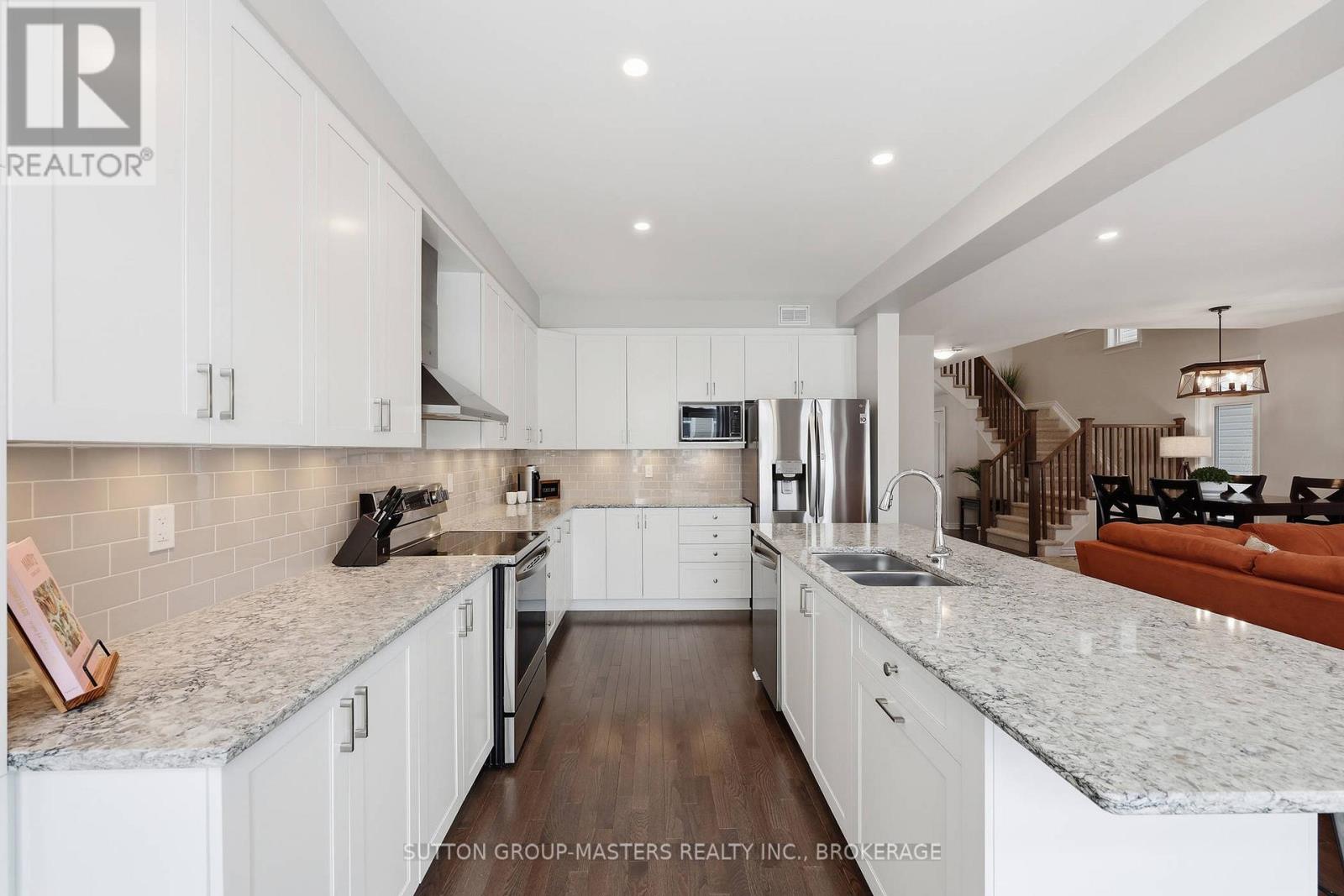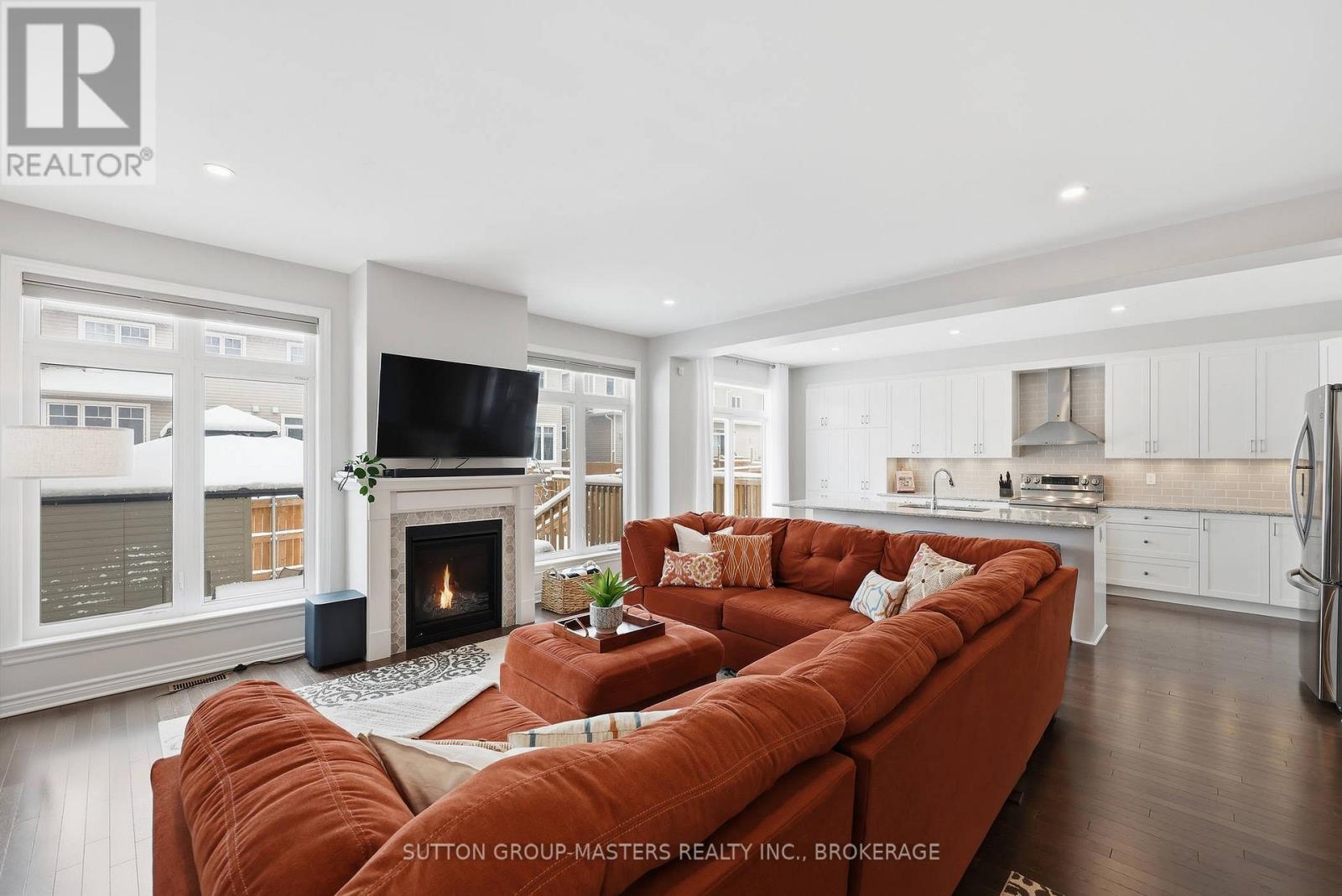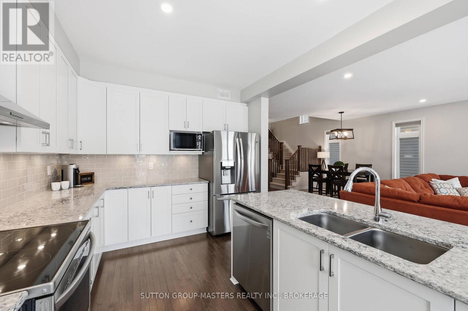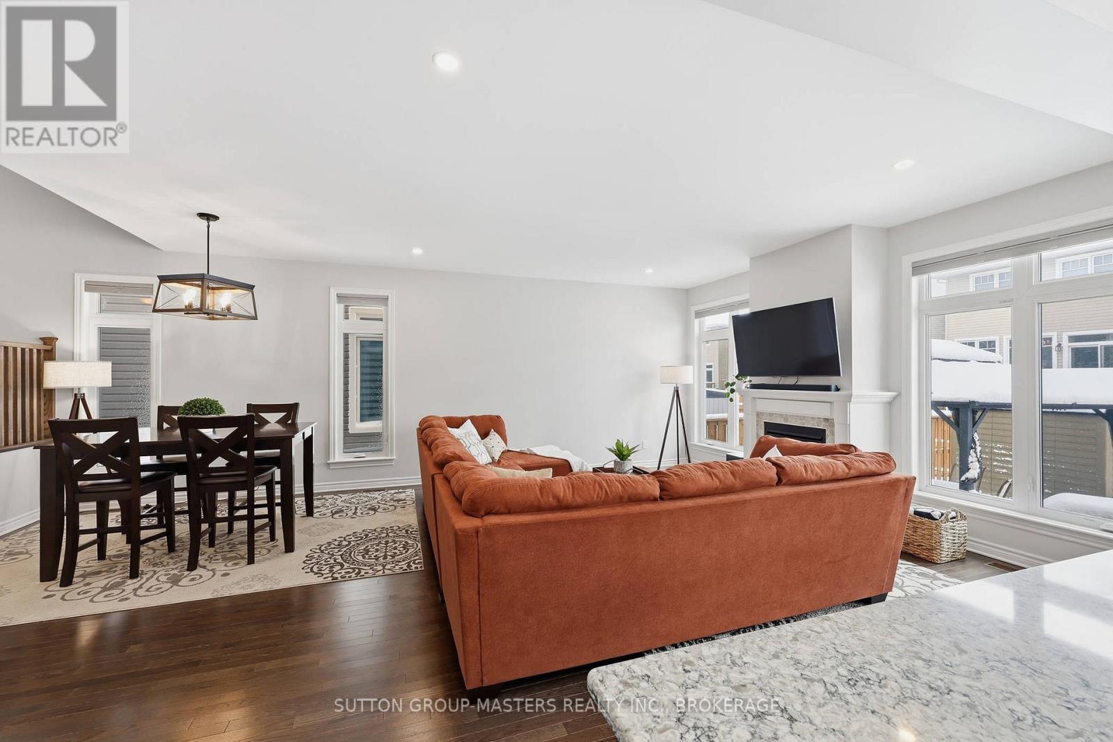 Welcome to this meticulously maintained 5-year-old Sable model by Tamarack Homes, nestled in the sought-after Riverview community on the east side of the Limestone City. From the serene covered front porch to the generous entryway, this home impresses with its desirable open-concept layout, abundant natural light, and soaring 9-foot ceilings. The chef-inspired kitchen is a true highlight, featuring an oversized island with stone countertops, upgraded cabinetry with soft-close drawers, and a timeless subway tile backsplash. The inviting living room is anchored by a custom gas fireplace and flows seamlessly into the adjacent formal dining area - perfect for both everyday living and entertaining. Thoughtfully designed, the main level also offers a spacious mudroom with inside access to the attached double-car garage, along with a dedicated office tucked just beyond, complete with charming windows. Upstairs, the expansive primary suite boasts a walk-in closet and a stunning 5-piece ensuite with a soaker tub and separate shower. Three additional well-appointed bedrooms and a conveniently located laundry room with sink complete this level. The lower level is ready for your personal touch, offering elevated ceilings, large windows, and a bathroom rough-in. Recently painted throughout, the home continues to impress outdoors with a fully landscaped and fenced backyard, featuring a concrete patio and walkway-ideal for relaxing or entertaining. Perfectly situated with easy access to Hwy 401, CFB Kingston, schools, downtown, and a wide range of amenities, this exceptional home is ready to welcome its next owners. Come see it for yourself! (id:29295)