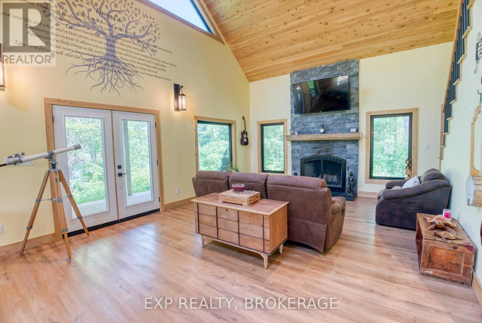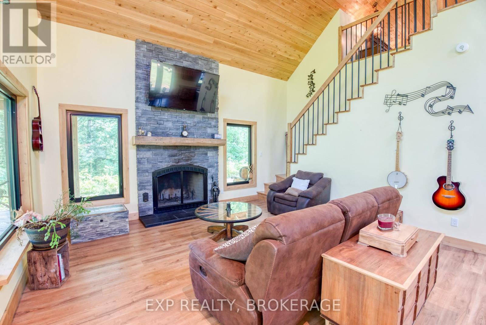 Welcome to 1249 Waters Edge Lane! Come discover this year-round waterfront getaway located on the beautiful Kennebec Lake. The home built in 2022 offers a complete cottage style luxury complemented with an off-grid solar power system and back up generator. The layout consists of a main level bedroom, full bathroom, open concept kitchen, dining and living room with a vaulted ceiling giving you that wow factor! The second level provides a large primary bedroom with an open loft concept, a jacuzzi soaker tub and 2nd full bathroom along with his & hers closet. The attached 30'x30' garage offers plenty of space for keeping your vehicles or recreational toys and would make a great space for a future workshop. On the outside have a seat along the wrap around porch and take in the waterfront views, the beauty of nature and the privacy that surrounds you. The lot is level and offers plenty of space for outside enjoyment with friends and family of all ages. A gentle path takes you down to 257' feet of waterfront that is perfect for swimming and soaking in the sun. Kennebec Lake offers miles of shoreline to explore, great for boating, fishing and all your watersport activities. For all your daily needs and amenities, take a drive to the town of Arden or pop into the town of Sharbot Lake and enjoy the local restaurants, cafes, entertainment and much more! (id:29295)