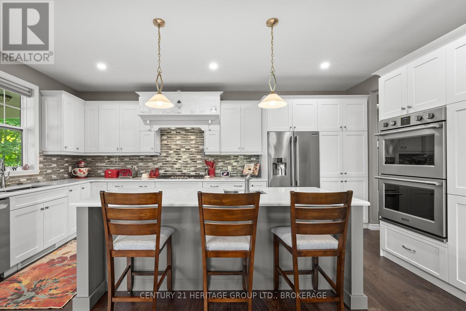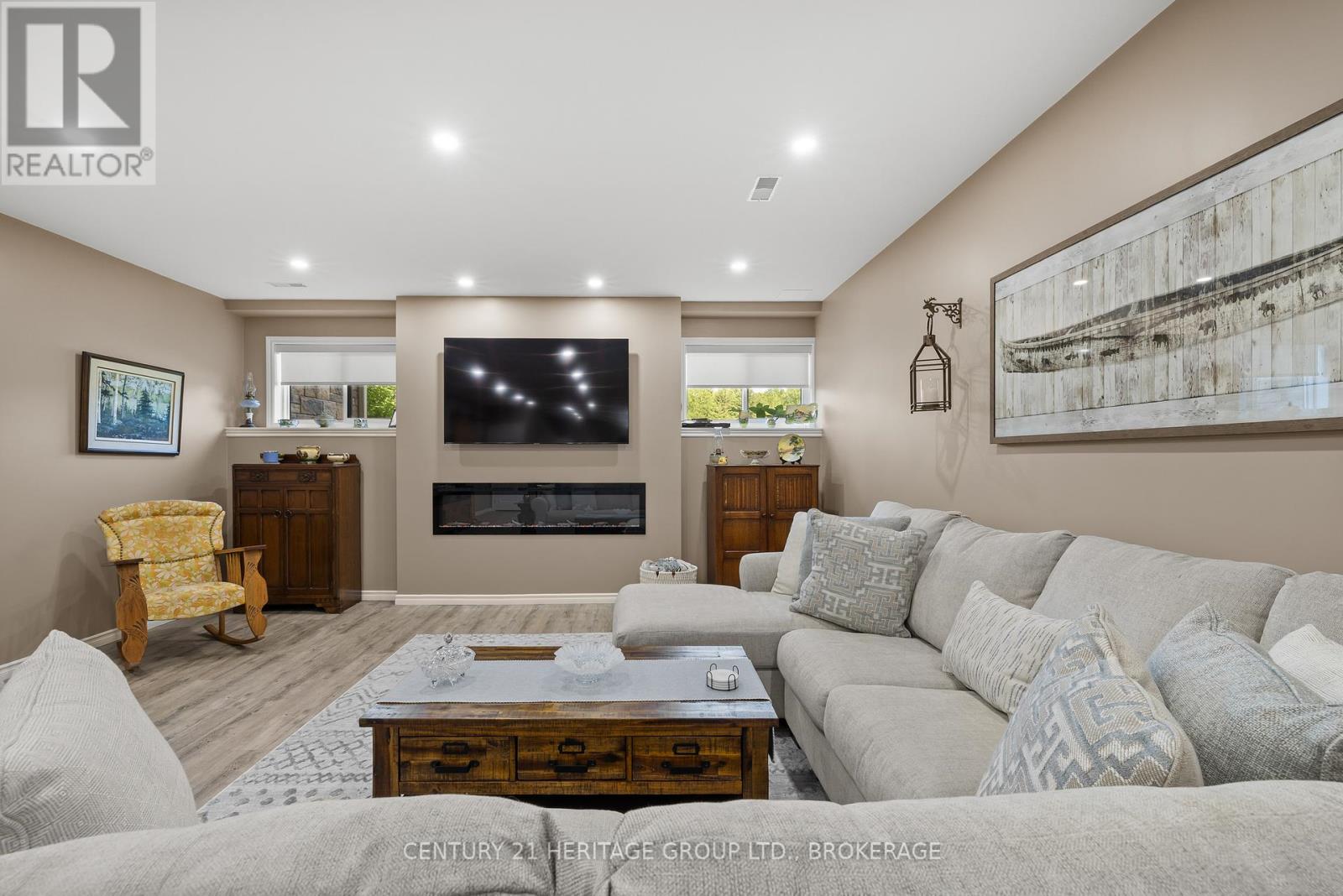 Welcome to this custom-built bungalow set on 4.52 private acres in the desirable Cranberry Cove Estates. With views of Cranberry Lake, your own pond, and a wooded backdrop, this home offers peace, privacy, and space to enjoy every season. The main level features 3 bedrooms, including a beautiful primary suite with walk-in closet and a 5-piece ensuite with soaker tub and glass shower. Tall ceilings, 8' doorways and large windows bring in natural light throughout. The great room and dining area are accented by 10 coffered ceilings, crown molding, wide-plank hickory hardwood, and a gas fireplace with stone surround. At the heart of the home, the chefs kitchen is both functional and high-end quartz countertops, shaker cabinets, tiled backsplash, and a massive 8' island with prep sink. Premium appliances include a 36 gas cooktop, double wall ovens, wine fridge, French-door refrigerator, micro drawer, and two dishwashers. Two car garage with entrance through the mud room. Downstairs, the fully finished basement nearly doubles your living space with 2 additional bedrooms, a full bathroom, a family room, games area, dry bar, home gym, and plenty of storage. Shouldice stone and board and batten exterior. Step outside and enjoy the surroundings: a covered front porch with lake views and rock gardens, and a large covered back deck overlooking your own pond and the forest. There's even a fire pit area perfect for relaxing to the sound of frogs at dusk. With over 3,400 sq. ft. of finished living space, custom finishes throughout, and only 35 minutes to Kingston, this is the rare rural retreat that truly has it all. (id:29295)