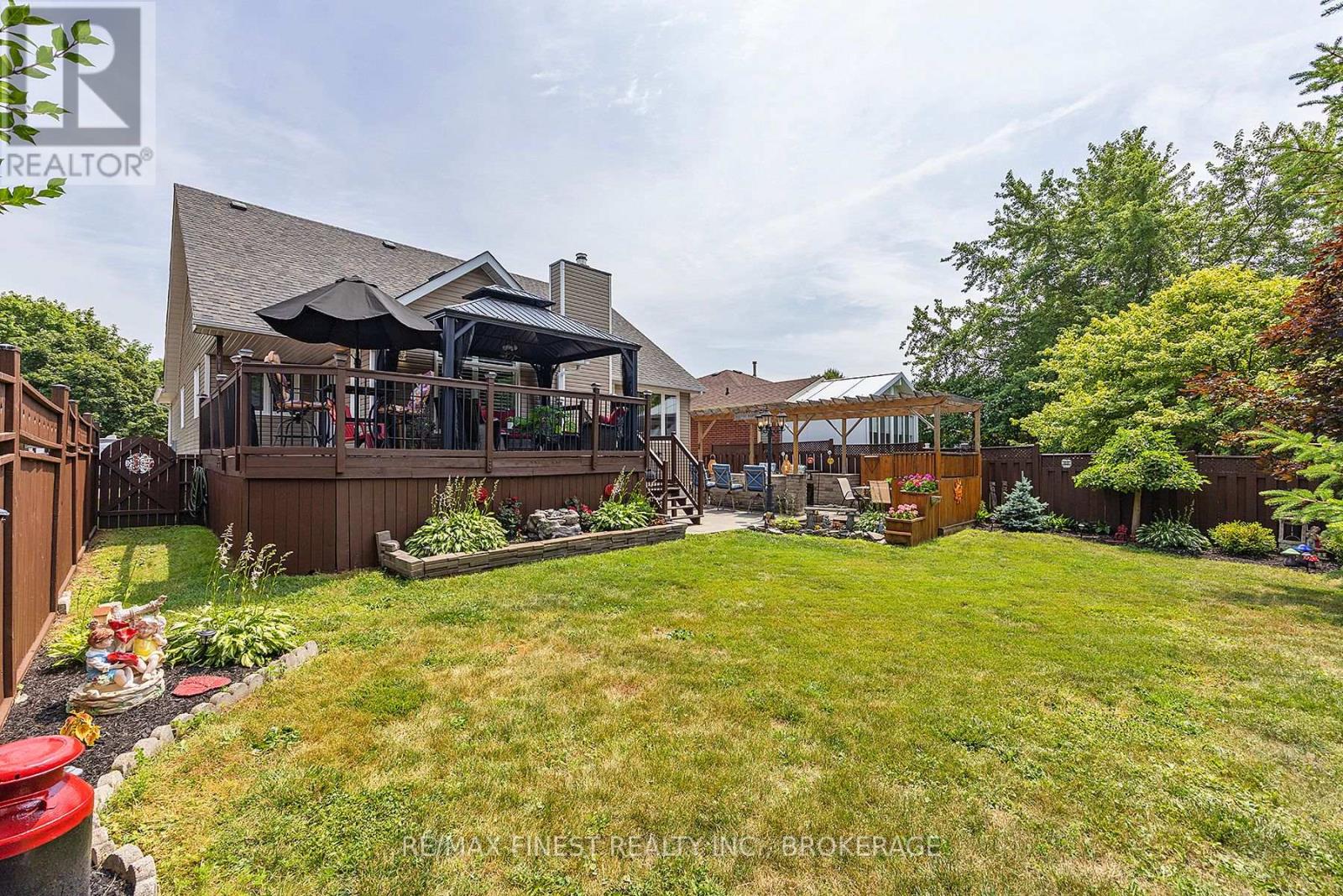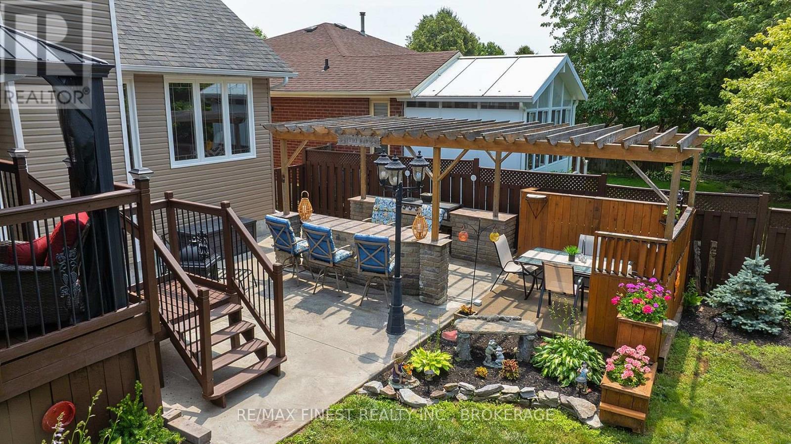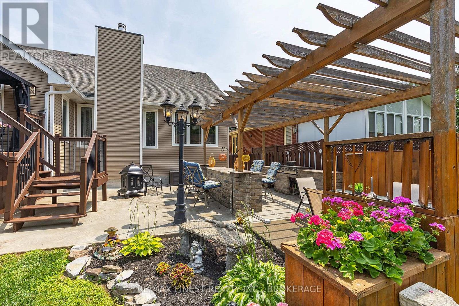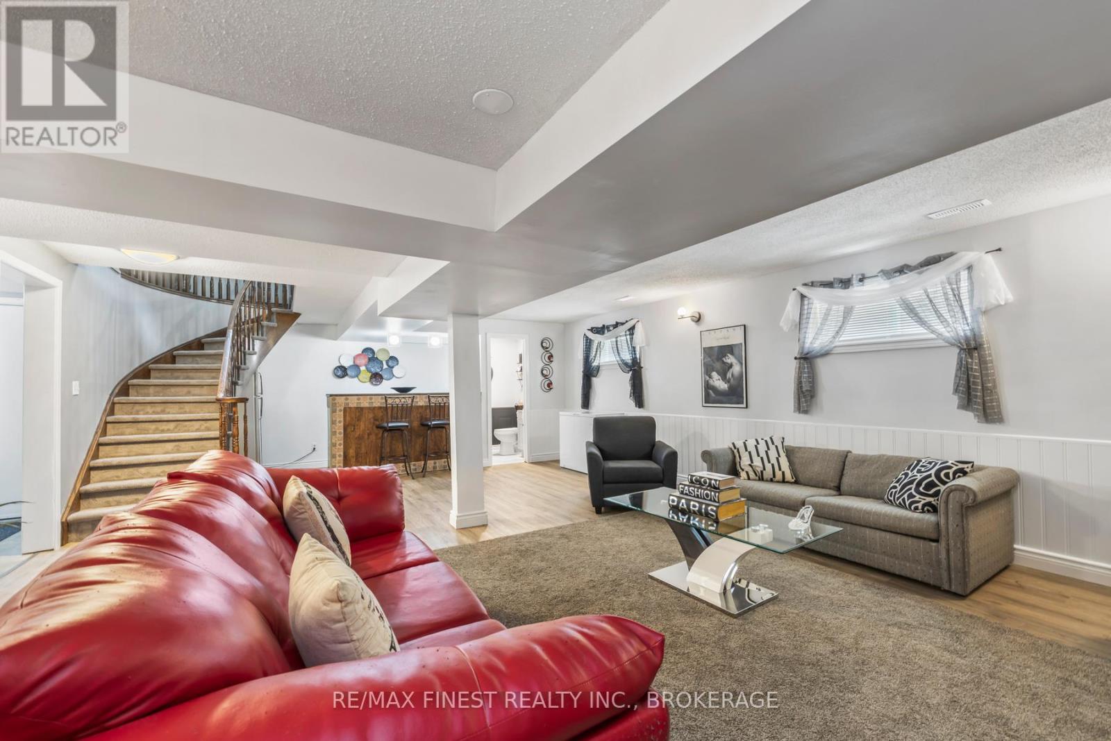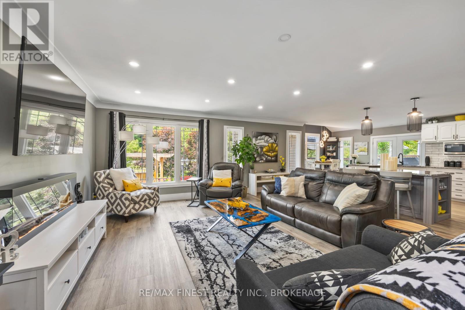 Welcome to this beautifully updated custom built elevated bungalow nestled in one of the areas most sought-after neighborhoods. Thoughtfully renovated from top to bottom, this 3 bedroom plus office, 2.5 bath home perfectly blends modern design with everyday comfort. Step inside to discover a bright, open-concept layout featuring sleek flooring, pot lighting and a chef-inspired kitchen complete with stainless steel appliances, granite countertops and ample cabinetry. The spacious living and dining area is ideal for both entertaining and relaxing, while the large windows with vaulted ceilings offer plenty of natural light. The primary bedroom is a true retreat, showcasing a striking stone accent wall, high ceilings, a spa-like ensuite bath and a generous walk-in closet. Two additional bedrooms on the main floor provide versatility for family, guests, or a home office. The fully finished basement expands your living space with a massive rec-room, an additional office space and a bathroom perfect for a growing family or in-law potential. Outside, you'll find a professionally landscaped oasis with no rear neighbors, offering privacy and tranquility. Enjoy multiple stone patios, lush gardens and a custom outdoor kitchen perfect for hosting summer gatherings or simply unwinding in nature. Located close to top-rated schools, parks, shopping, and all amenities, this home truly offers the best of both indoor luxury and outdoor lifestyle. Don't miss your chance to own this rare gem! (id:29295)
