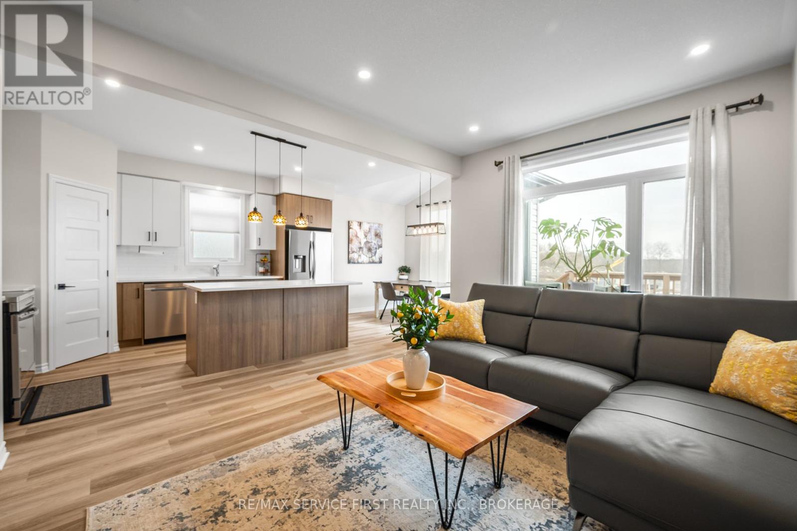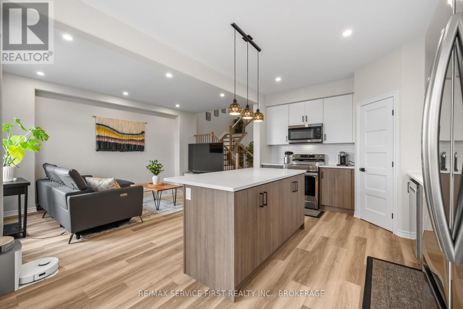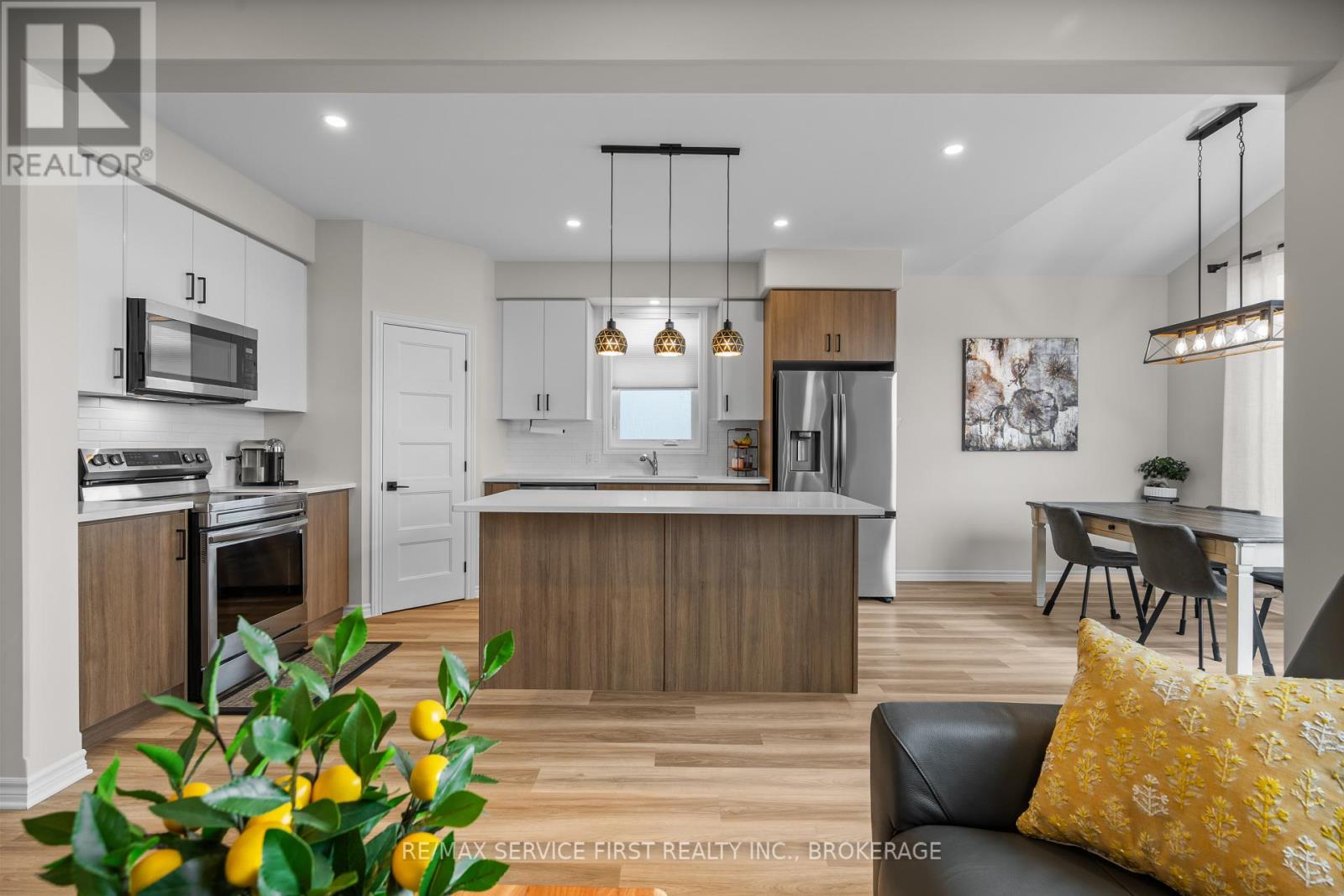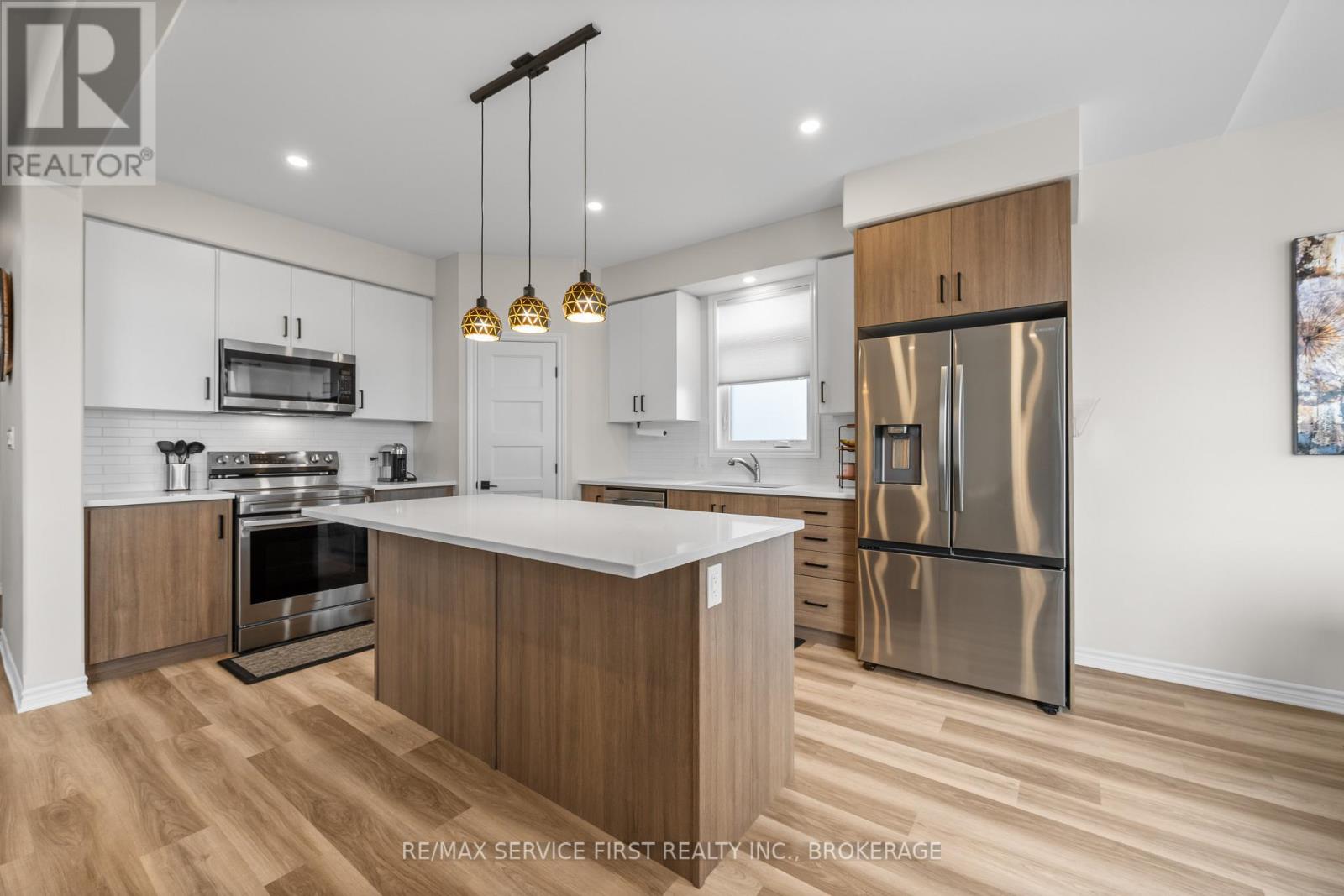 $4,000 CASH INCENTIVE BONUS OFFERED TO BUYERS ON CLOSING. MOVE-IN READY.Welcome to this upgraded, open concept 2-year-old Greene Homes Tundra model in the desirable Creekside Valley community. This move-in ready home stands out from nearby new builds by offering completed upgrades, added features, and no construction delays.This 4-bedroom, 2.5-bathroom home features a bright open-concept main floor, ideal for modern living and entertaining. With over $35,000 in upgrades, the home offers both style and value from day one.Upgrades include luxury vinyl plank flooring on the second level, a wood staircase with railing, bi-colour kitchen cabinetry, pot lights throughout the main floor, and a contemporary backsplash. The primary bedroom includes a private ensuite with an upgraded shower for added comfort.Enjoy a fully finished property with a spacious deck, electric garage door opener, 4 ft concrete walkway, installed light fixtures, mirrors, window coverings (blinds), and laundry room cabinetry-features often not included in new construction.Located in a growing Kingston neighbourhood close to amenities, this home offers immediate value, modern finishes, and a turnkey opportunity.Book your showing today. (id:29295)