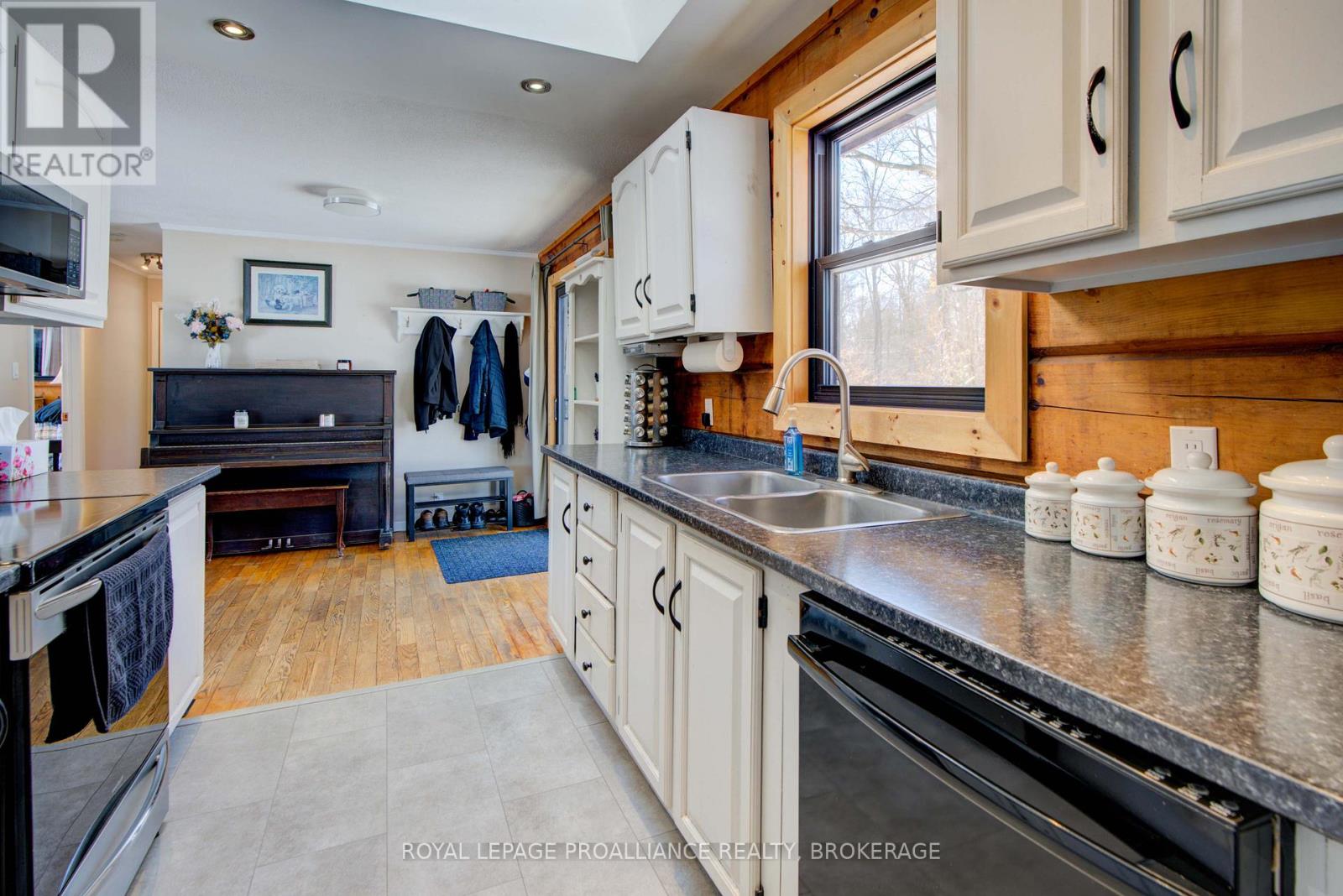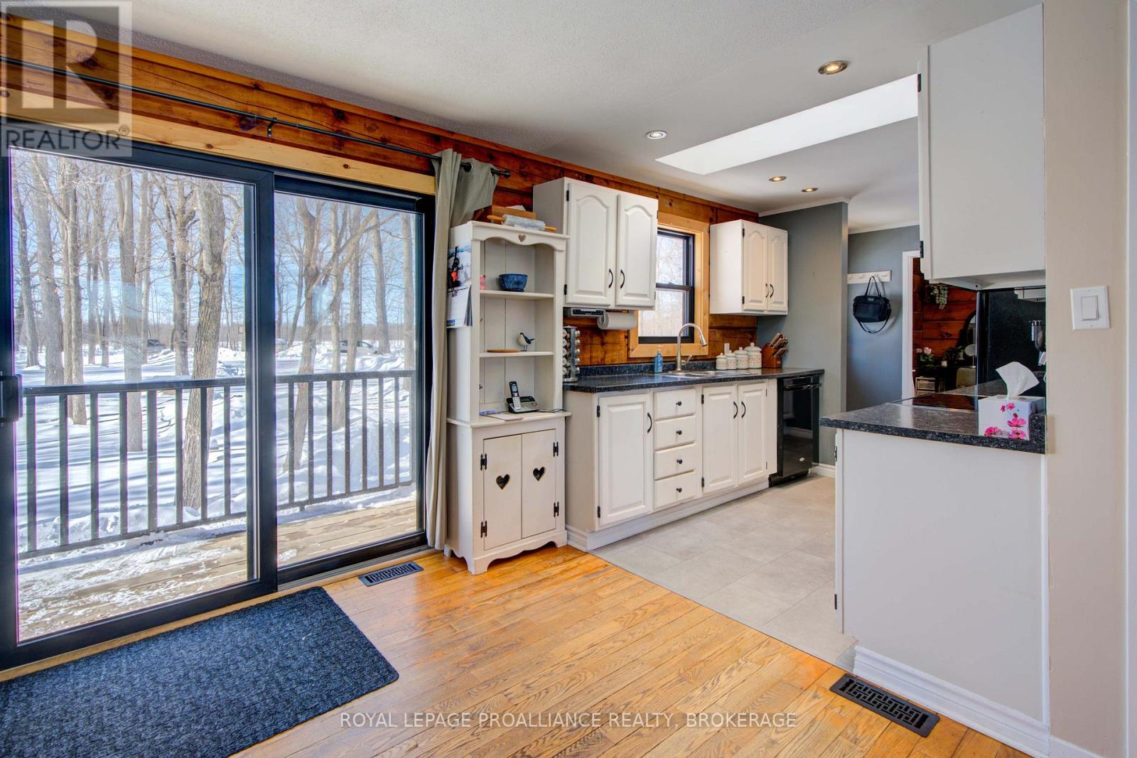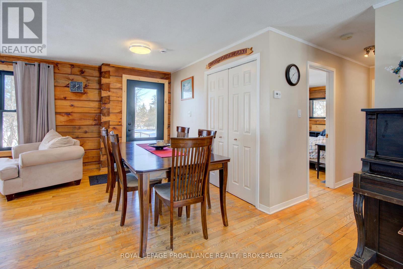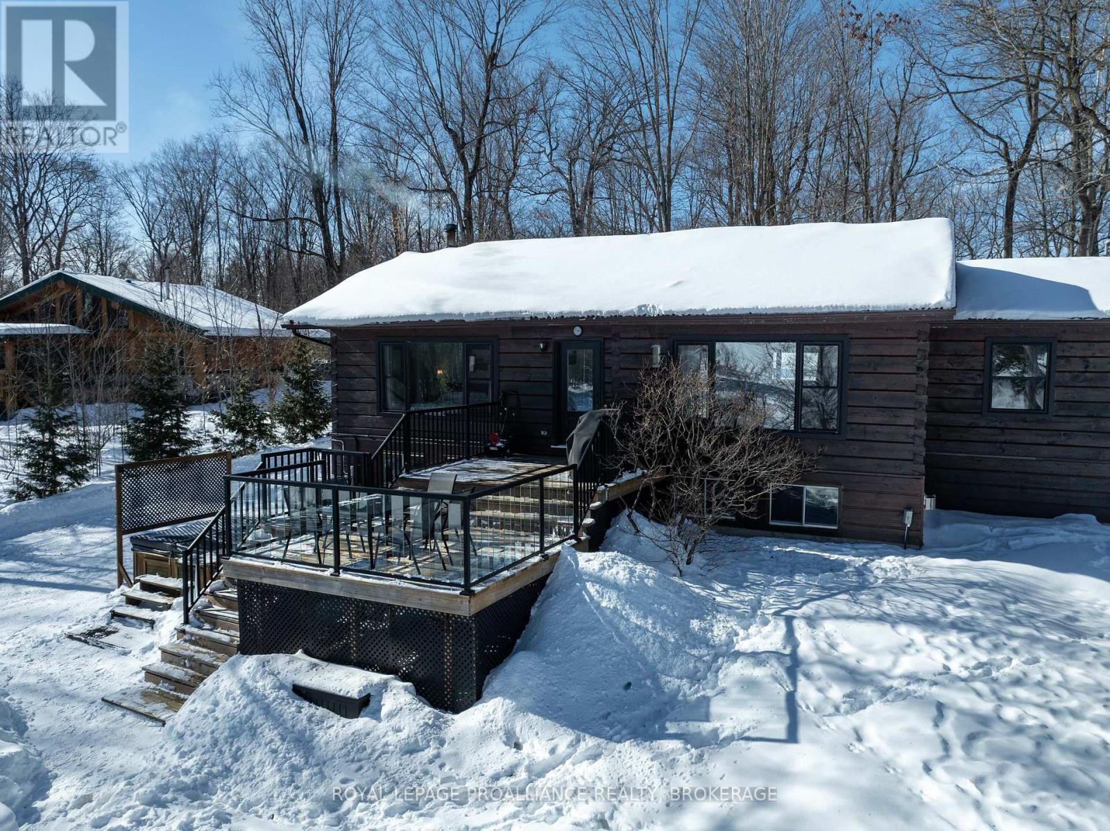 Welcome to this cozy retreat in the heart of lake country, set on an east-facing, over one-acre lot with mature trees and beautiful perennials, just 7 km south of the charming Village of Westport. Full of rustic character that only a true log home can offer, this property features three bedrooms on the main level and an additional bedroom on the lower level. Step inside to find a warm and inviting layout with the kitchen at the rear of the home and a bright living room at the front, perfectly positioned to capture stunning lake views. Down the hall, you'll find the bedrooms and a beautifully updated 4-piece bathroom (2024). Step outside onto the spacious lakeside deck - the perfect place to enjoy your morning coffee while watching the sunrise and listening to the sounds of nature. Just a few steps down, unwind in the hot tub for ultimate relaxation. Imagine spending warm summer days in the lakeside gazebo with a good book and a gentle breeze off Upper Rideau Lake. The walkout lower level offers a cozy recreation room complete with a woodstove, creating a warm and welcoming space to relax or entertain. This level also includes a bedroom, laundry room, and convenient walk-out access to the side yard. Many thoughtful updates have been completed over the years, including the kitchen and main bathroom (2024), dock (2025), furnace (2018), and more. Upper Rideau Lake, one of the larger lakes on the renowned Rideau Canal system, offers endless opportunities for boating and exploring. Spend the day on the water and dock at one of the ports on the Rideau System for dinner, shopping or entertainment. The waterfront features natural shoreline areas and sufficient depth off the aluminum dock for your boat. Located on picturesque Sugarhouse Lane, surrounded by majestic maple trees, this property embraces everything cottage country has to offer - boating, hiking, golfing, snowmobiling, ATV trails, and even the opportunity to tap your own maple trees for syrup. (id:29295)