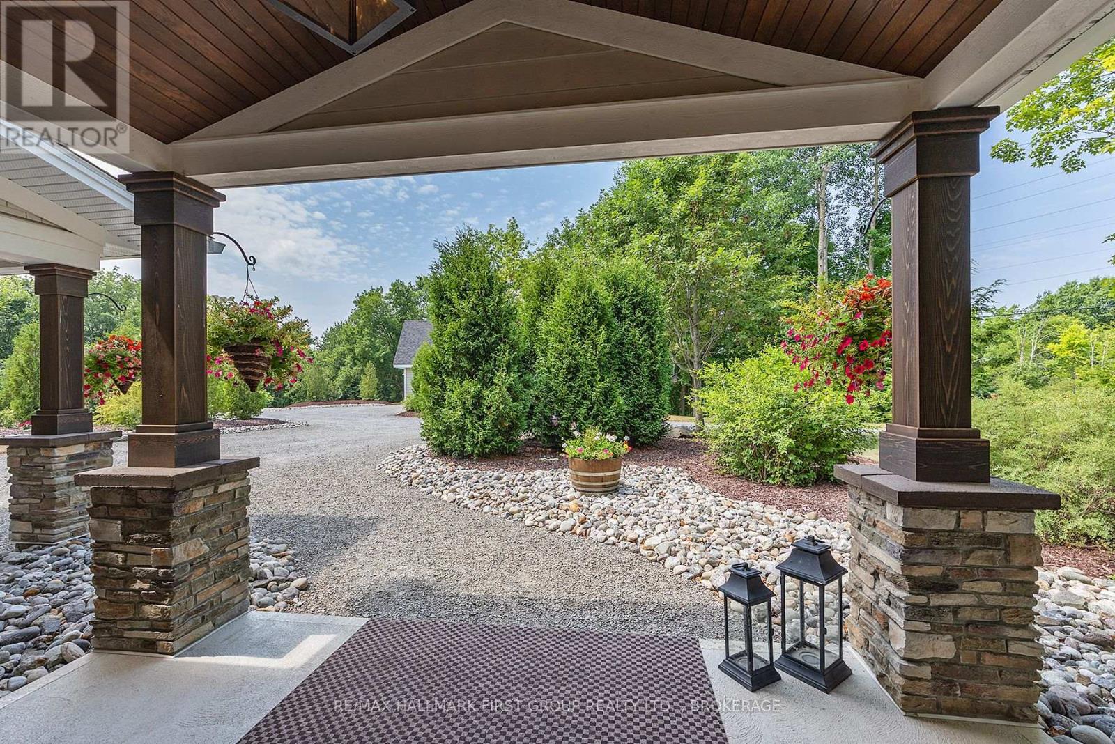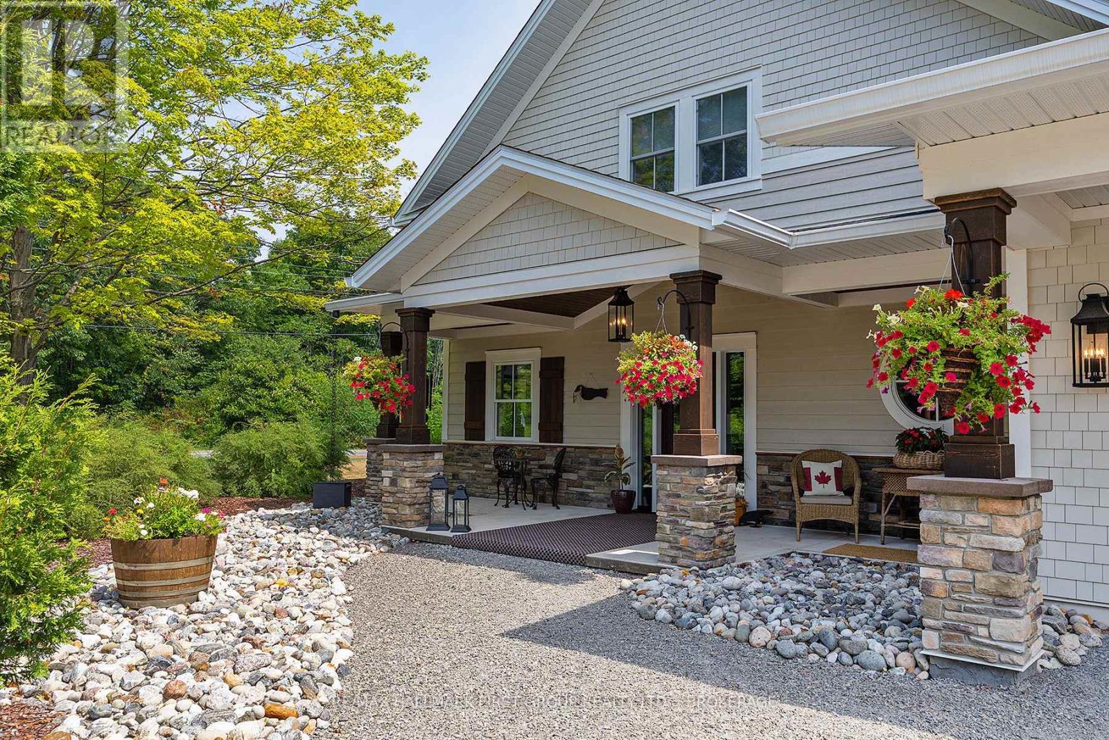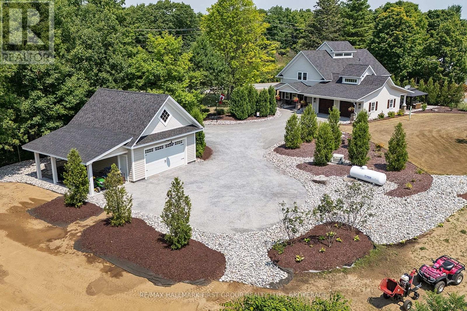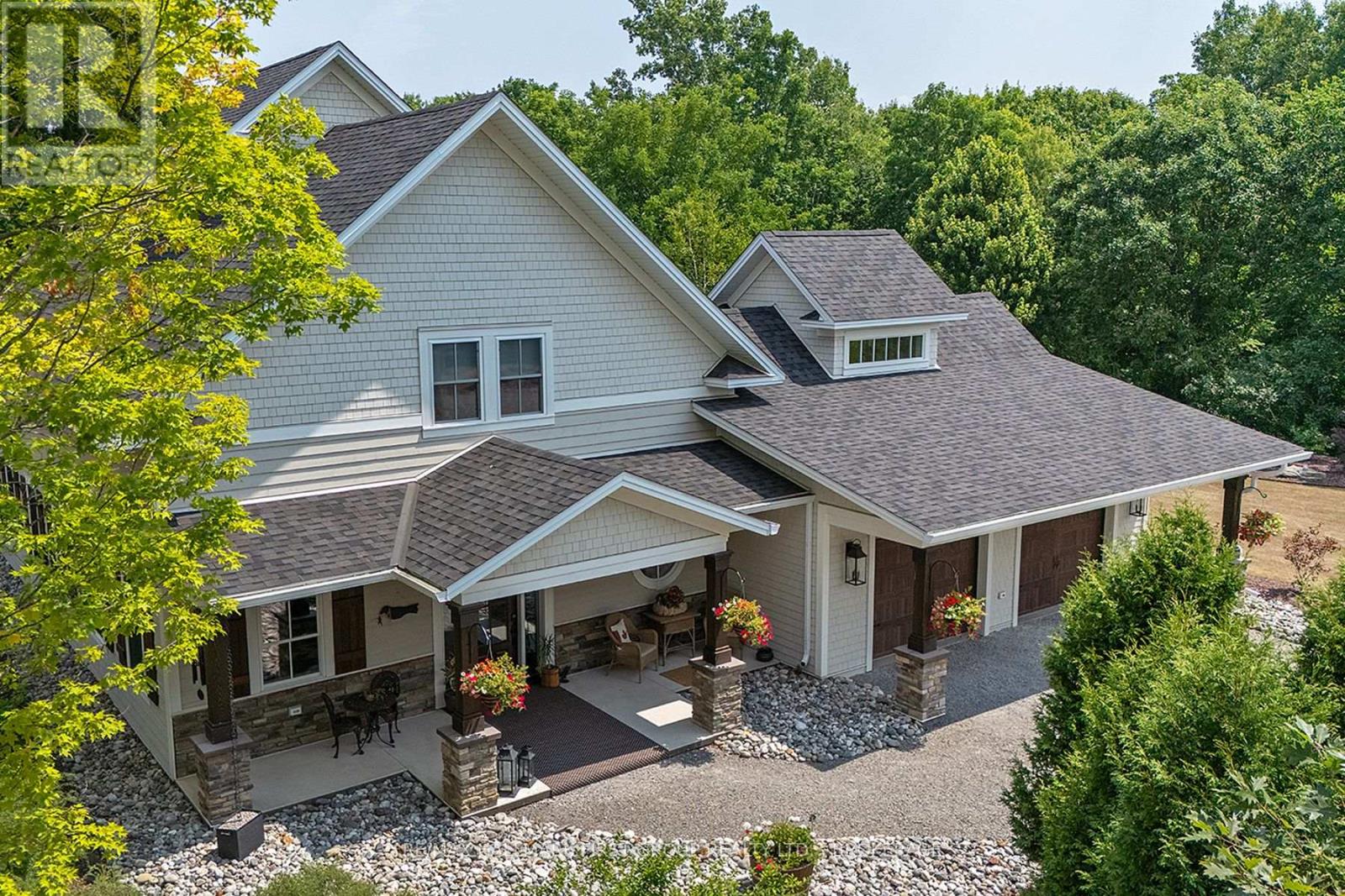 A very rare find, this exceptional custom-built home is nestled on a pristine 18-acre parcel offering private woodland trails, expansive landscaped grounds, and an unmatched standard of quality throughout. From the moment you arrive, you'll feel the sense of care and craftsmanship that defines this stunning property. Designed with both elegance and comfort in mind, the spacious layout is highlighted by a warm, welcoming main floor family room featuring a statement flame fireplace. The heart of the home is a beautiful custom kitchen complete with large granite island, custom built-ins, built-in buffet, and formal dining room perfect for everyday living or entertaining guests in style. Coffered and custom ceilings add character throughout the home, while a neutral palette offers timeless sophistication. Step outside to relax under the covered pergola, surrounded by meticulous landscaping that blends seamlessly with the natural beauty of the land. Upstairs, you'll find vaulted ceilings with skylights that flood the space with natural light. All three bedrooms are generously sized and offer walk-in closets and the primary bedroom features a spa-like ensuite with a glass-enclosed shower and soaker tub. Designed with comfort and quality in mind, this home has radiant in-floor heating on all levels with individual zone control, central air and HRV system all topped off by a built in Cummins generator in the event of power outage. Attached 2-car garage with inside entry is heated and insulated. Additional 2 car detached garage/workshop with lean-to for storing your toys or equipment is fully wired and ready to go - perfect for hobbyists and DIYers alike. If quality and craftsmanship are what you're looking for in your next home this may be the perfect opportunity for you. (id:29295)
