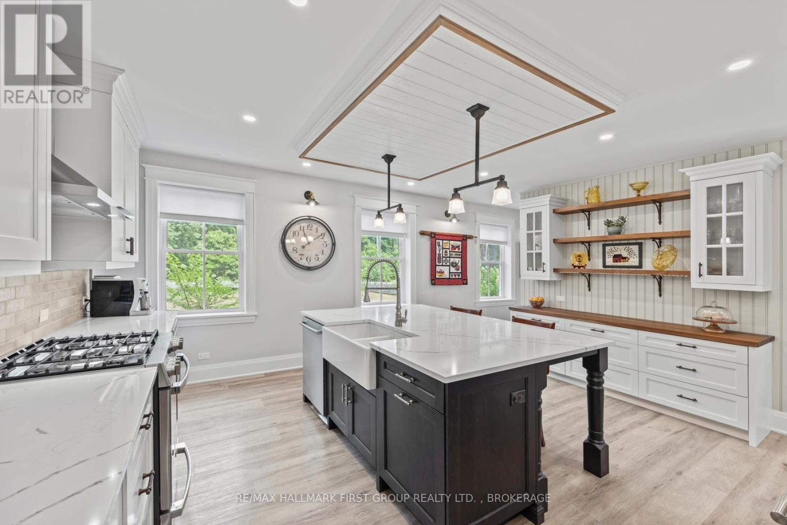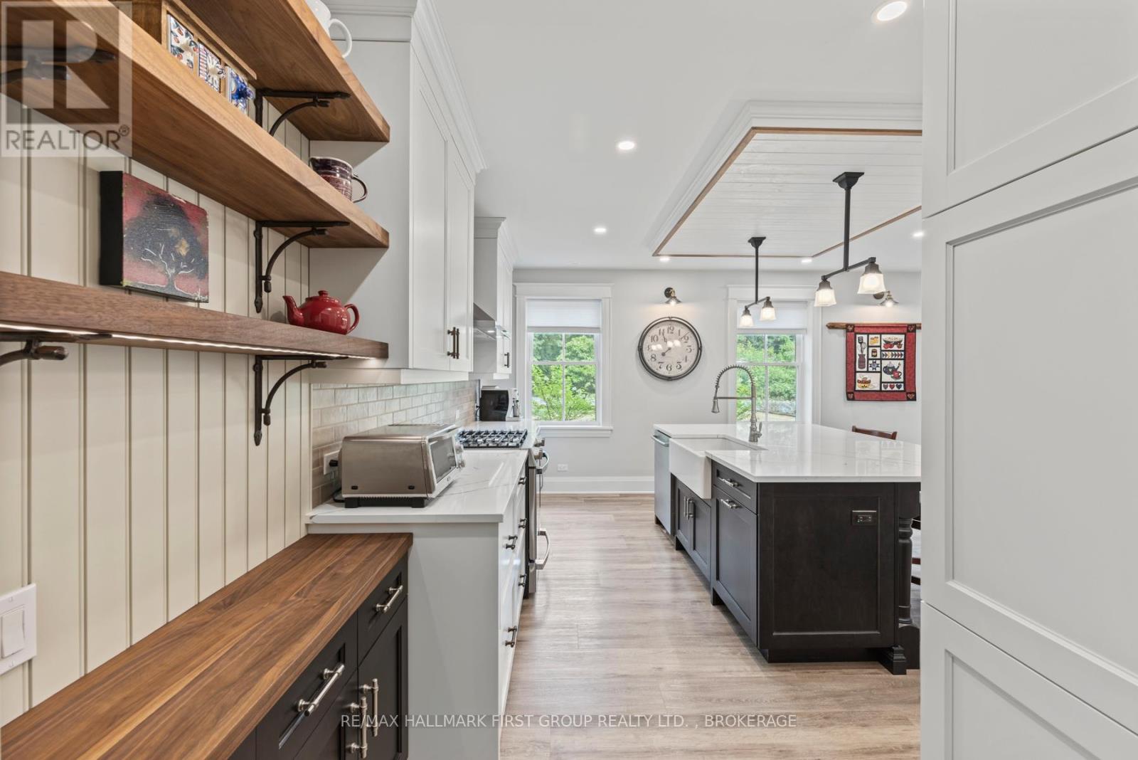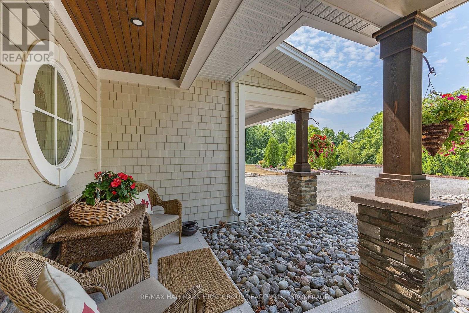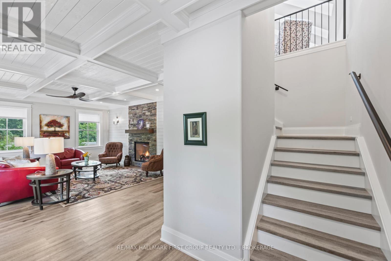 A very rare find, this exceptional custom-built home is nestled on a pristine 18-acre parcel offering private woodland trails, expansive landscaped grounds, and an unmatched standard of quality throughout. From the moment you arrive, you'll feel the sense of care and craftsmanship that defines this stunning property. Designed with both elegance and comfort in mind, the spacious layout is highlighted by a warm, welcoming main floor family room featuring a statement flame fireplace. The heart of the home is a beautiful custom kitchen complete with large granite island, custom built-ins, built-in buffet, and formal dining room perfect for everyday living or entertaining guests in style. Coffered and custom ceilings add character throughout the home, while a neutral palette offers timeless sophistication. Step outside to relax under the covered pergola, surrounded by meticulous landscaping that blends seamlessly with the natural beauty of the land. Upstairs, you'll find vaulted ceilings with skylights that flood the space with natural light. All three bedrooms are generously sized and offer walk-in closets and the primary bedroom features a spa-like ensuite with a glass-enclosed shower and soaker tub. Designed with comfort and quality in mind, this home has radiant in-floor heating on all levels with individual zone control, central air and HRV system all topped off by a built in Cummins generator in the event of power outage. Attached 2-car garage with inside entry is heated and insulated. Additional 2 car detached garage/workshop with lean-to for storing your toys or equipment is fully wired and ready to go - perfect for hobbyists and DIYers alike. If quality and craftsmanship are what you're looking for in your next home this may be the perfect opportunity for you. (id:29295)