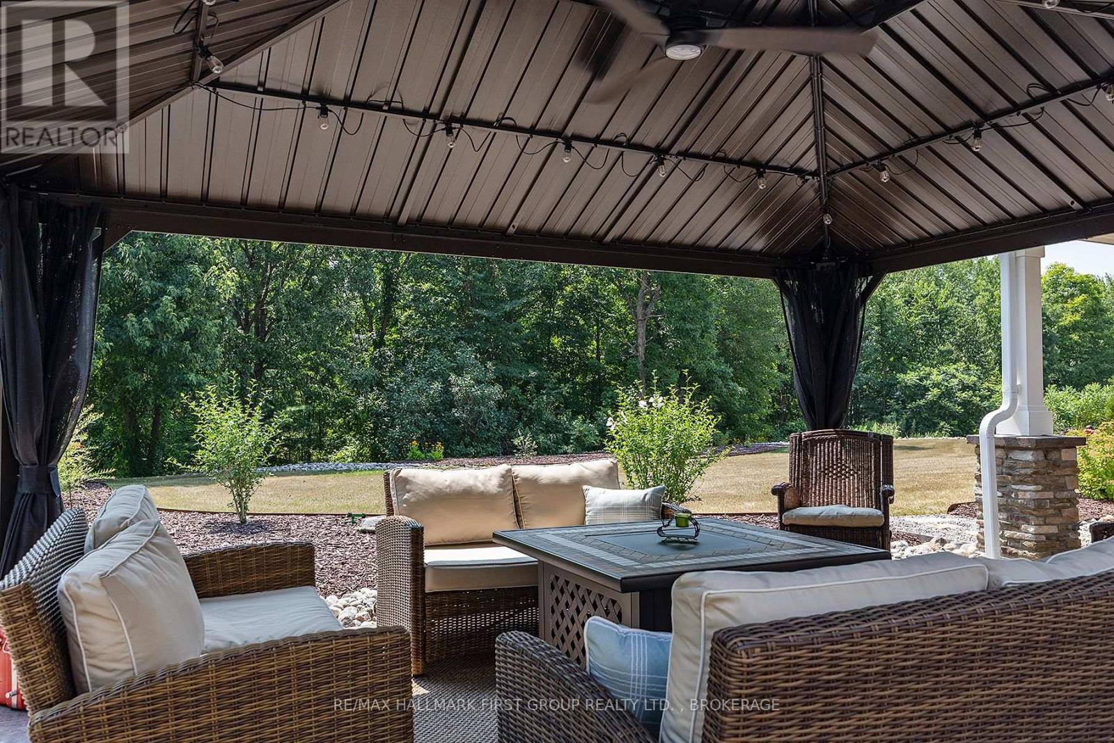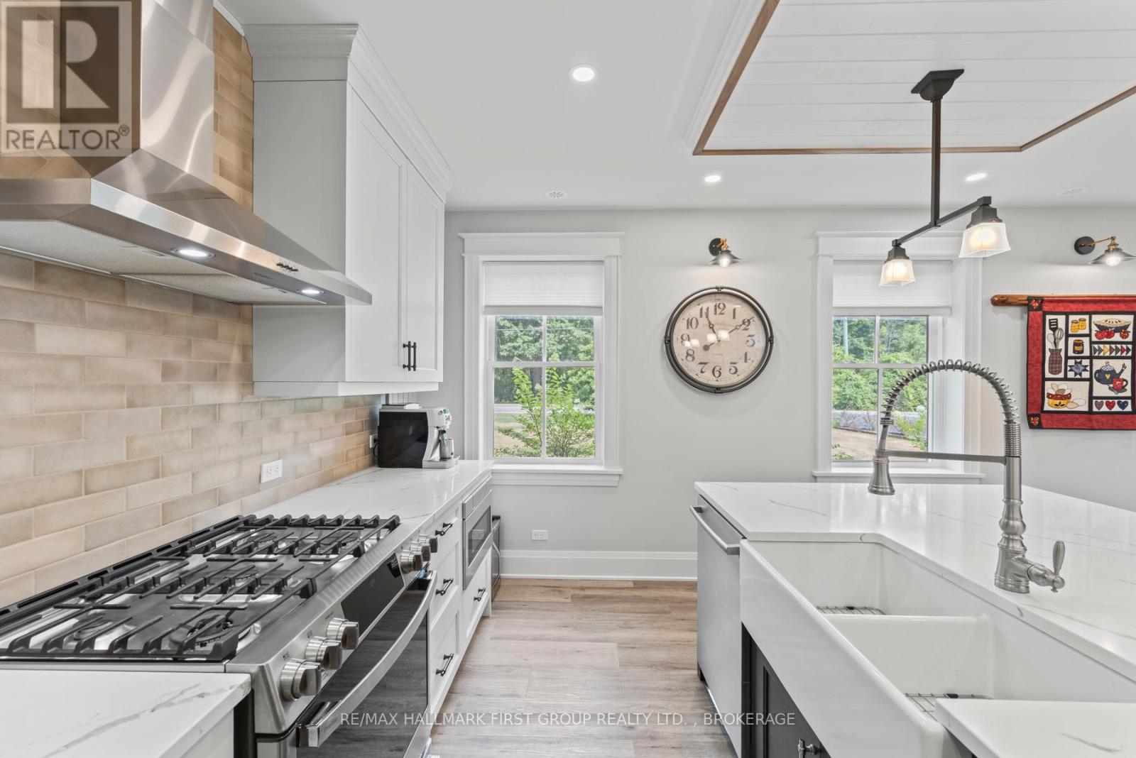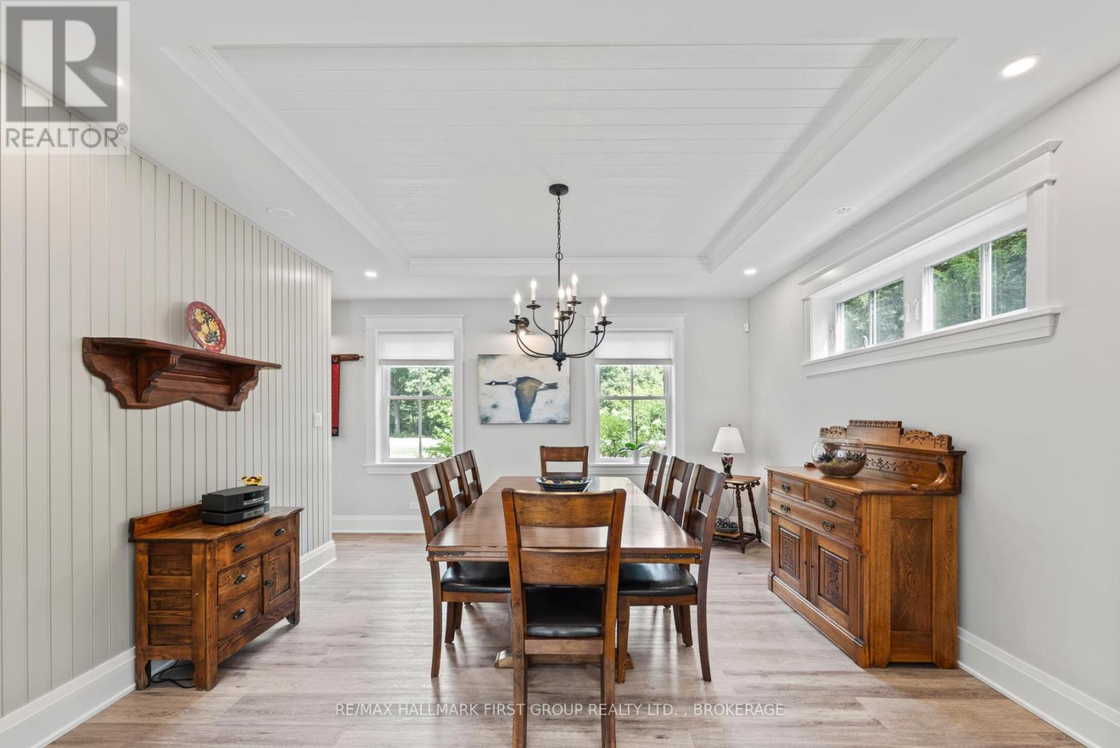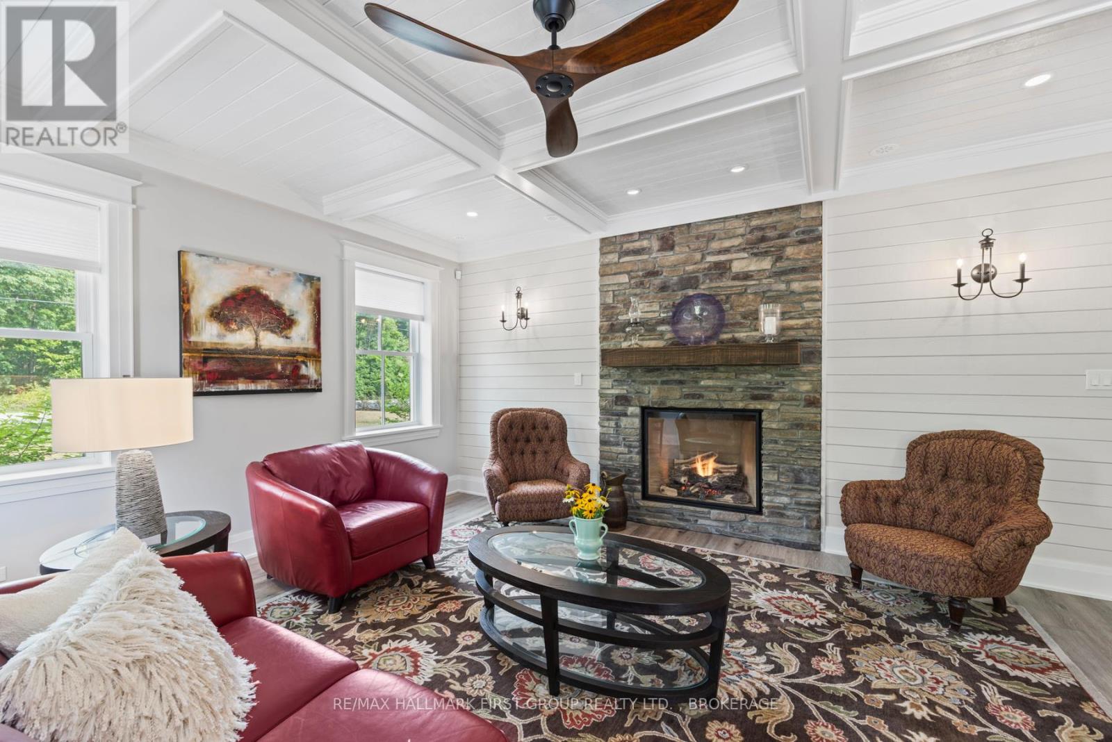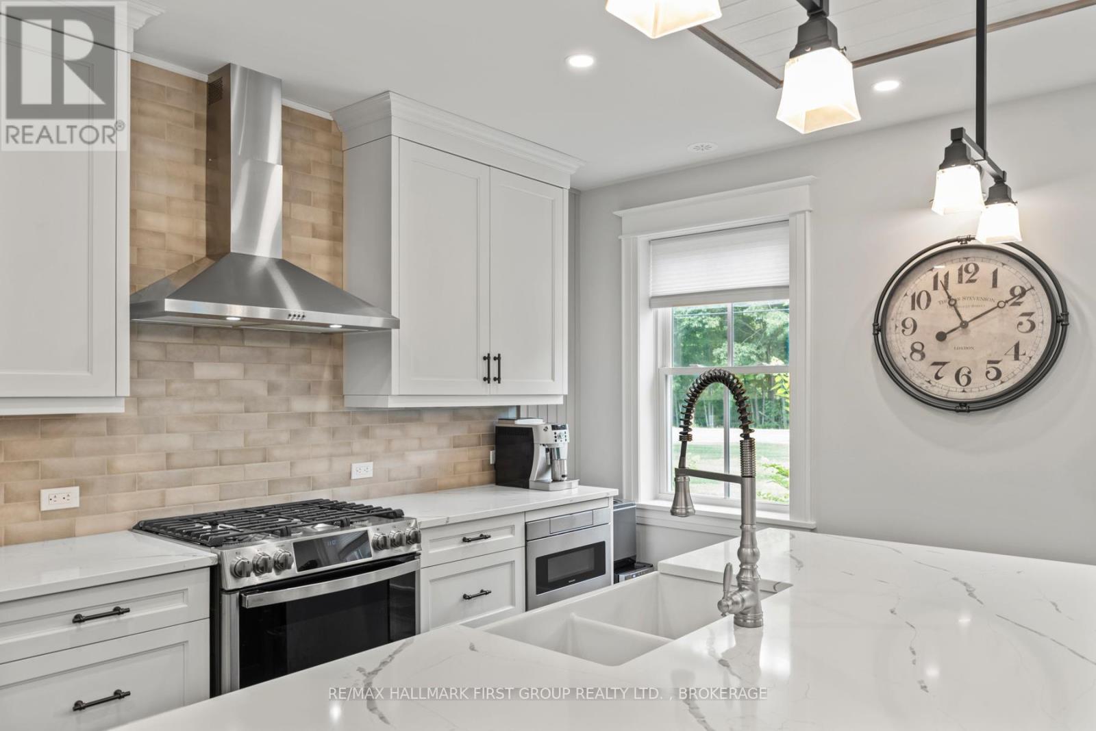 A very rare find, this exceptional custom-built home is nestled on a pristine 18-acre parcel offering private woodland trails, expansive landscaped grounds, and an unmatched standard of quality throughout. From the moment you arrive, you'll feel the sense of care and craftsmanship that defines this stunning property. Designed with both elegance and comfort in mind, the spacious layout is highlighted by a warm, welcoming main floor family room featuring a statement flame fireplace. The heart of the home is a beautiful custom kitchen complete with large granite island, custom built-ins, built-in buffet, and formal dining room perfect for everyday living or entertaining guests in style. Coffered and custom ceilings add character throughout the home, while a neutral palette offers timeless sophistication. Step outside to relax under the covered pergola, surrounded by meticulous landscaping that blends seamlessly with the natural beauty of the land. Upstairs, you'll find vaulted ceilings with skylights that flood the space with natural light. All three bedrooms are generously sized and offer walk-in closets and the primary bedroom features a spa-like ensuite with a glass-enclosed shower and soaker tub. Designed with comfort and quality in mind, this home has radiant in-floor heating on all levels with individual zone control, central air and HRV system all topped off by a built in Cummins generator in the event of power outage. Attached 2-car garage with inside entry is heated and insulated. Additional 2 car detached garage/workshop with lean-to for storing your toys or equipment is fully wired and ready to go - perfect for hobbyists and DIYers alike. If quality and craftsmanship are what you're looking for in your next home this may be the perfect opportunity for you. (id:29295)