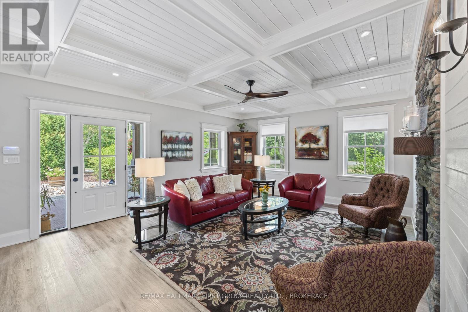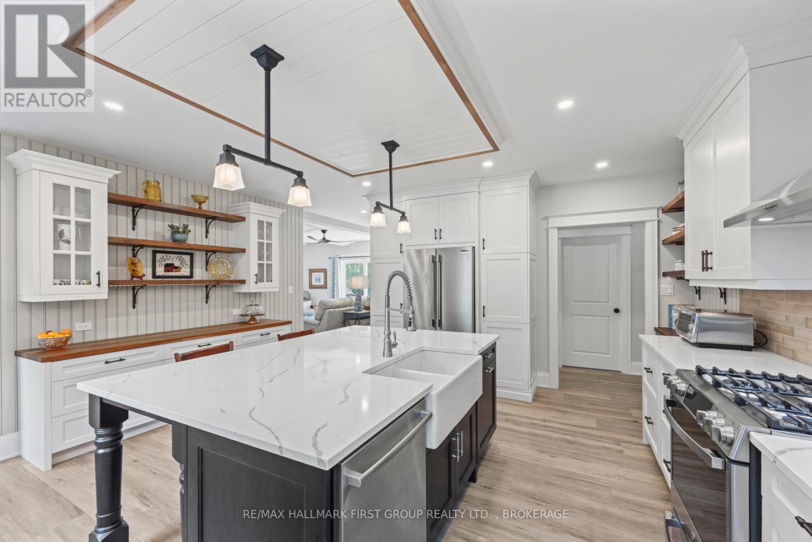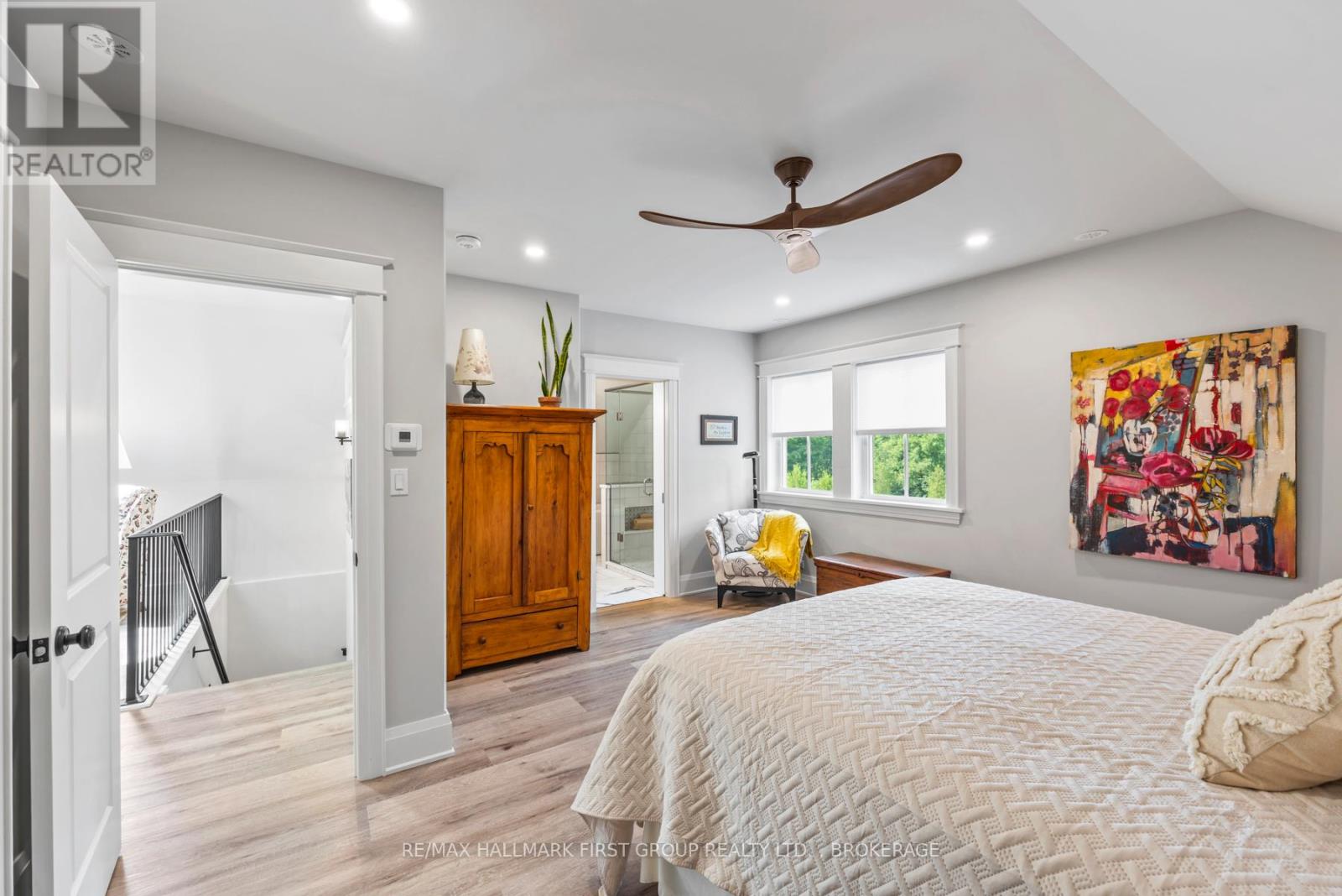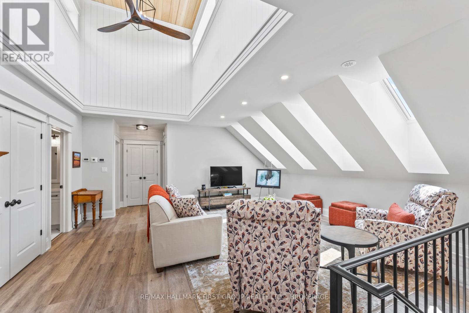 A very rare find, this exceptional custom-built home is nestled on a pristine 18-acre parcel offering private woodland trails, expansive landscaped grounds, and an unmatched standard of quality throughout. From the moment you arrive, you'll feel the sense of care and craftsmanship that defines this stunning property. Designed with both elegance and comfort in mind, the spacious layout is highlighted by a warm, welcoming main floor family room featuring a statement flame fireplace. The heart of the home is a beautiful custom kitchen complete with large granite island, custom built-ins, built-in buffet, and formal dining room perfect for everyday living or entertaining guests in style. Coffered and custom ceilings add character throughout the home, while a neutral palette offers timeless sophistication. Step outside to relax under the covered pergola, surrounded by meticulous landscaping that blends seamlessly with the natural beauty of the land. Upstairs, you'll find vaulted ceilings with skylights that flood the space with natural light. All three bedrooms are generously sized and offer walk-in closets and the primary bedroom features a spa-like ensuite with a glass-enclosed shower and soaker tub. Designed with comfort and quality in mind, this home has radiant in-floor heating on all levels with individual zone control, central air and HRV system all topped off by a built in Cummins generator in the event of power outage. Attached 2-car garage with inside entry is heated and insulated. Additional 2 car detached garage/workshop with lean-to for storing your toys or equipment is fully wired and ready to go - perfect for hobbyists and DIYers alike. If quality and craftsmanship are what you're looking for in your next home this may be the perfect opportunity for you. (id:29295)