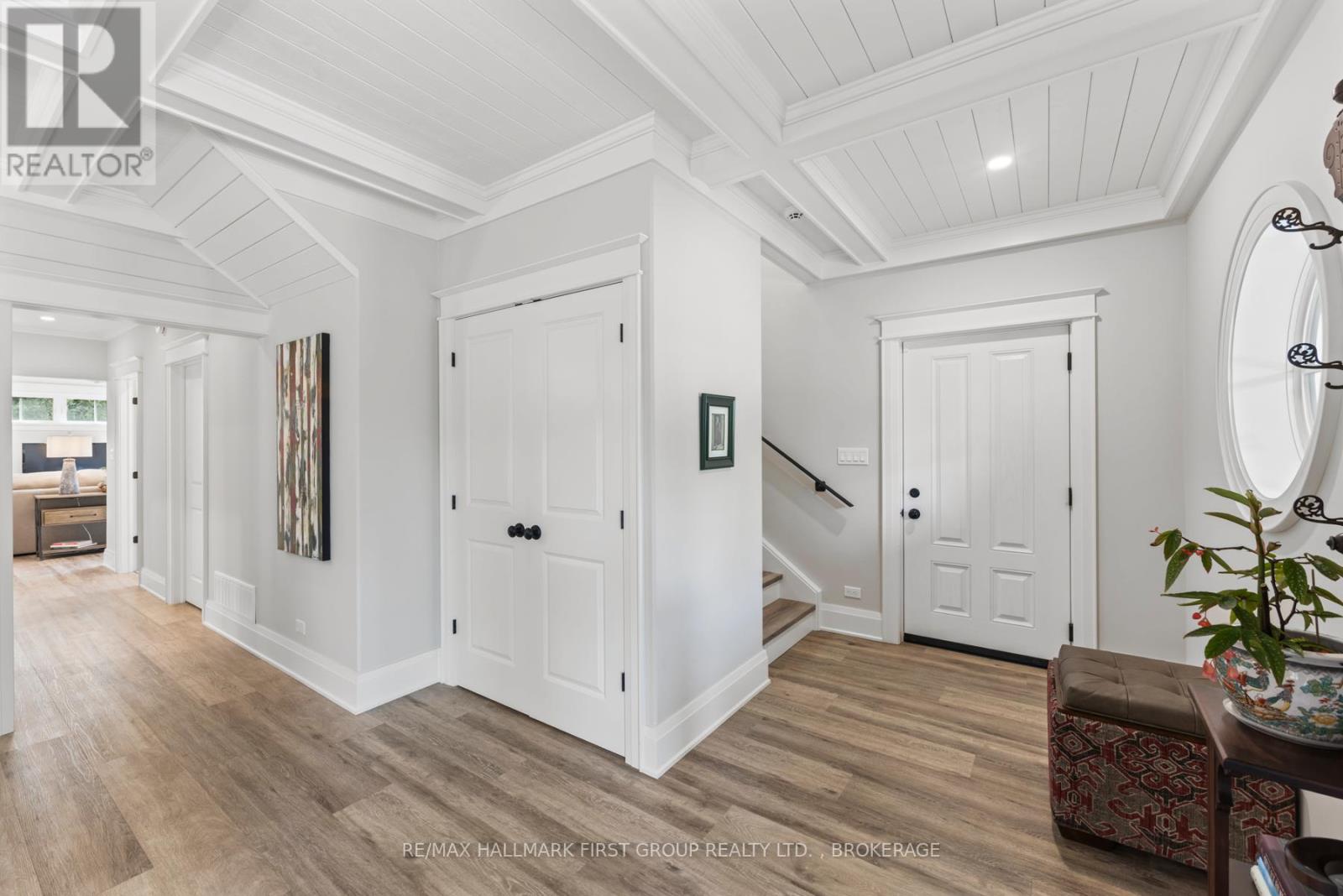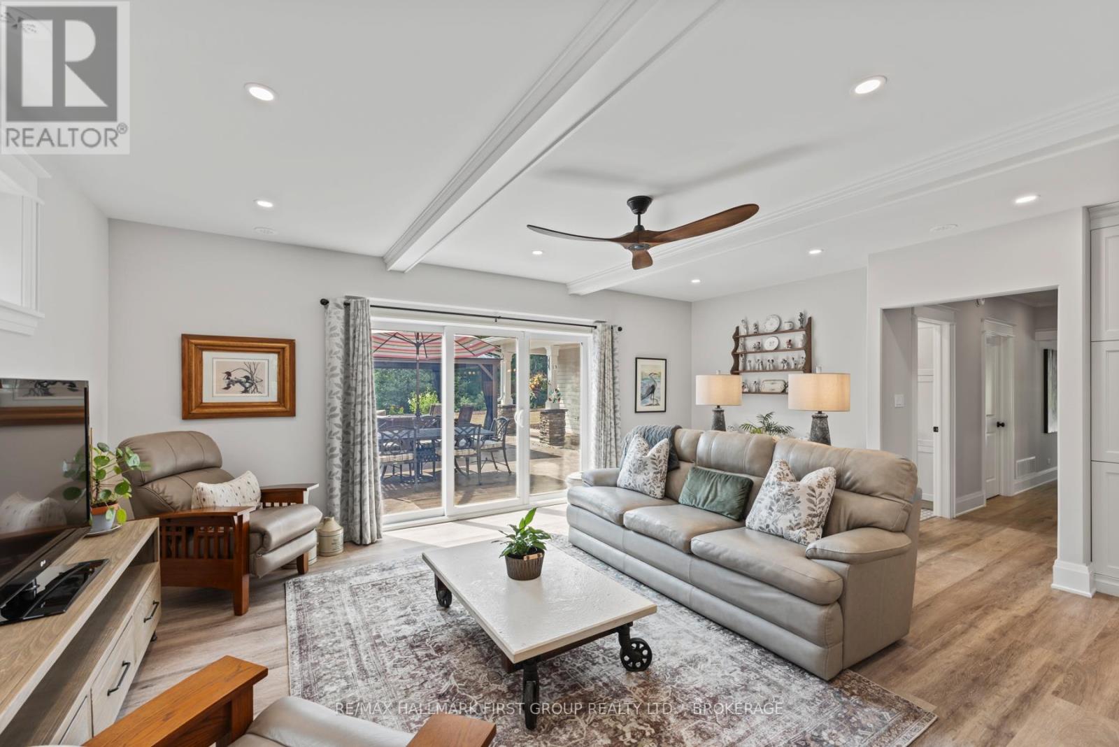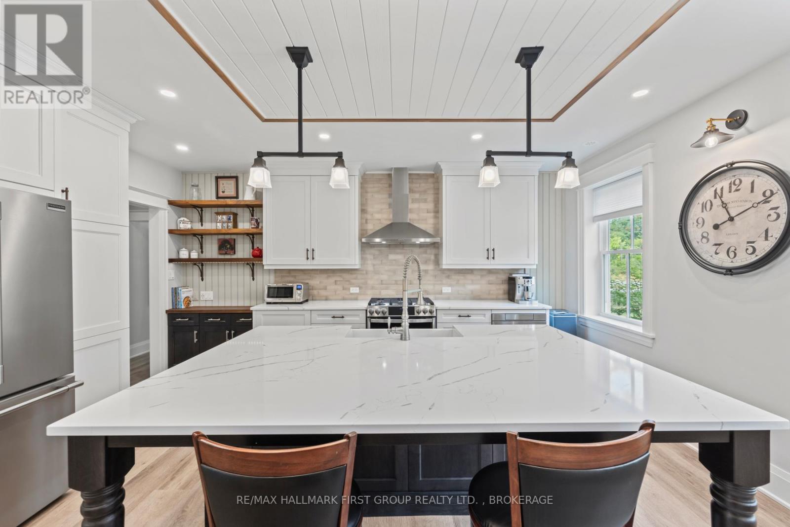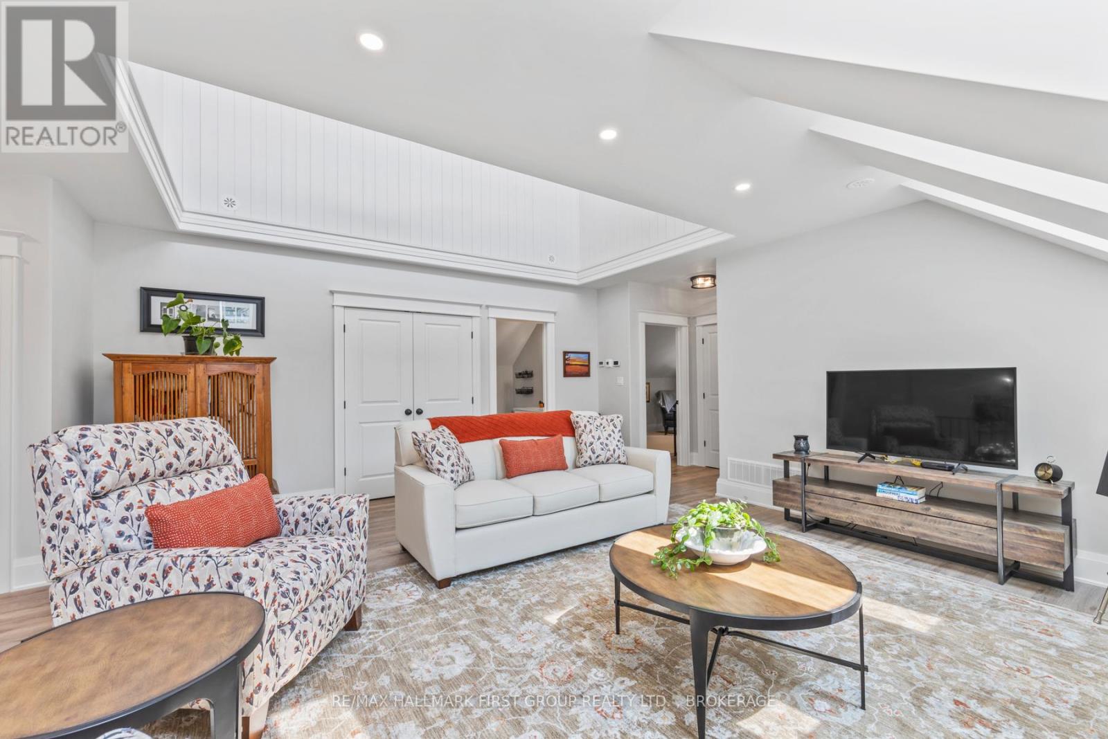 A very rare find, this exceptional custom-built home is nestled on a pristine 18-acre parcel offering private woodland trails, expansive landscaped grounds, and an unmatched standard of quality throughout. From the moment you arrive, you'll feel the sense of care and craftsmanship that defines this stunning property. Designed with both elegance and comfort in mind, the spacious layout is highlighted by a warm, welcoming main floor family room featuring a statement flame fireplace. The heart of the home is a beautiful custom kitchen complete with large granite island, custom built-ins, built-in buffet, and formal dining room perfect for everyday living or entertaining guests in style. Coffered and custom ceilings add character throughout the home, while a neutral palette offers timeless sophistication. Step outside to relax under the covered pergola, surrounded by meticulous landscaping that blends seamlessly with the natural beauty of the land. Upstairs, you'll find vaulted ceilings with skylights that flood the space with natural light. All three bedrooms are generously sized and offer walk-in closets and the primary bedroom features a spa-like ensuite with a glass-enclosed shower and soaker tub. Designed with comfort and quality in mind, this home has radiant in-floor heating on all levels with individual zone control, central air and HRV system all topped off by a built in Cummins generator in the event of power outage. Attached 2-car garage with inside entry is heated and insulated. Additional 2 car detached garage/workshop with lean-to for storing your toys or equipment is fully wired and ready to go - perfect for hobbyists and DIYers alike. If quality and craftsmanship are what you're looking for in your next home this may be the perfect opportunity for you. (id:29295)