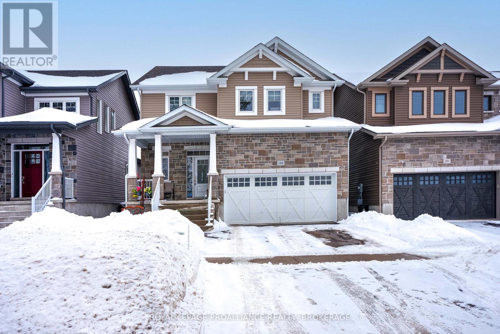 Conveniently located in Kingston's growing Trails Edge subdivision, this nearly new Caraco Parkridge model offers 2,600 sq/ft, 4 bedrooms, 3 baths and a family friendly open concept design. Bright and spacious with an impressive list of features like hardwood and ceramic tile flooring, 9 ft ceilings, C/Air, family room fireplace and more. A formal living room welcomes family and friends upon entry and flows beautifully into the open family room, dining area, and kitchen, creating a "great room style" family space. Preparing meals is easy and fun in the upgraded kitchen, which features a center island, quartz countertops, and huge walk-in pantry. Main floor laundry, bathroom and access to the double garage complete the main floor. The upper level offers 4 spacious bedrooms and 2 full baths (with quartz countertops), including a large primary suite with a walk-in closet and a luxurious ensuite bath featuring ceramic tile floors, a soaker tub, and a separate tiled shower. The fully insulated lower level is ready for your finishing and houses the high-efficiency furnace, HRV, on-demand hot water and a bathroom rough-in. Benefits of this "nearly new" property include landscaping, paved driveway, stamped concrete walk-way, fencing, deck with a hardtop gazebo and underneath covered storage, window blinds/dressings, garage door equipment, and more. Watch the children play in the park across the street from the spacious covered front deck. On a school and public bus routes and so easy to the 401 and downtown, this home offers and spacious and features you deserve. Two remaining years on the Tarion New Home Warranty. Welcome Home! (id:29295)