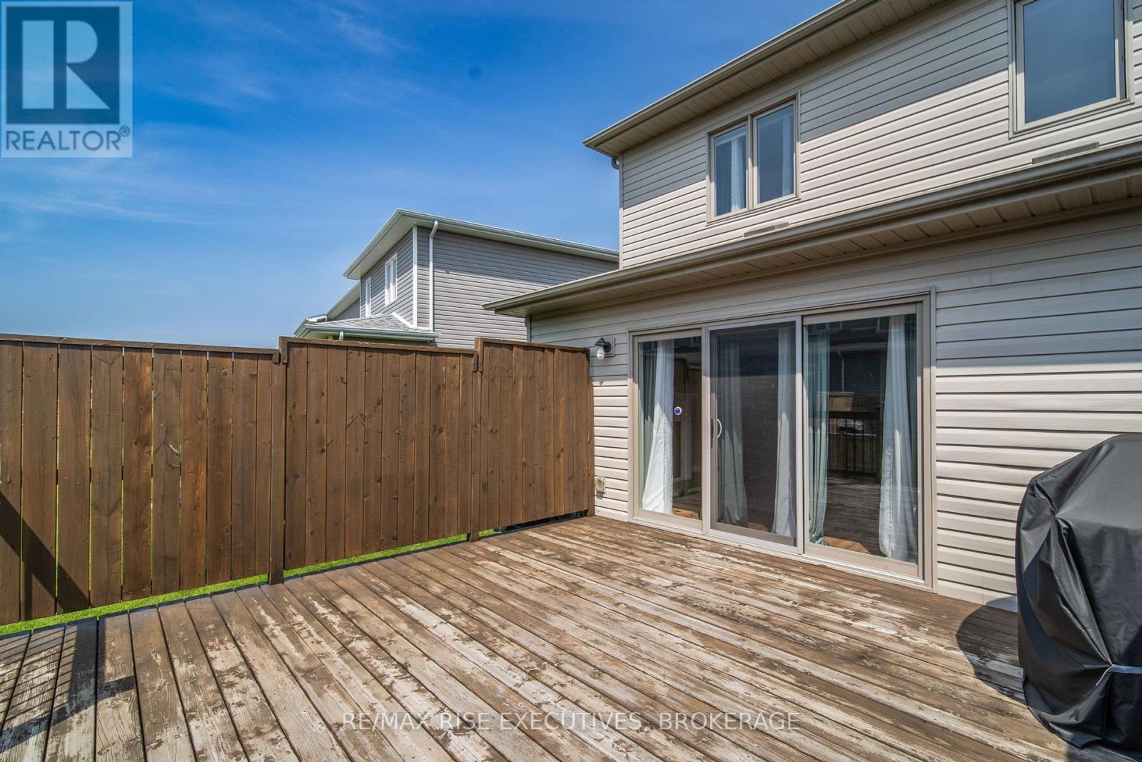 Bright, Stylish & Move-In Ready in Woodhaven! Step into this beautifully designed end-unit townhome, where thoughtful details and contemporary finishes shine throughout. At the heart of the home is an open-concept main floor connecting the spacious living and dining areas to a sleek, chef-friendly kitchen. Designed for both style and functionality, the kitchen features quartz countertops, a gas range, a striking tile backsplash, a spacious pantry and a central island ideal for casual dining and entertaining. Triple-panel sliding doors open onto a generous deck, creating an effortless indoor-outdoor lifestyle. The backyard is complete with privacy screens and a gas line for your BBQ - perfect to enjoy this summer. Upstairs, the primary suite offers a large walk-in closet and a beautifully appointed ensuite bathroom with a soaker tub and shower. Two additional bedrooms provide flexible space for family, guests, or a home office, complemented by a second full bathroom. The lower level basement is unfinished but ready for your designer touch and includes a three-piece rough-in bathroom. Further highlights include main-floor laundry with designer tile, a cozy gas fireplace in the living room, updated paint tones throughout, and an attached garage with convenient inside entry. Located in the sought-after Woodhaven community, this home offers 1,763sq/ft of well-planned living space just minutes from parks, schools, shopping, and amenities. Don't miss your chance to own this stylish and turn-key home - schedule your private showing today! (id:29295)