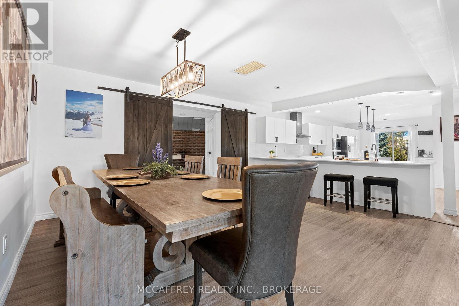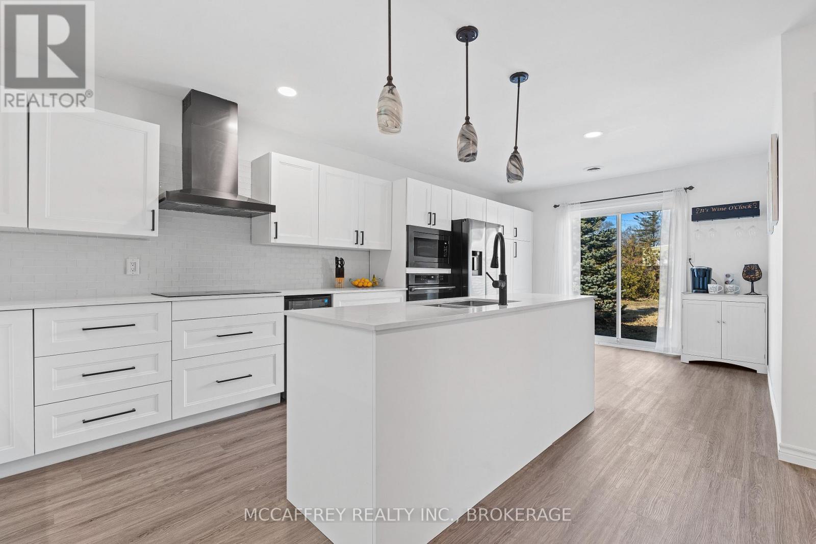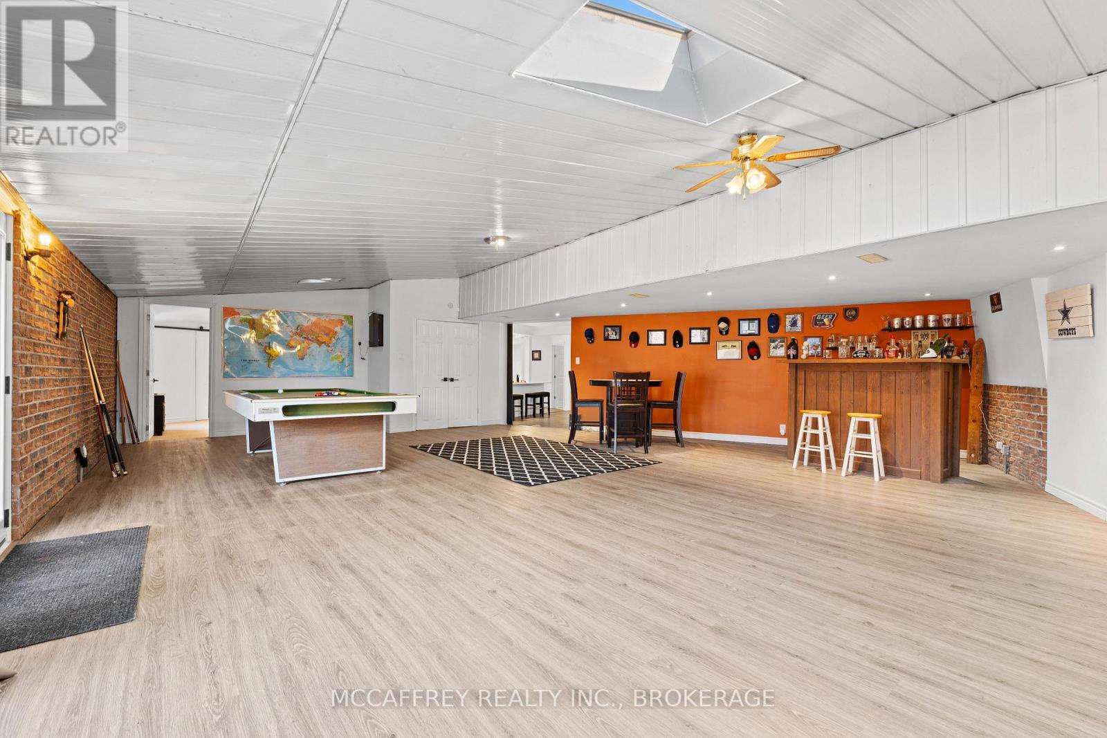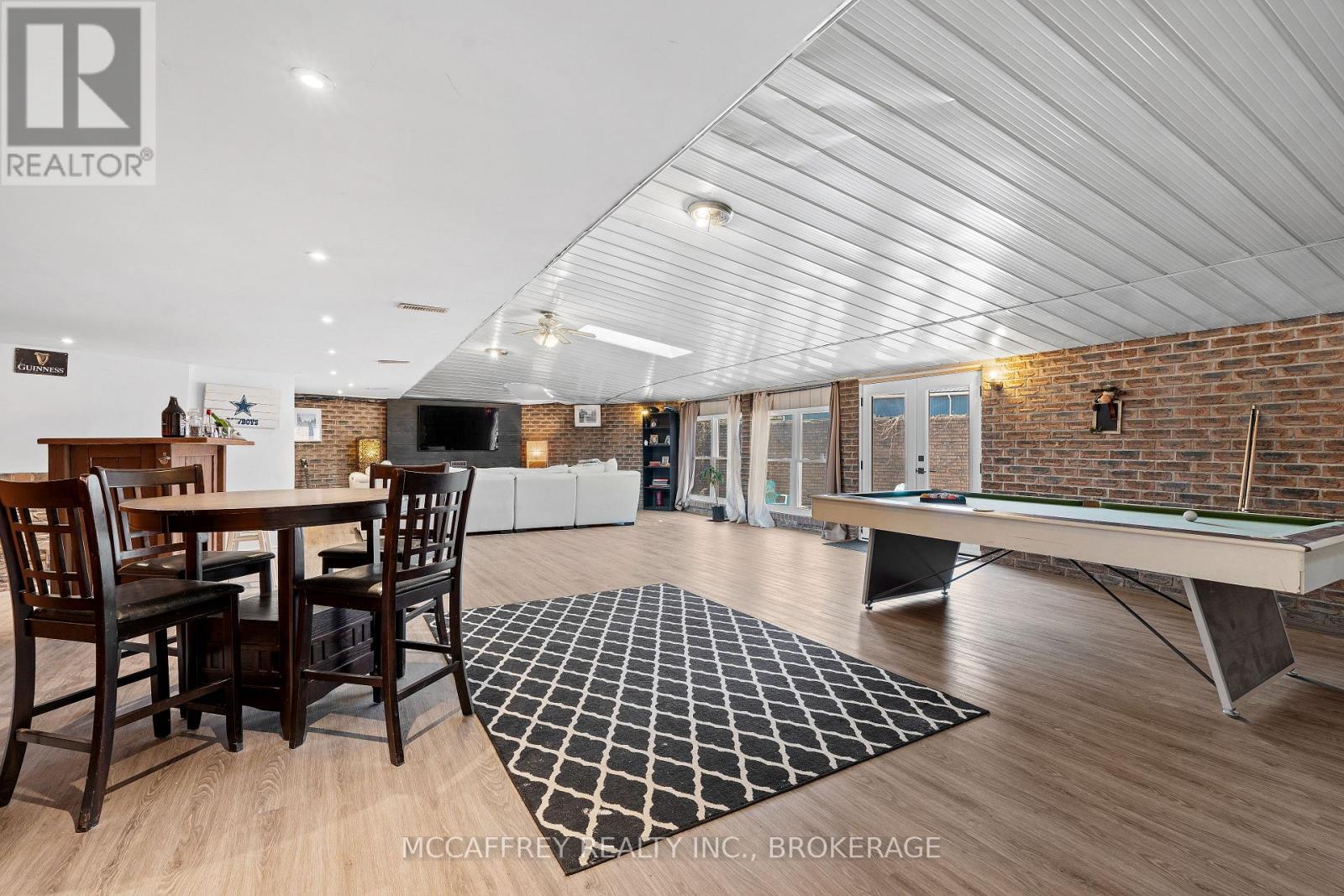 This beautifully updated 4-bedroom, 3-bathroom gem blends modern elegance with homey comfort in a serene neighborhood. Designed with luxury and functionality in mind, this 1.5-story residence is a true find. The spacious kitchen features exquisite quartz countertops and sleek black stainless-steel appliances. Enjoy slow-close drawers with hidden utensil compartments and a built-in garbage/recycling drawer, making it a chefs paradise. Luxury vinyl floors flow through the main living areas, complemented by all-new trim, while updated windows and doors, on the main level, provide abundant natural light. Entertain effortlessly in the large family room with a stylish bar area, perfect for gatherings. Two of the bedrooms boast plush new carpet, offering comfort and warmth. The primary bedroom is a retreat, featuring a lavish 5-piece ensuite with a deep soaker tub, dual waterfall shower heads with handheld attachment, and anti-fog backlit mirrors. Adjacent is a spacious his and hers walk-in closet with motion lighting. The additional 3-piece bathroom offers new flooring and a sleek shower stall for guests convenience. The backyard is a private haven designed for relaxation and entertainment. A beautiful brick privacy wall and pergola create the ideal setting for outdoor dining, while 15 newly planted cedar trees enhance the landscape, providing beauty and privacy.This property combines contemporary upgrades with timeless charm. Don't miss the chance to call this stunning house your home! Updates: Kitchen 2021-2025, Pergola 2022, New carpet in two bedrooms 2025, Main floor windows/doors 2021. (id:29295)
