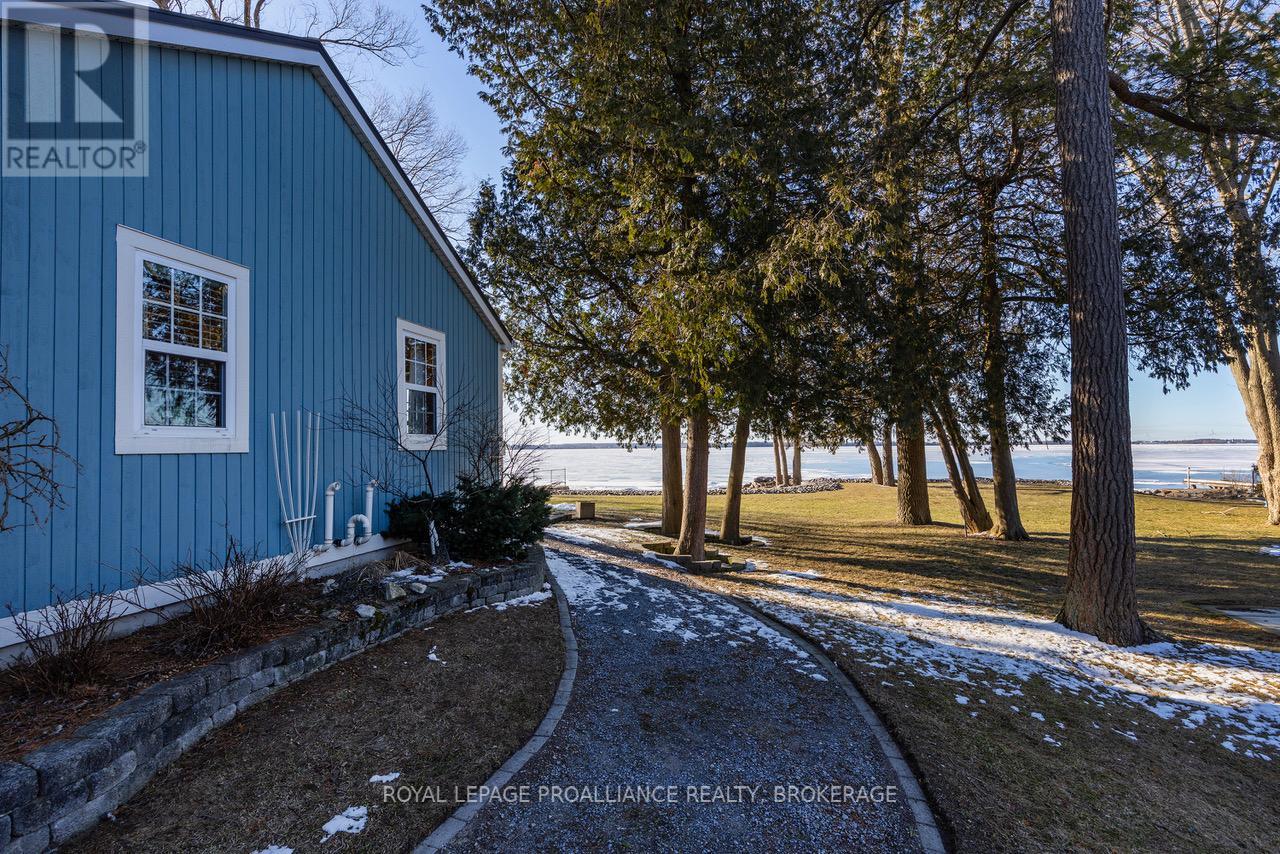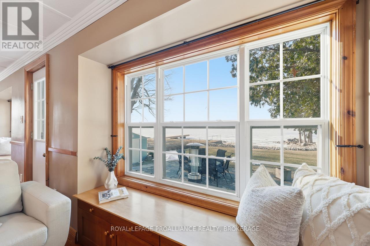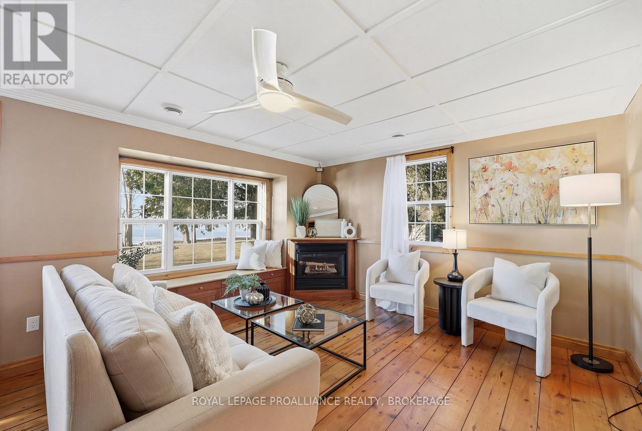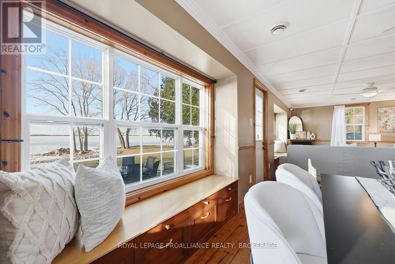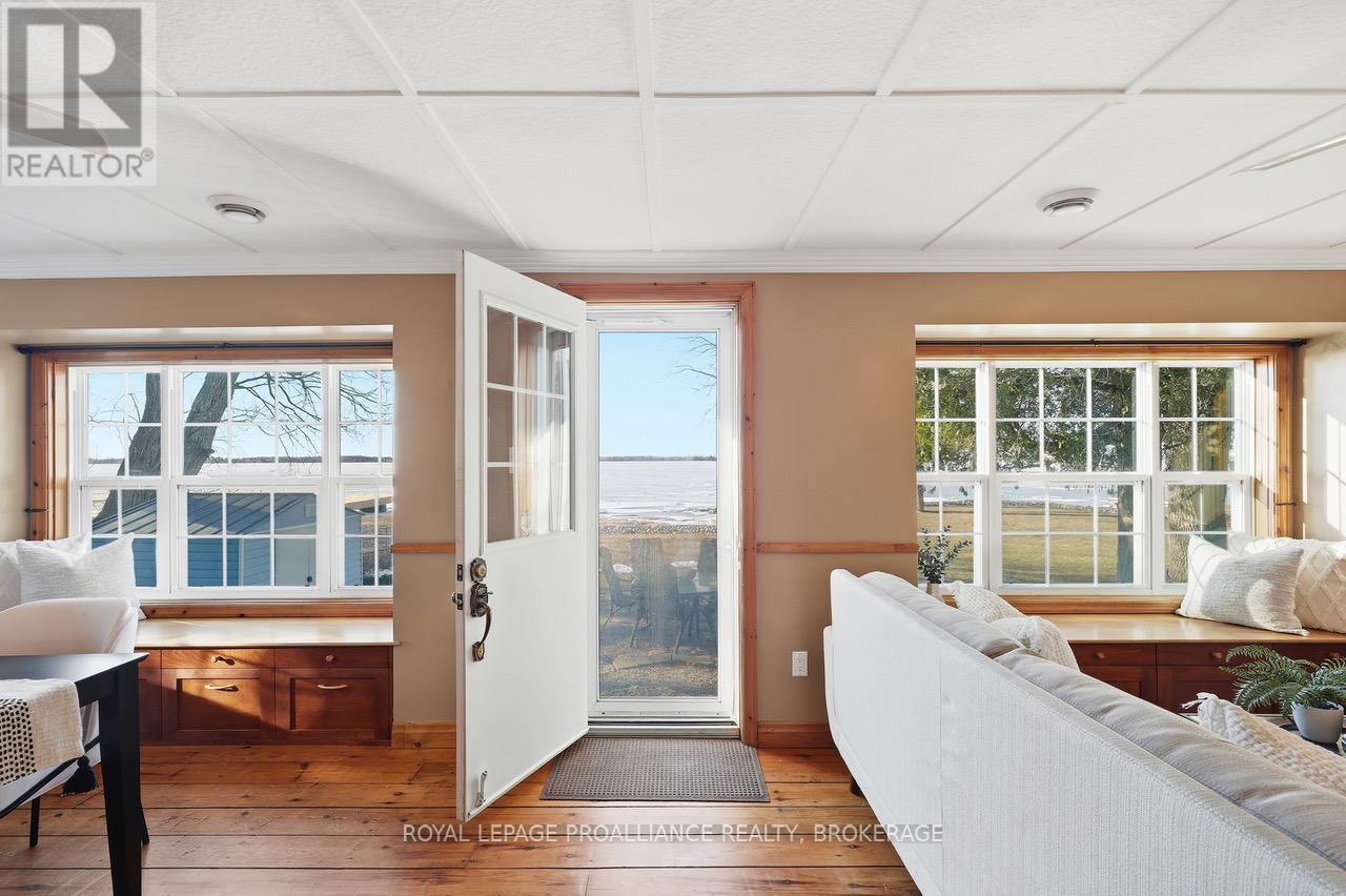 Lake Ontario waterfront, on a quiet street just minutes from the city, surrounded by protected forest and move-in ready. At $825,000, it's the kind of property that makes you stop and wonder how it's even possible. This absolutely charming 2-bedroom, 1-bath home has been meticulously maintained and thoughtfully updated over decades of proud ownership. All of the important work is done: metal roof, updated Ecoflow septic system (sized for a much larger home). energy improvements including windows and significant insulation upgrades. Move-in ready doesn't quite do it justice. Beyond care and maintenance, what sets this home apart is the intention behind it. Inspired by Christopher Alexander's A Pattern Language, the design focuses on natural light, comfort and everyday livability - with windows on multiple sides of each room, cozy window seats and clever storage throughout. Originally built in 1948, the home retains character where it matters. The red pine floors in particular are a standout - warm, natural and timeless. Outside, the setting is just as compelling. Expansive views across Lake Ontario toward Amherst Island, mature trees, perennial gardens and a peaceful, welcoming atmosphere. Directly across the road, protected woodland offers trails, wildflowers and a natural landscape that will remain untouched forever. It's a place to slow down, unwind and feel connected - to the water, nature and to home. Ideal for down-sizers, couples or anyone seeking a waterfront getaway. With the oversized septic system there's also flexibility for significant expansion or to reimagine the home over time. It's a rare opportunity to step into lake Ontario waterfront living at a price you can afford. (id:29295)