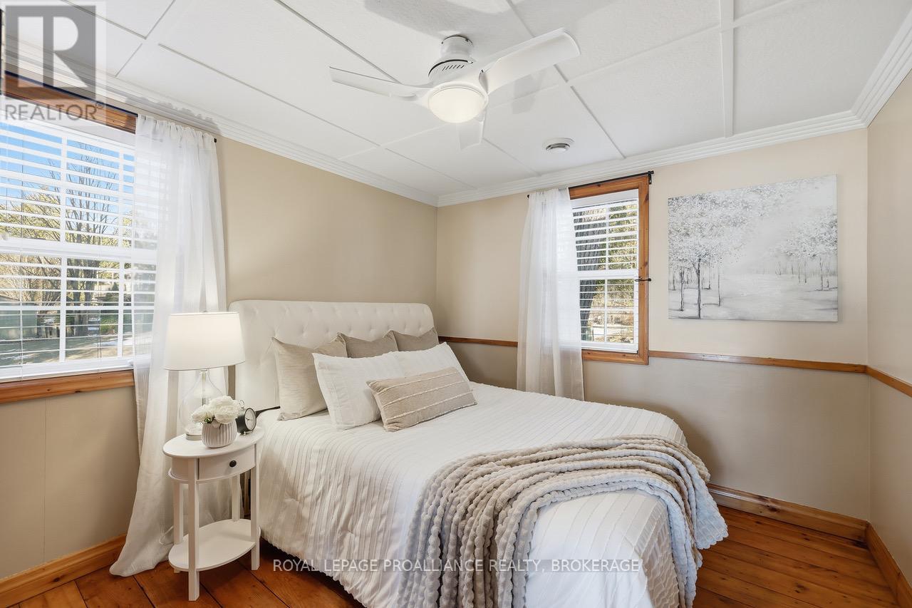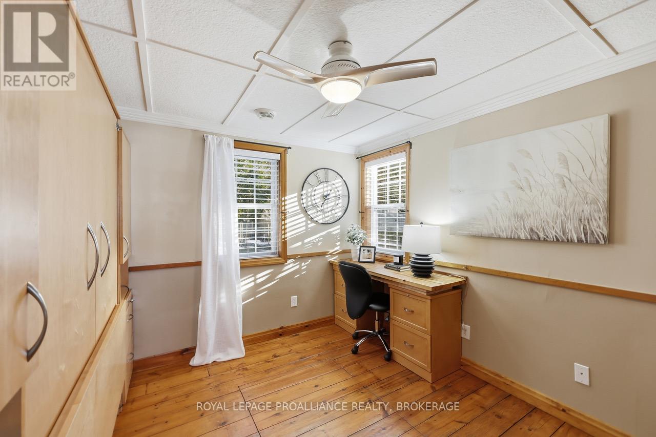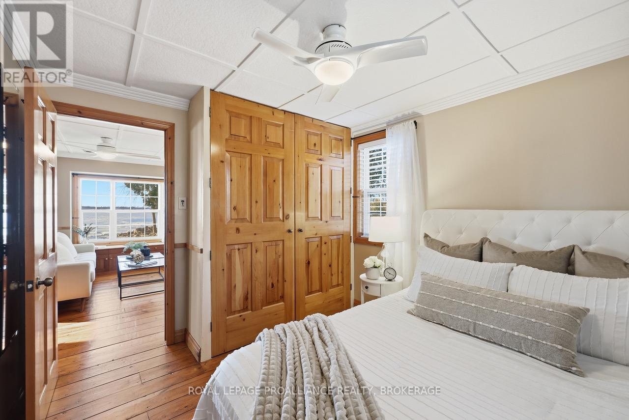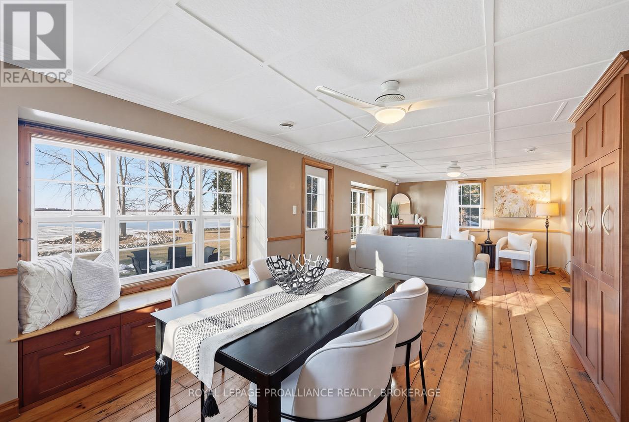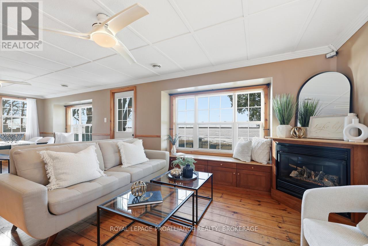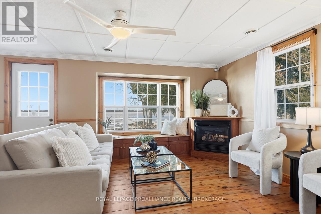 Lake Ontario waterfront, on a quiet street just minutes from the city, surrounded by protected forest and move-in ready. At $825,000, it's the kind of property that makes you stop and wonder how it's even possible. This absolutely charming 2-bedroom, 1-bath home has been meticulously maintained and thoughtfully updated over decades of proud ownership. All of the important work is done: metal roof, updated Ecoflow septic system (sized for a much larger home). energy improvements including windows and significant insulation upgrades. Move-in ready doesn't quite do it justice. Beyond care and maintenance, what sets this home apart is the intention behind it. Inspired by Christopher Alexander's A Pattern Language, the design focuses on natural light, comfort and everyday livability - with windows on multiple sides of each room, cozy window seats and clever storage throughout. Originally built in 1948, the home retains character where it matters. The red pine floors in particular are a standout - warm, natural and timeless. Outside, the setting is just as compelling. Expansive views across Lake Ontario toward Amherst Island, mature trees, perennial gardens and a peaceful, welcoming atmosphere. Directly across the road, protected woodland offers trails, wildflowers and a natural landscape that will remain untouched forever. It's a place to slow down, unwind and feel connected - to the water, nature and to home. Ideal for down-sizers, couples or anyone seeking a waterfront getaway. With the oversized septic system there's also flexibility for significant expansion or to reimagine the home over time. It's a rare opportunity to step into lake Ontario waterfront living at a price you can afford. (id:29295)