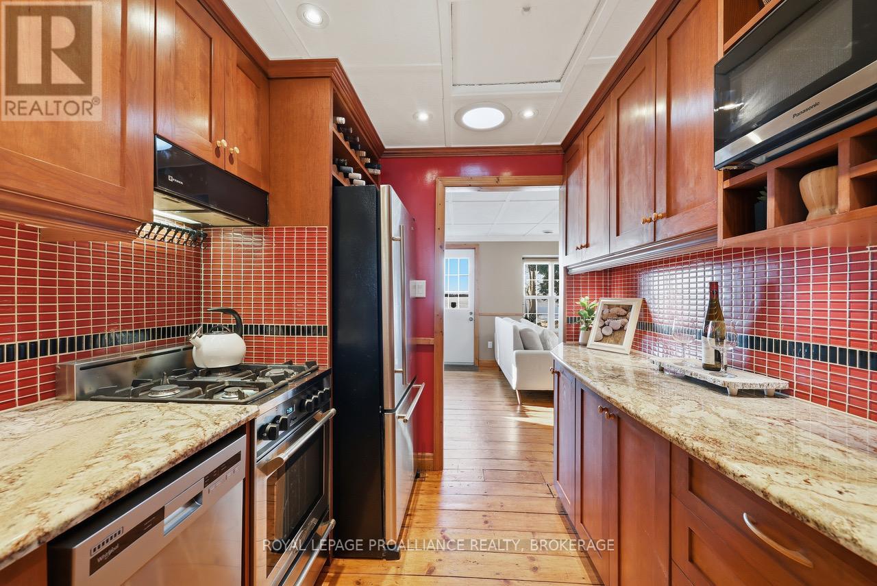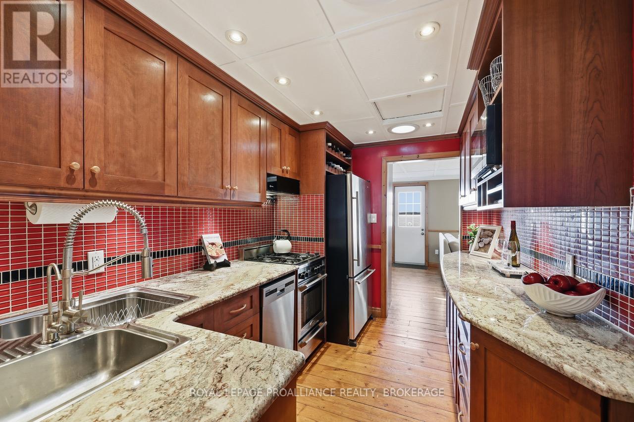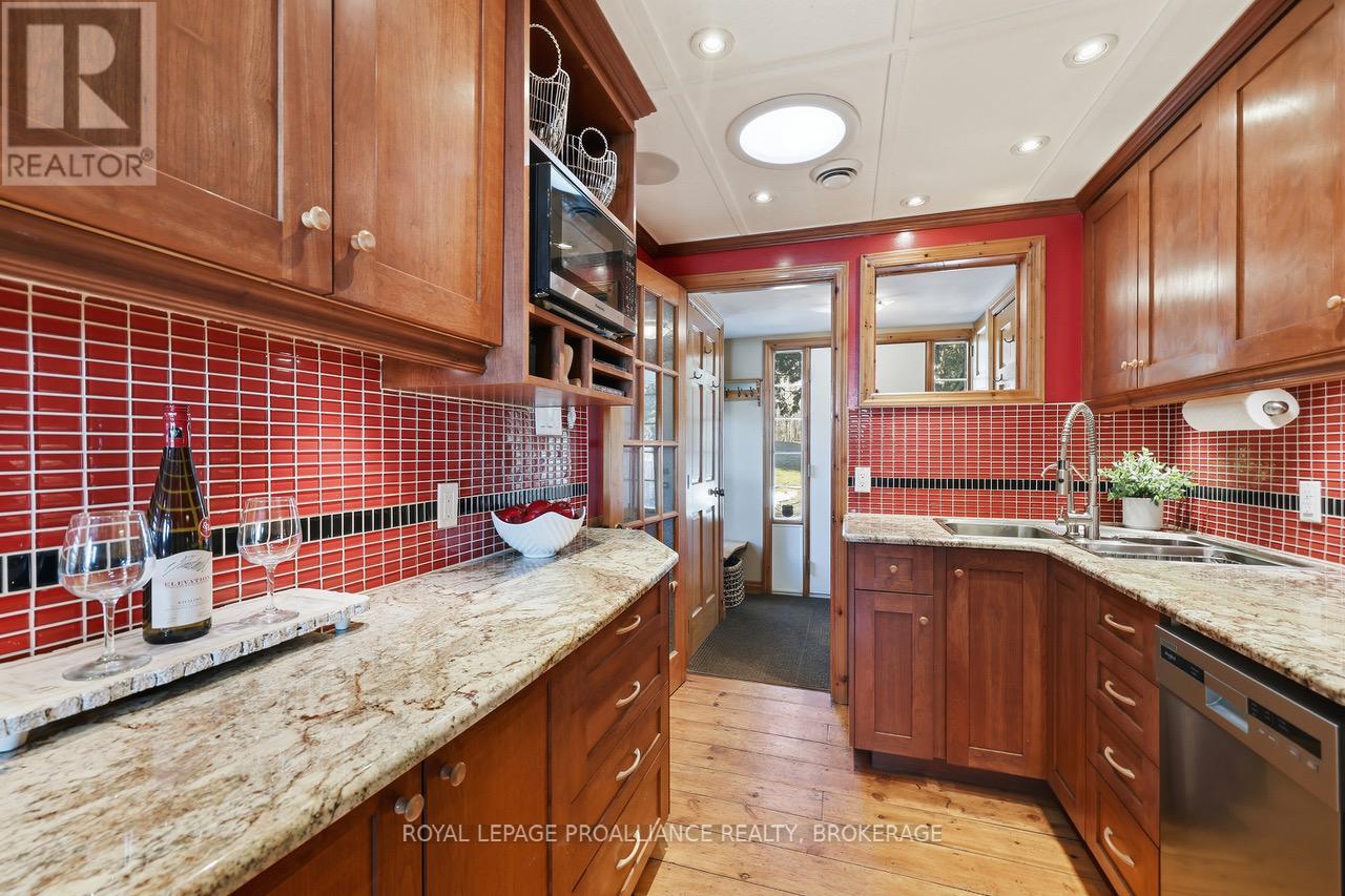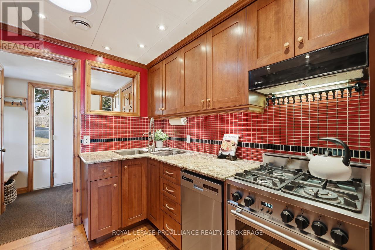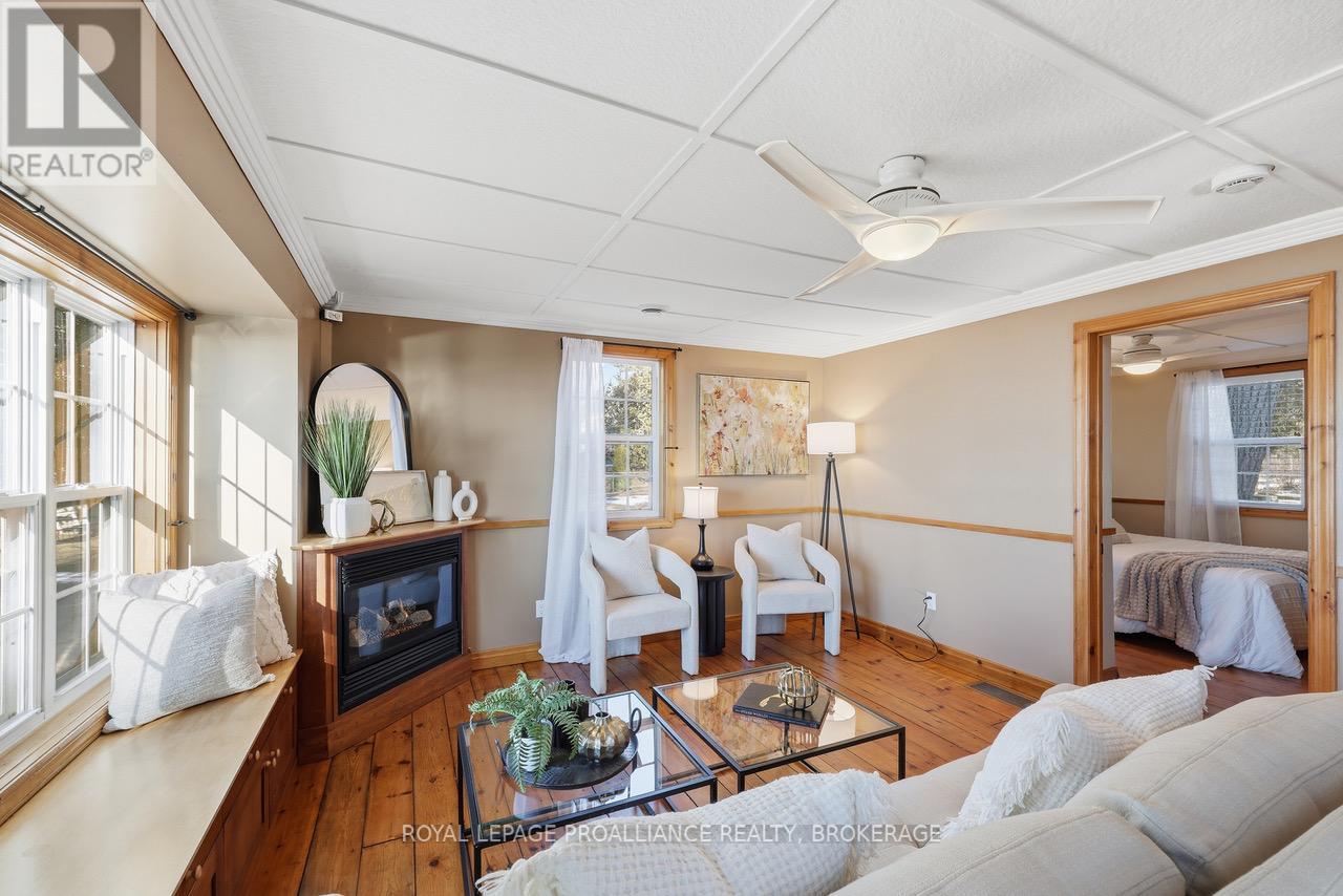Lake Ontario waterfront, on a quiet street just minutes from the city, surrounded by protected forest and move-in ready. At $825,000, it's the kind of property that makes you stop and wonder how it's even possible. This absolutely charming 2-bedroom, 1-bath home has been meticulously maintained and thoughtfully updated over decades of proud ownership. All of the important work is done: metal roof, updated Ecoflow septic system (sized for a much larger home). energy improvements including windows and significant insulation upgrades. Move-in ready doesn't quite do it justice. Beyond care and maintenance, what sets this home apart is the intention behind it. Inspired by Christopher Alexander's A Pattern Language, the design focuses on natural light, comfort and everyday livability - with windows on multiple sides of each room, cozy window seats and clever storage throughout. Originally built in 1948, the home retains character where it matters. The red pine floors in particular are a standout - warm, natural and timeless. Outside, the setting is just as compelling. Expansive views across Lake Ontario toward Amherst Island, mature trees, perennial gardens and a peaceful, welcoming atmosphere. Directly across the road, protected woodland offers trails, wildflowers and a natural landscape that will remain untouched forever. It's a place to slow down, unwind and feel connected - to the water, nature and to home. Ideal for down-sizers, couples or anyone seeking a waterfront getaway. With the oversized septic system there's also flexibility for significant expansion or to reimagine the home over time. It's a rare opportunity to step into lake Ontario waterfront living at a price you can afford. (id:29295)