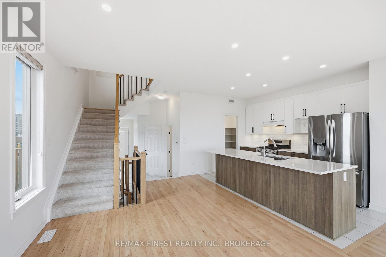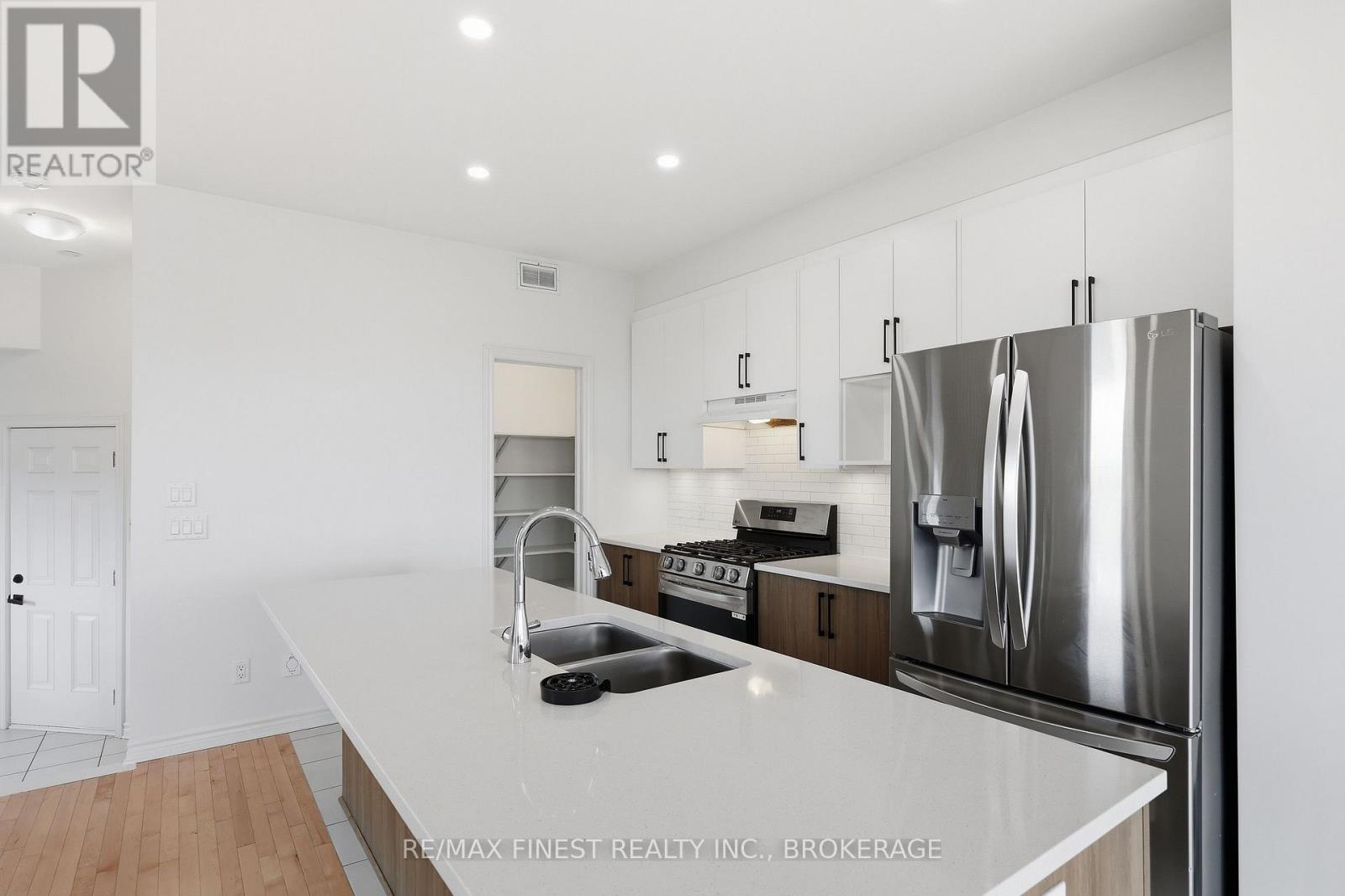 This fantastic end unit townhouse is a beautiful home to settle in and enjoy all of the features it has to offer! Impeccably built, with over 2155 sq ft of finished living space on three levels, the neutral and calming design is the perfect place to call your own! The main floor features an open concept design with gas stove, quartz counter tops, tile backsplash, large island, pantry, beautiful kitchen cabinets. There are pot lights throughout the main floor and a cozy gas fireplace in the living room for you to enjoy. On the upper level, the primary bedroom is very spacious and has an amazing walk-in closet with a spa-like ensuite! Soaker tub, custom tiled glass shower & large vanity perfect for storage, finishes it off! The two additional bedrooms also offer fantastic space and have good sized closets for storage. In the lower level you will find a finished rec room that is perfect for movie night, kids play area, office or additional storage space. There is a bonus rough-in for a bathroom as well. This home is also situated on a premium lot that is pie-shaped and has so much space and potential for your summer enjoyment! This property is worth your time to come and take a peek! (id:29295)
