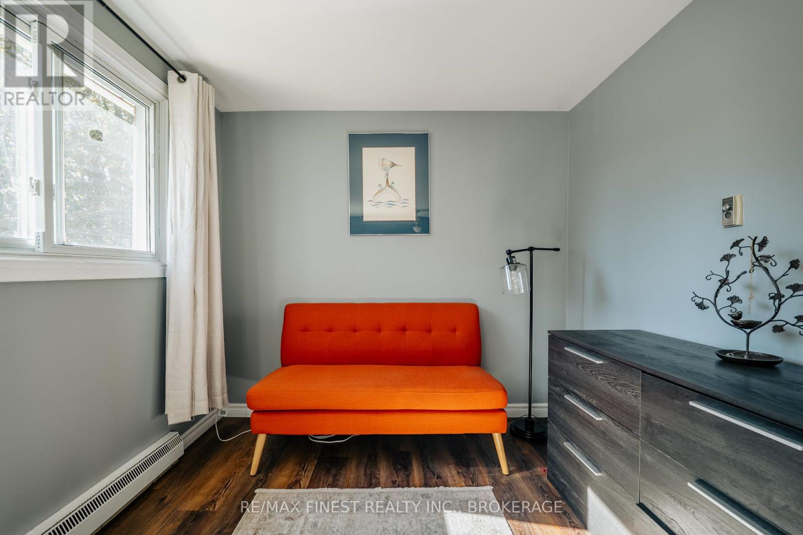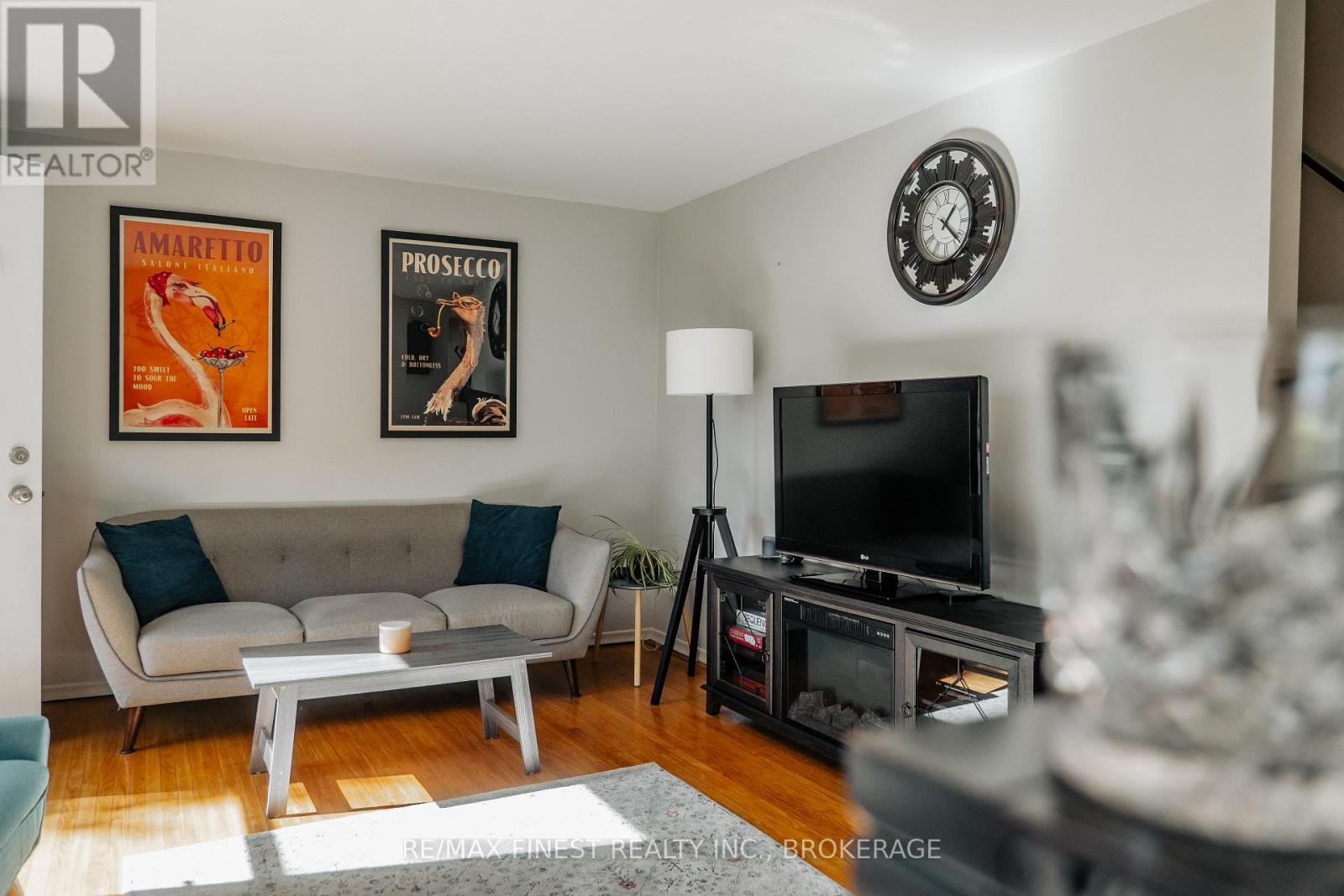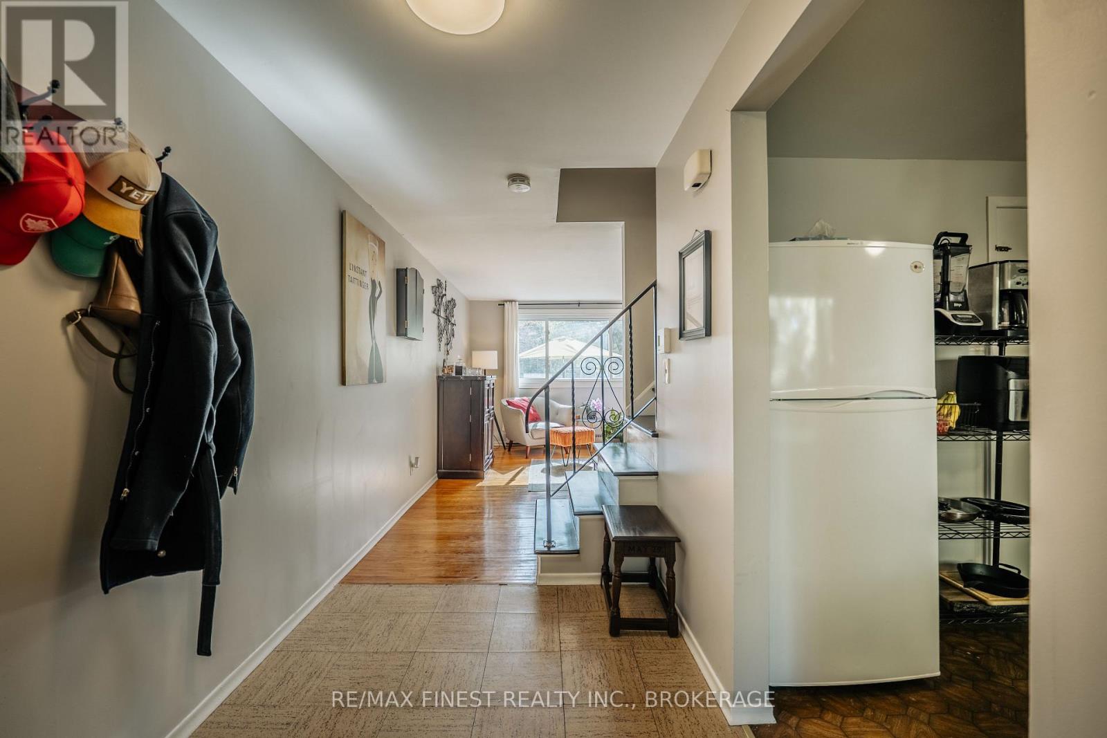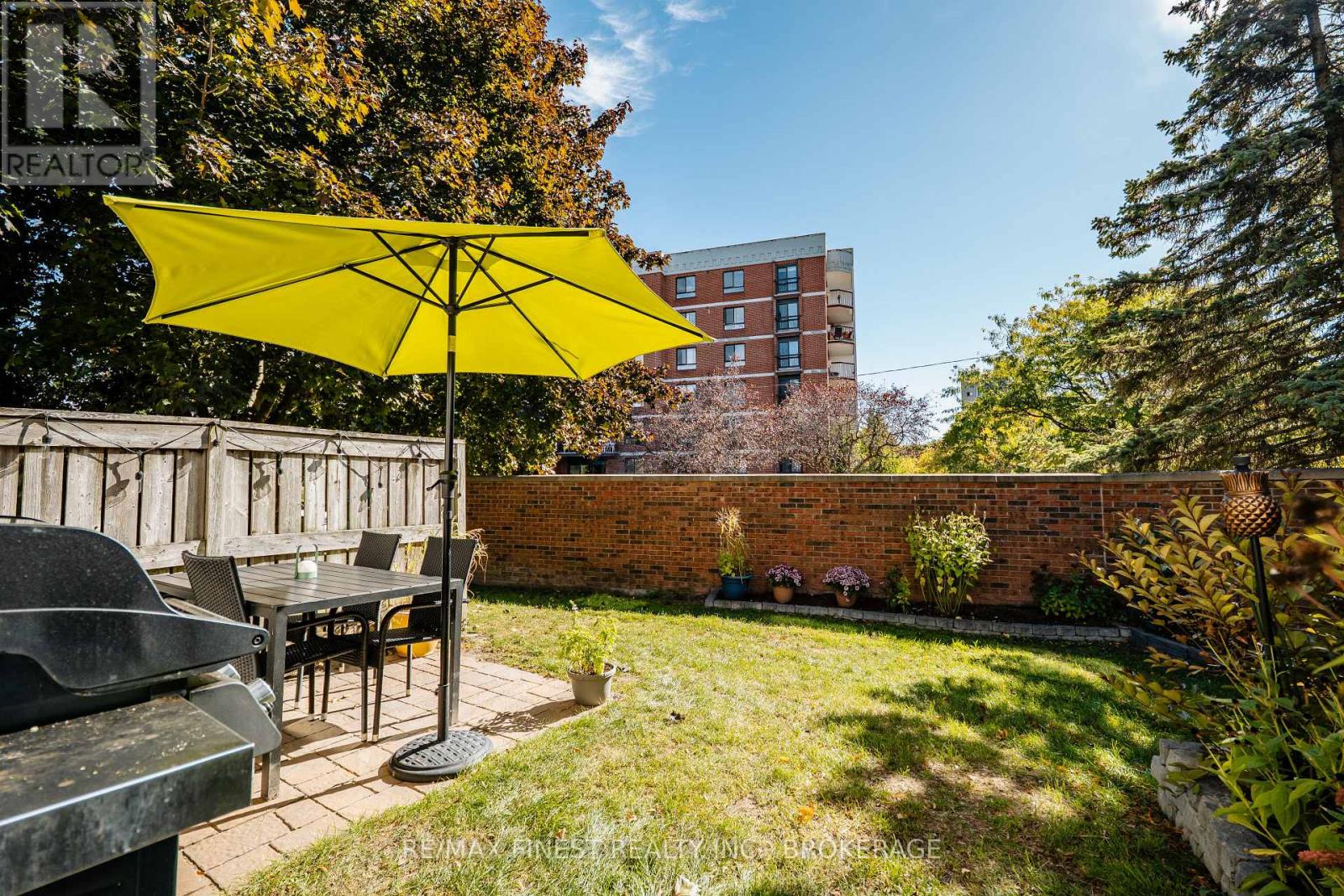 $395 MonthlyWell-maintained and move-in ready, this centrally located 2-bedroom end unit townhouse condominium offers a comfortable and convenient lifestyle. The main level features a bright and inviting living room with ample natural light and a functional layout. The updated bathroom and spacious primary bedroom on the upper level provide comfort and style. The finished basement includes laundry facilities and an additional room, ideal for use as a home office, guest space, or recreation area. Step outside to enjoy a private backyard patio, perfect for relaxing or entertaining. Located close to shopping, schools, public transit, and major amenities, this property presents an excellent opportunity for first-time buyers, downsizers, or investors. (id:29295)
