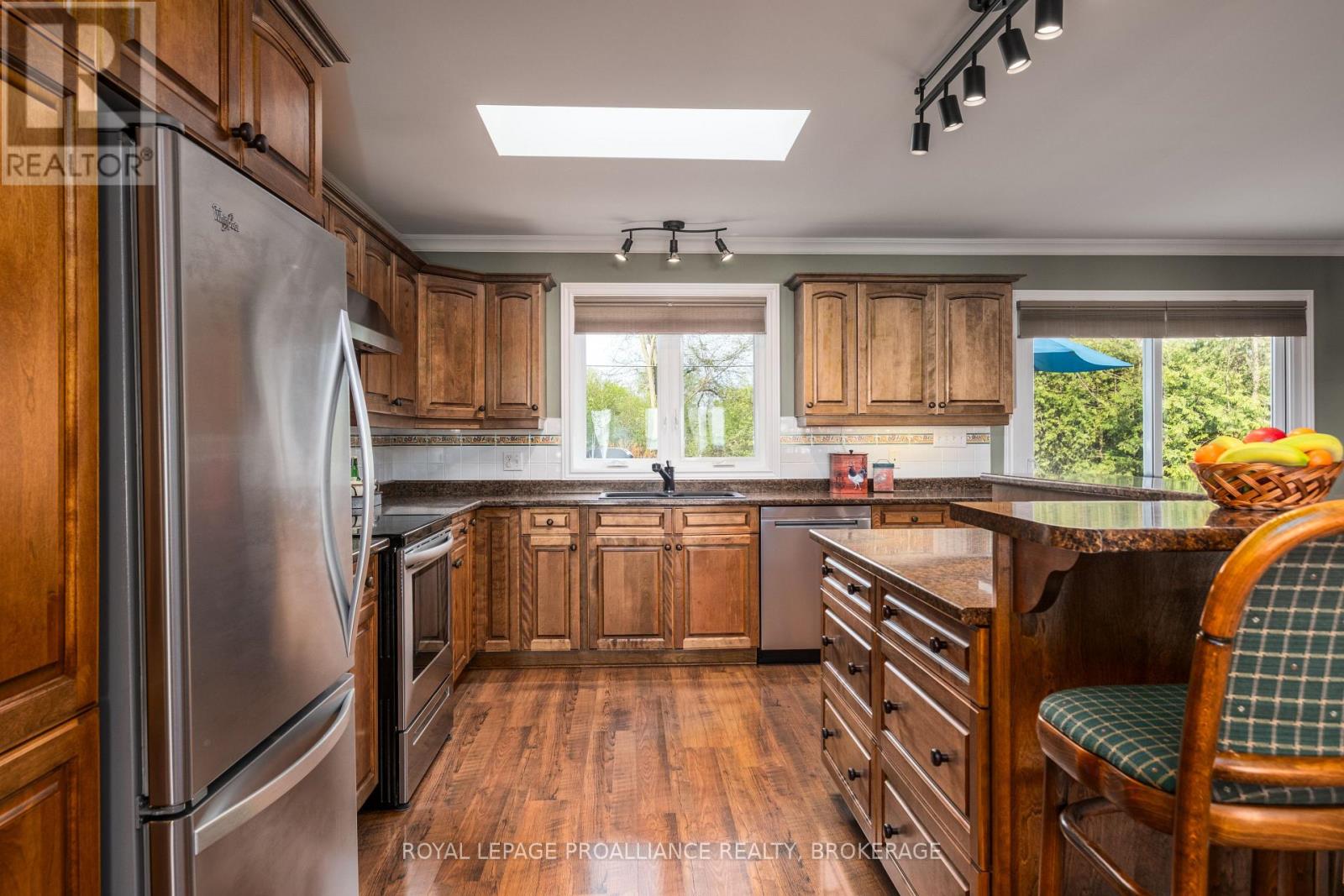 Have you always dreamed of sitting on your back deck at the end of a hot summer day enjoying a breeze off the water as you watch the sunset over the bay? Whether you are looking for that perfect weekend escape, a quiet place to retire, or a low maintenance waterfront home, you need not look further. This 2 bedroom, 2 bathroom bungalow checks all the boxes. As you come inside from the insulated 2-bay garage you are welcomed by a meticulously maintained open concept living space with south west waterfront views visible from nearly every corner of the home. This home has had just one owner since it was finished construction in 1998 and they have thought of everything! Additional features include a boathouse with a metal roof sitting on poured concrete with marine rail for easy boat storage, water spigots at the boathouse, garage and roadside shed for your garden and lawn care that pulls directly from the lake, a 5,000 watt generator wired to the home in case of emergencies and more. Don't miss the opportunity to watch every sunset of the year over the Bay of Quinte from your new home! (id:29295)