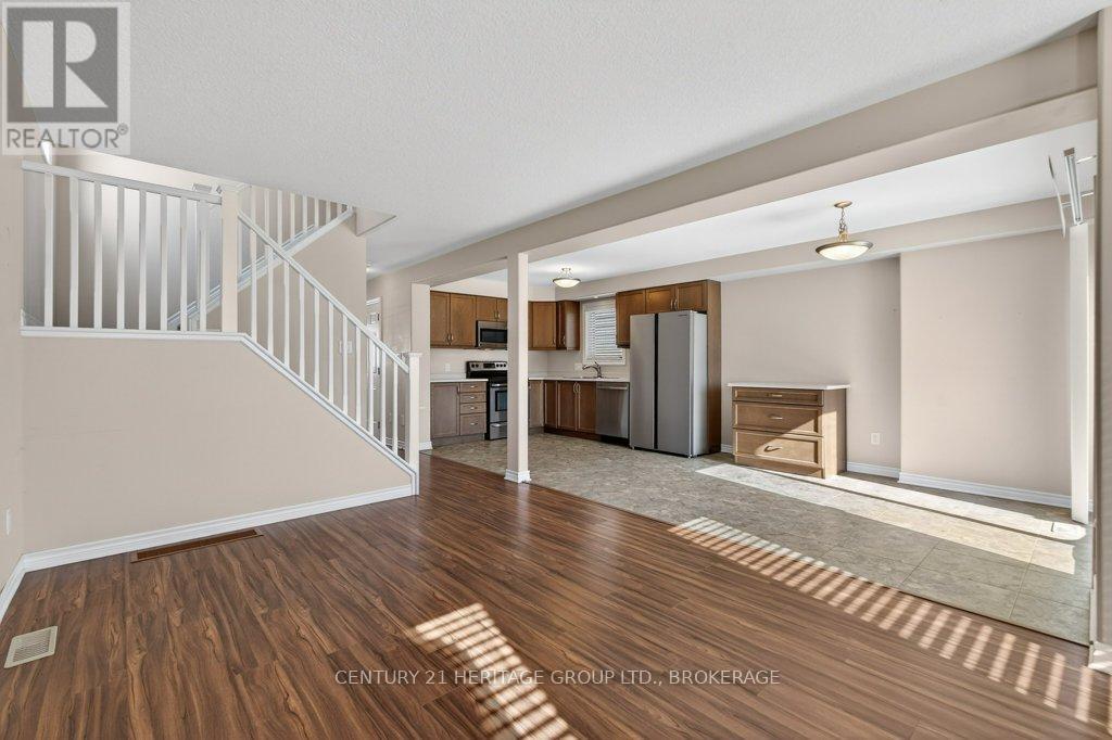 Welcome to this warm and welcoming detached home located in Kingston's desirable West End. Built by Greene Homes in 2014, this thoughtfully designed property offers approximately 1,400 sq ft above grade, three bedrooms, three bathrooms, and a layout that truly works for everyday family living. The main level begins with a bright front foyer featuring interior access to the attached single-car garage, making busy mornings and winter months more convenient. The open and functional layout flows naturally through the kitchen, dining area, and living room, creating a comfortable space for family time and entertaining. The kitchen offers ample cabinetry, laminate countertops, and easy access to the fully fenced backyard, ideal for kids, pets, and summer gatherings. A convenient 2-piece powder room completes the main floor. Upstairs, the spacious primary bedroom serves as a relaxing retreat, complete with a walk-in closet and a private 4-piece ensuite. Two additional well-sized bedrooms share a full 4-piece main bathroom, making the upper level perfect for young families, guests, or home office needs. The unfinished basement offers excellent future potential. All walls are already drywalled, the space is wide open, laundry is located here, and there is a rough-in for a future bathroom, making it especially easy to finish the space when the time is right. Whether you envision a rec room, playroom, home gym, or additional living space, this level is ready for your ideas. Outside, enjoy a fully fenced backyard and driveway parking for multiple vehicles. Located close to parks, schools, shopping, transit, and everyday West End amenities, this home offers a smart balance of comfort, location, and long-term value. 1431 Kendal Ave. is a solid, move-in-ready home with room to grow in one of Kingston's most family-friendly areas. (id:29295)