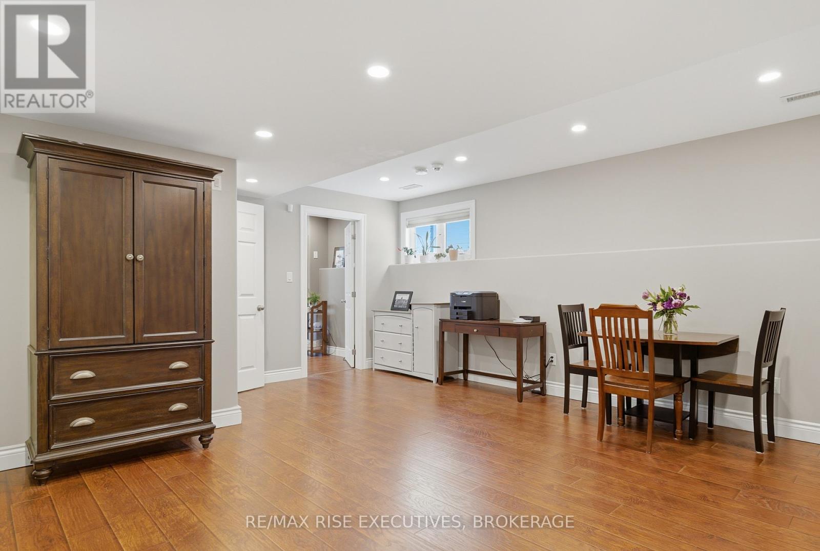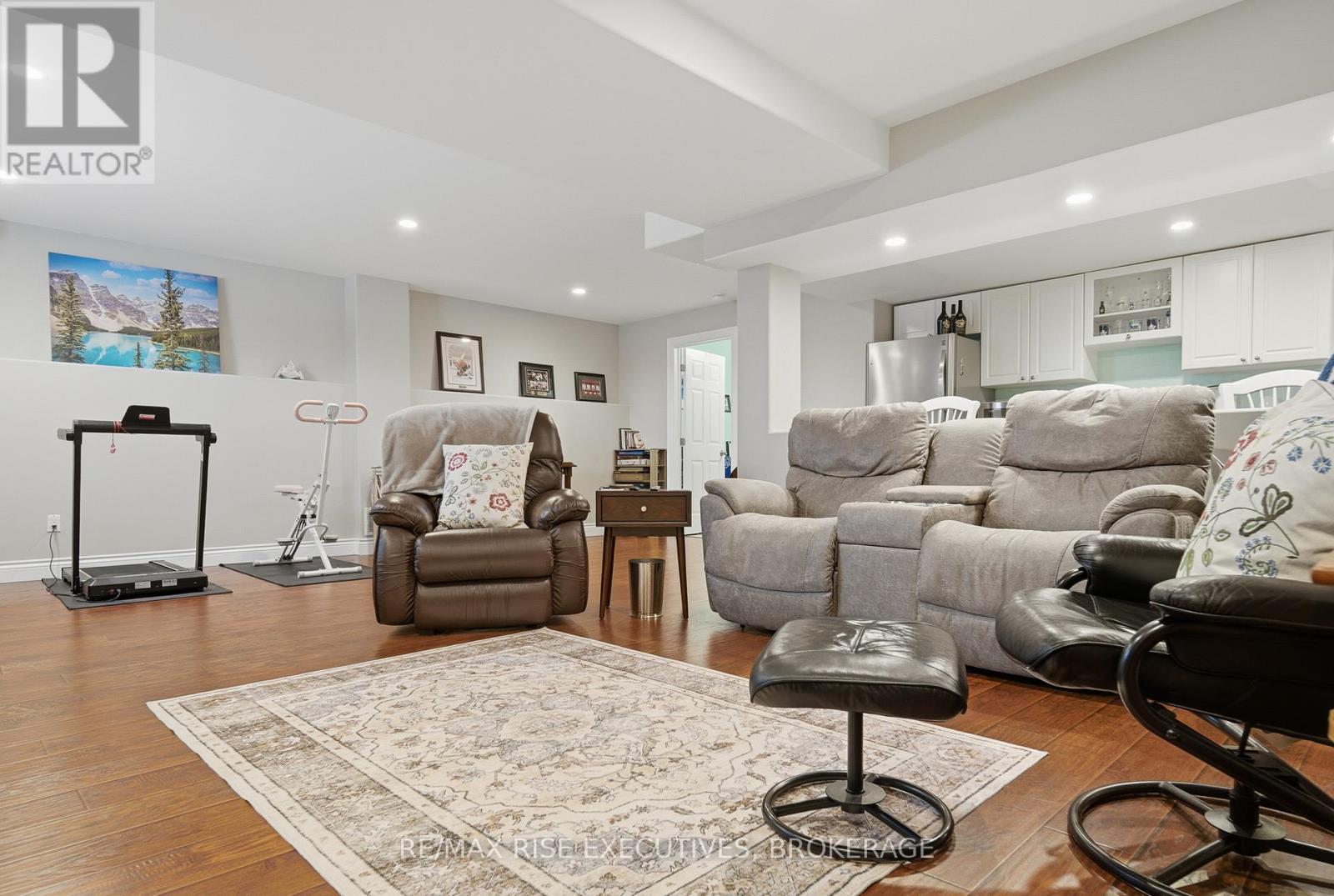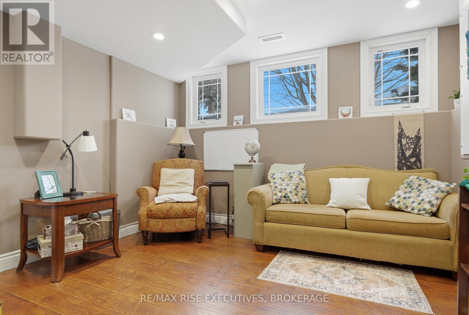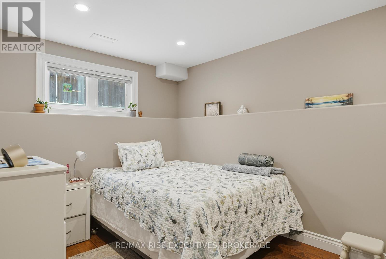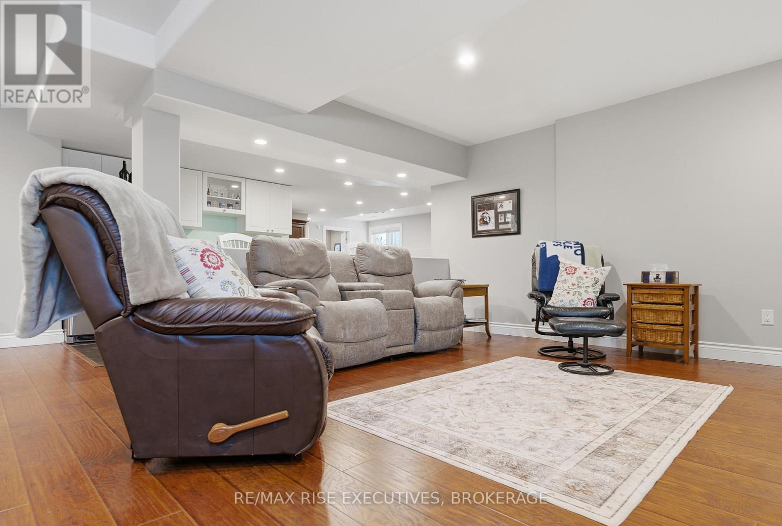 1480 Hanover Drive is the executive bungalow you've been waiting for-tucked away on a quiet street and backing directly onto the green space of Midland Park. From the moment you arrive, the home impresses with exceptional curb appeal, a double-wide driveway, and a true double-car garage. Step inside to a bright and airy main floor featuring engineered hardwood flooring, vaulted ceilings, and an open-concept living and dining area that feels both spacious and inviting. At the rear of the home, the beautifully appointed eat-in kitchen showcases sleek quartz countertops, stainless steel appliances, and seamless access to a large deck overlooking peaceful park views, perfect for morning coffee or evening entertaining. The main level offers three generous bedrooms, including a primary bedroom complete with its own private ensuite. A full main bathroom provides added convenience for family and guests. The professionally finished lower level expands your living space with a large, light-filled recreation room featuring an impressive wet bar, ideal for entertaining, movie nights, or game days. This level also includes two additional bedrooms and another full bathroom, offering flexibility for guests, a home office, or extended family living. Outside, the fully fenced and landscaped backyard is designed for relaxation and enjoyment. From the upper deck, step down to a covered lower deck with pergola and added privacy, an incredible outdoor retreat backing onto parkland. Move-in ready and beautifully finished throughout, this home offers an A+ location close to all the amenities Kingston's west end has to offer. Don't miss your opportunity-schedule your private viewing today! (id:29295)