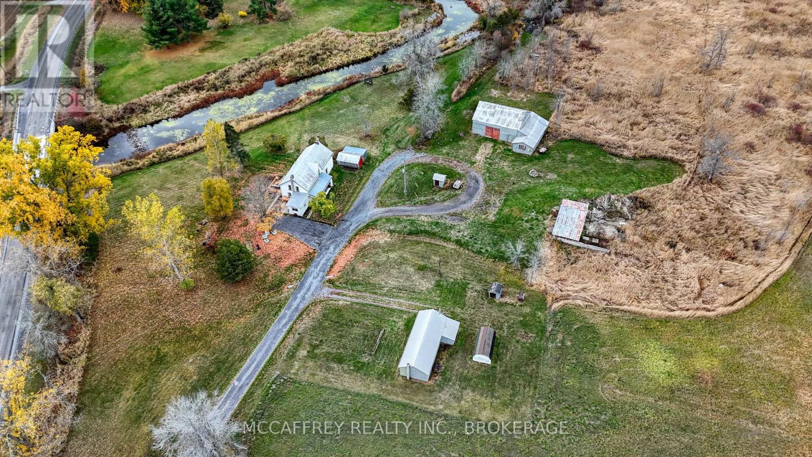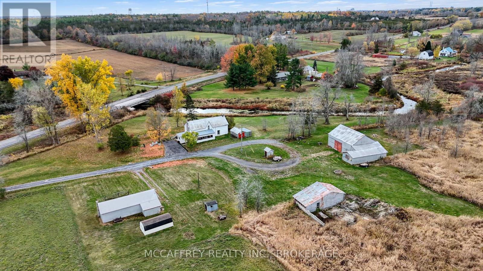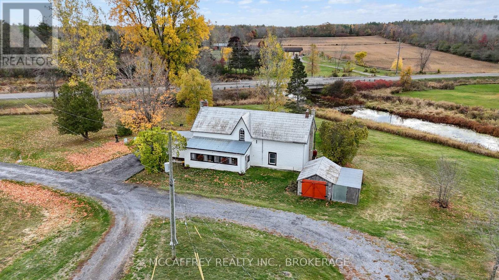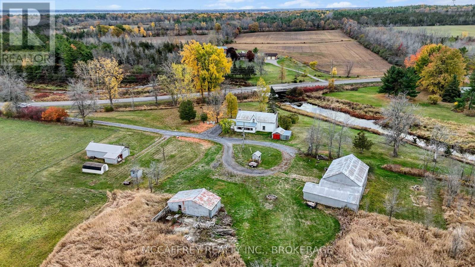 Creekside country retreat on just over 21 picturesque acres. Millhaven Creek meanders through the property, creating a serene backdrop, attracting wildlife, and offering a natural water feature at the heart of the land. A classic barn and multiple outbuildings provide flexible space for equipment, workshop, studio, or storage. There's ample room to plan gardens, meadows, trails, and outdoor living areas, all with the soothing sound of the creek nearby. The charming century two-story home blends rustic character with modern comfort. A welcoming front porch opens to an updated kitchen highlighted by warm wooden beams, and the adjoining dining, living, and sitting rooms provide generous space for family life and gatherings. A main-floor 3-piece bath and laundry add everyday convenience. Upstairs you'll find the inviting primary bedroom, three additional bedrooms, two more 3-piece baths, and a versatile flex space ideal for a walk-in closet, office, or playroom. Stay connected with Bell Fiber internet now available at the home-perfect for remote work, streaming, and smart-home needs. Despite the private, rural feel, you're just minutes from the village of Bath with its welcoming community and waterfront park. Whether you're envisioning expansive gardens, a workshop haven, or simply a tranquil country lifestyle beside a flowing stream, this property is ready to bring your vision to life. (id:29295)