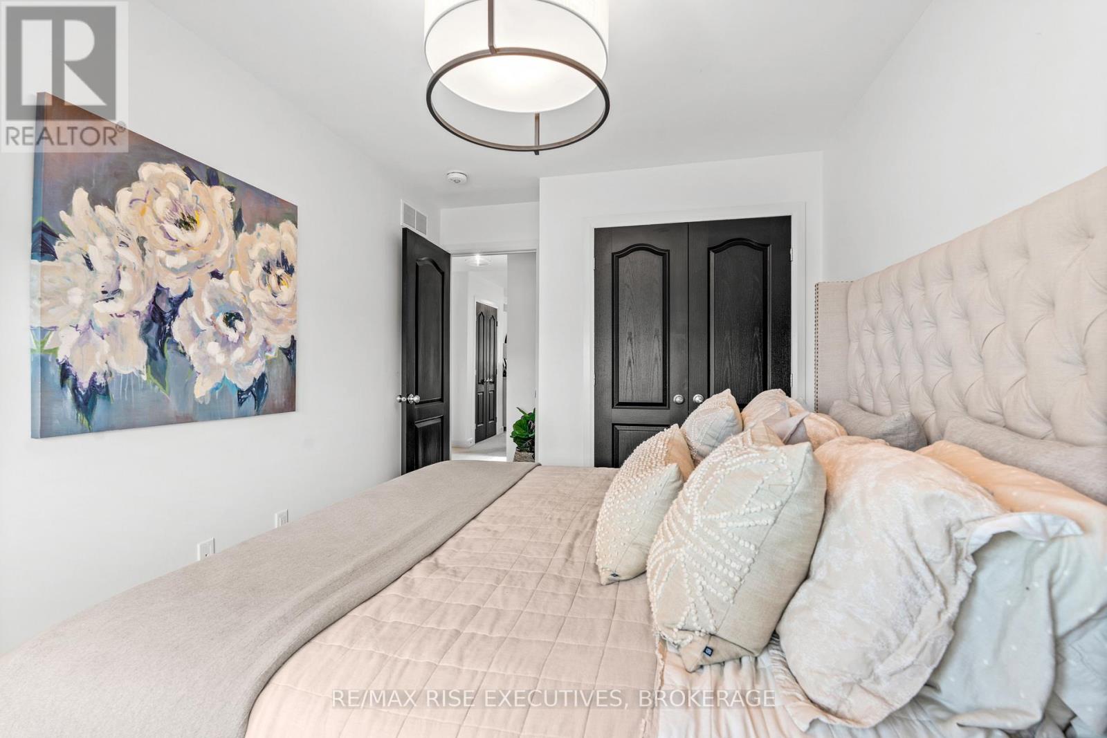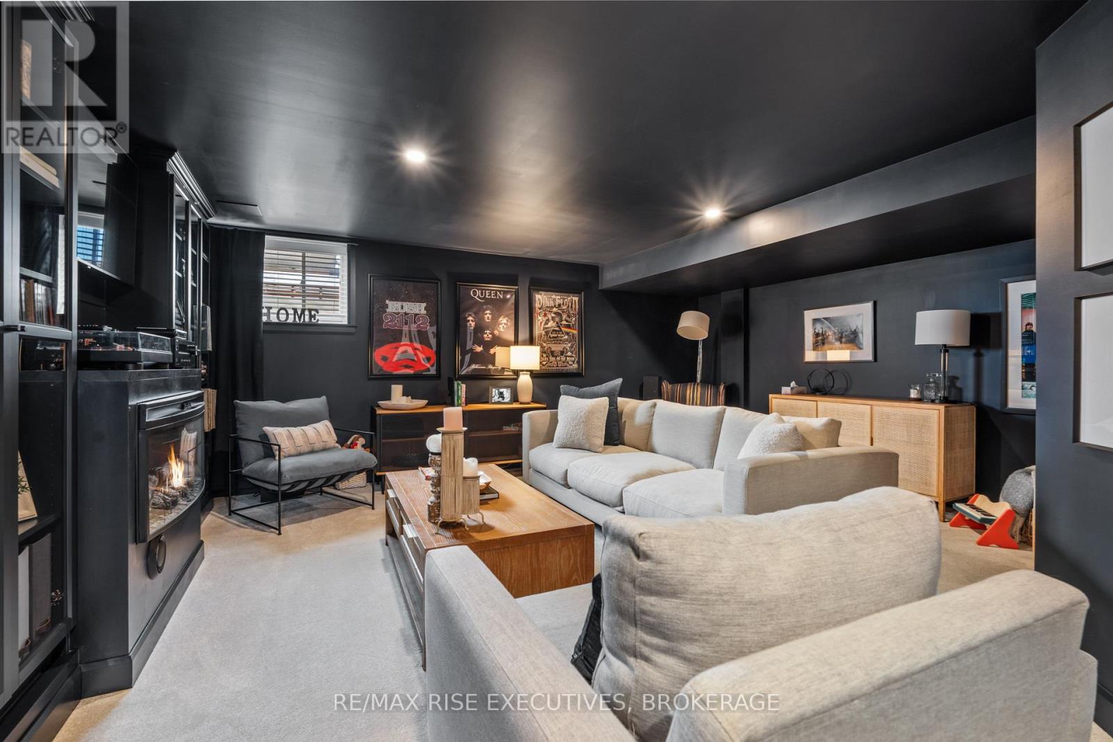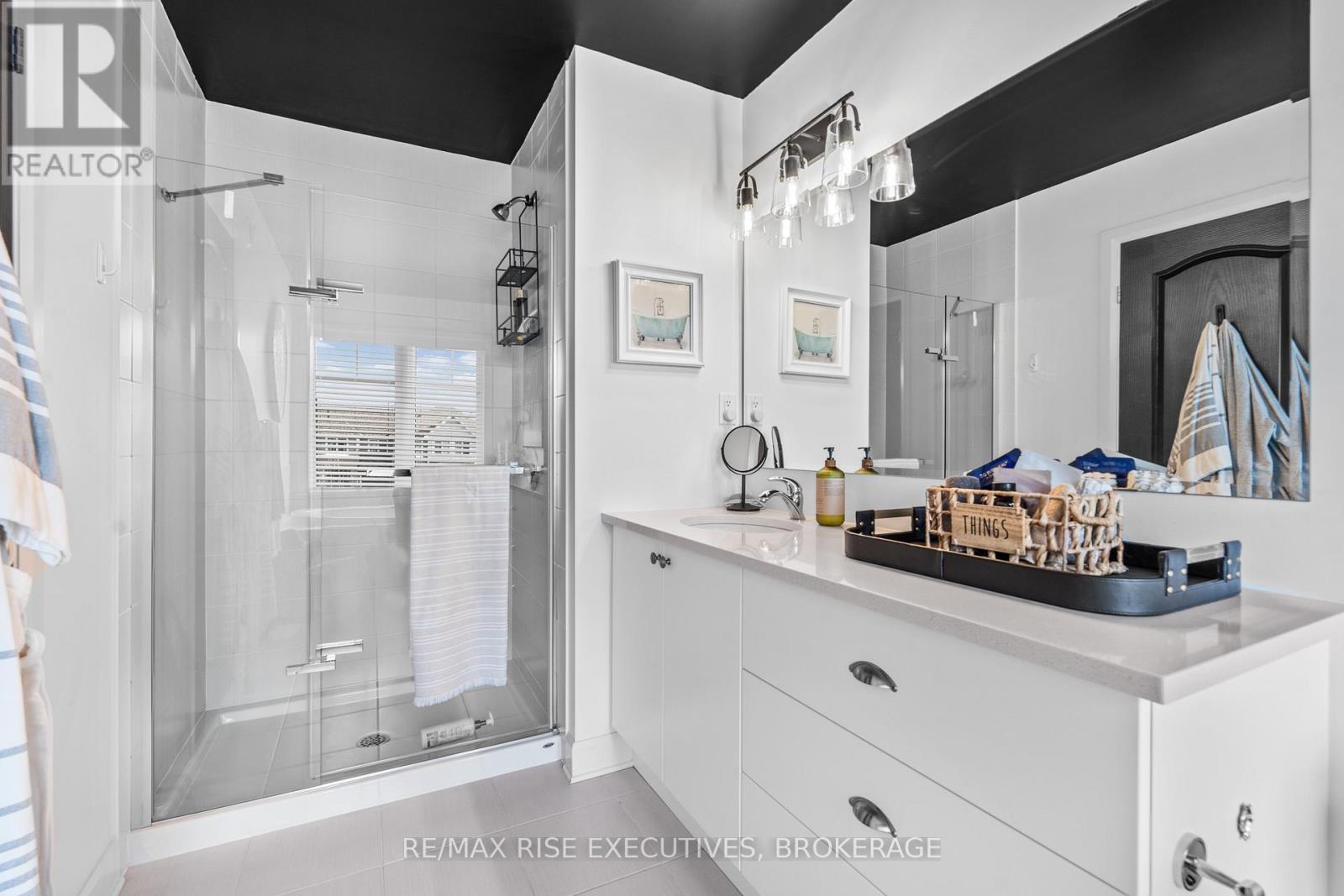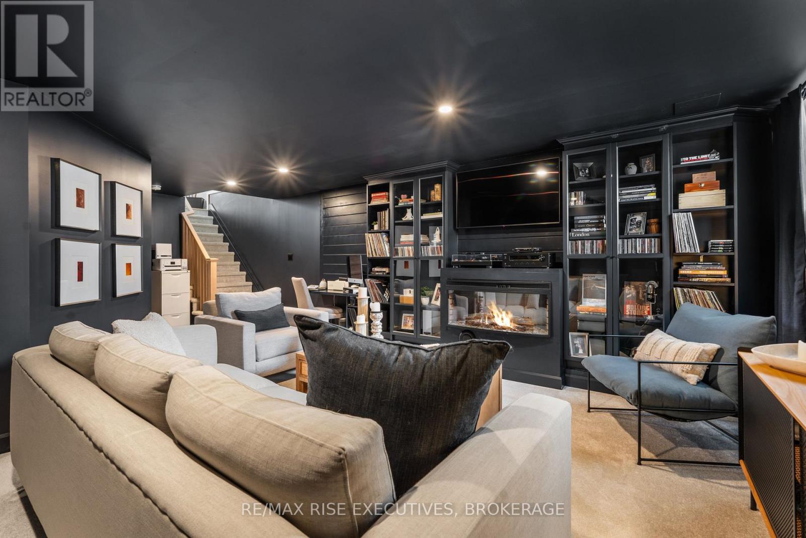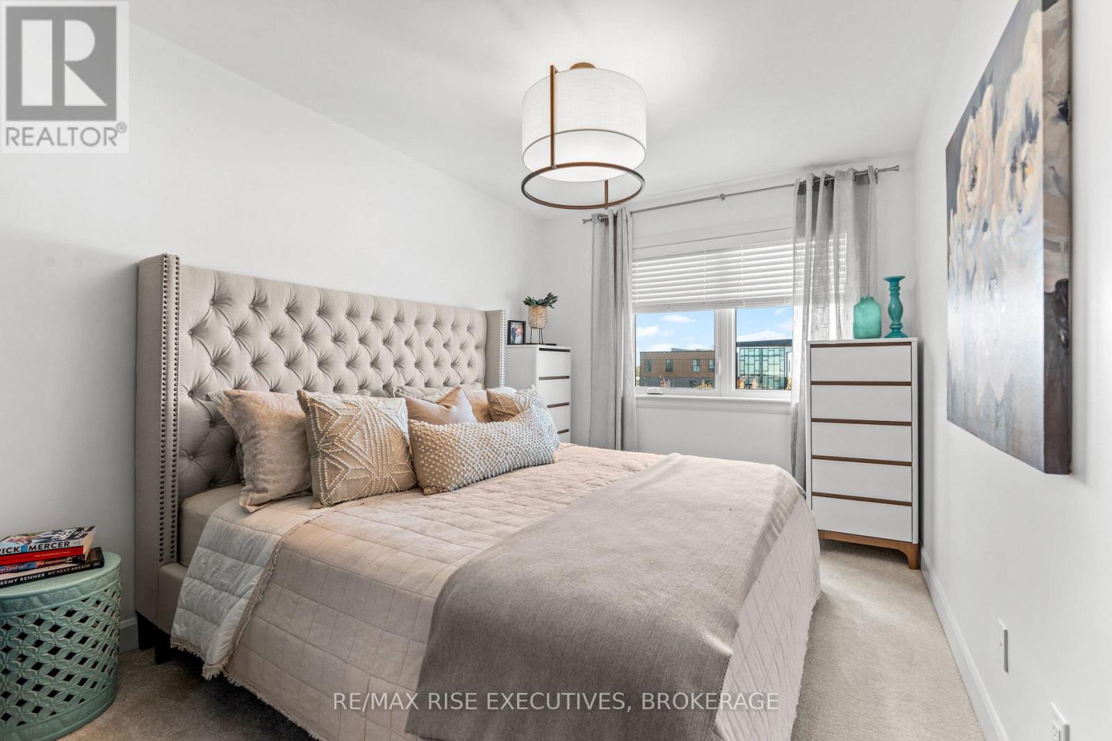 This premium Tamarack residence sits on a standout, fully landscaped lot with patio stone, a custom walkway, and manicured gardens that create an inviting entrance. The backyard is a private retreat with a relaxation hot tub, professional turf for low maintenance, illuminated steps, a raised flower garden, a full fence, and an expansive deck with zones for lounging, dining, entertaining, and storage. With the property backing onto St. Genevieve Catholic School and a new park and walking paths coming soon, this West-End location delivers long-term convenience and family-friendly appeal. Inside, the home showcases quality craftsmanship and a bright, open main level with Maple cabinetry, a custom coffee bar and pantry, quartz countertops, a waterfall island, professional stainless steel appliances, California shutters, and a warm gas fireplace. A beautifully crafted staircase, custom cabinetry, refined finishes, and a stylish powder room elevate the space. The lower level offers a cozy, flexible area for a movie lounge, music space, or children's playroom, plus a rough-in for a future fourth bathroom. Upstairs, the large primary suite features a king-sized layout, walk-in closet, and spa-style ensuite with a soaker tub. A well-designed upper-level laundry room includes quartz counters, a wash sink, cabinets, a folding station, and Electrolux appliances. Two additional bedrooms and a four-piece bath complete this level. With 2,200 sq. ft. of finished living space, upgraded lighting, an extended driveway, full eavestrough system, Celebright exterior lighting, and EV-ready wiring in the garage, this executive townhome blends upscale finishes with modern functionality. A must-see opportunity. (id:29295)