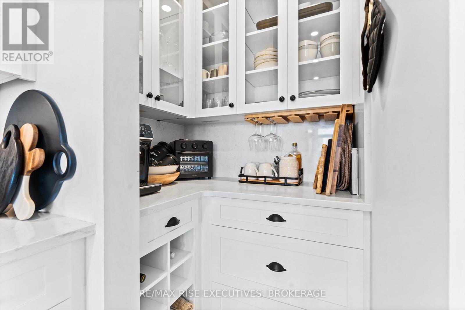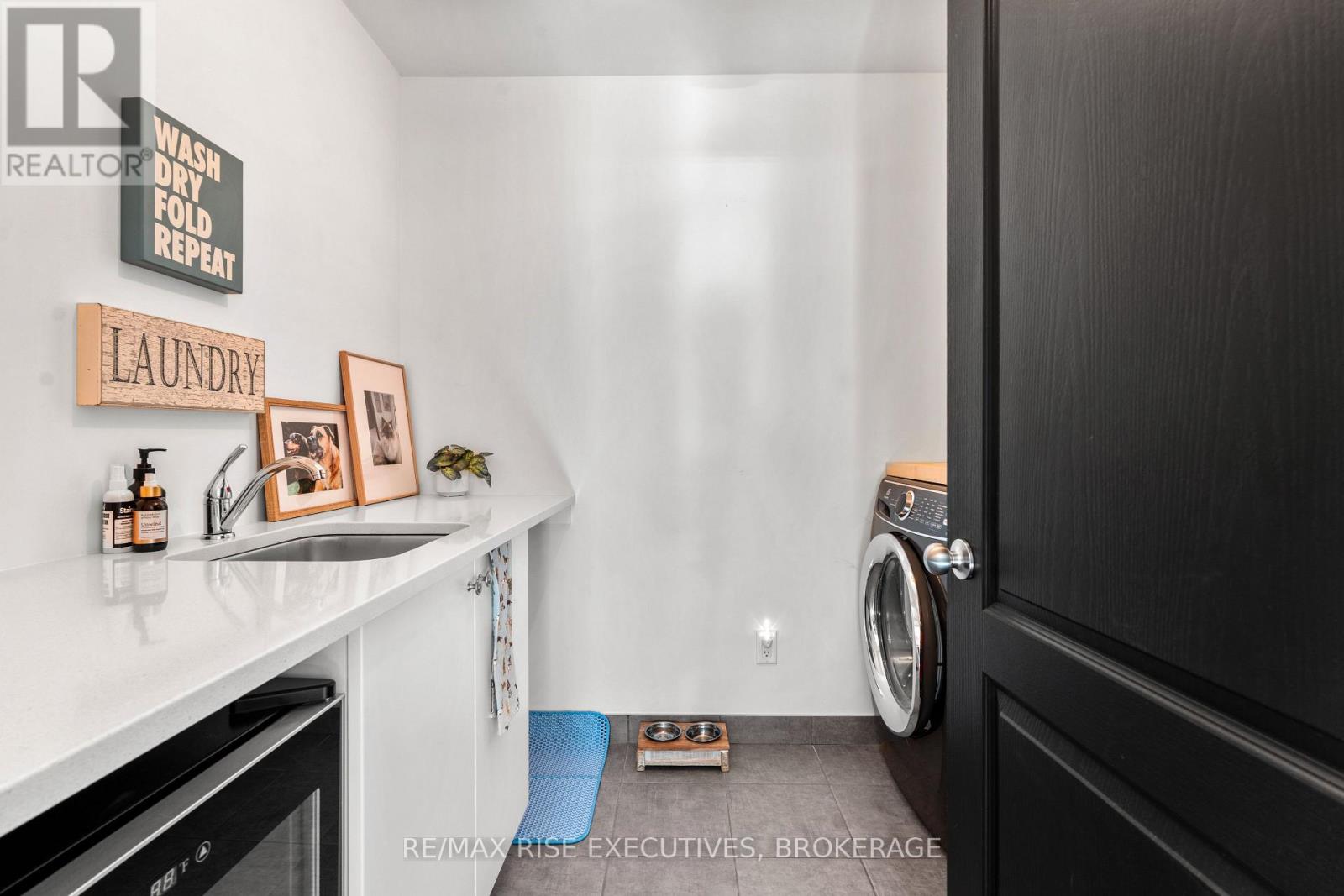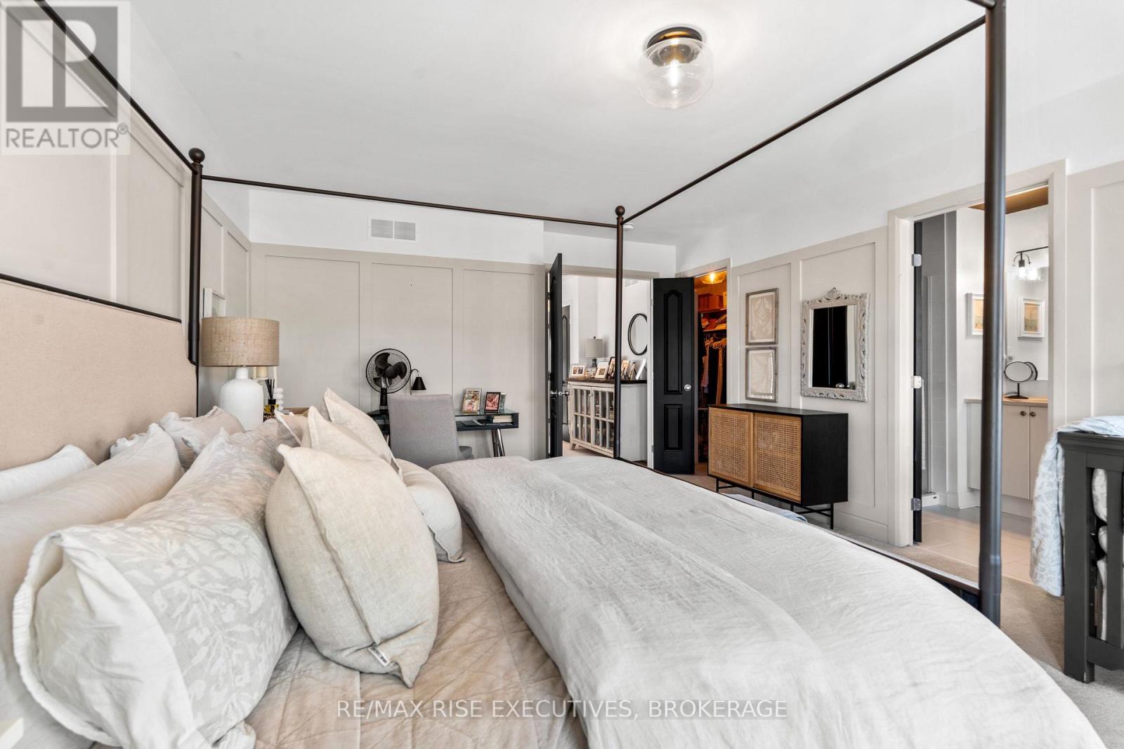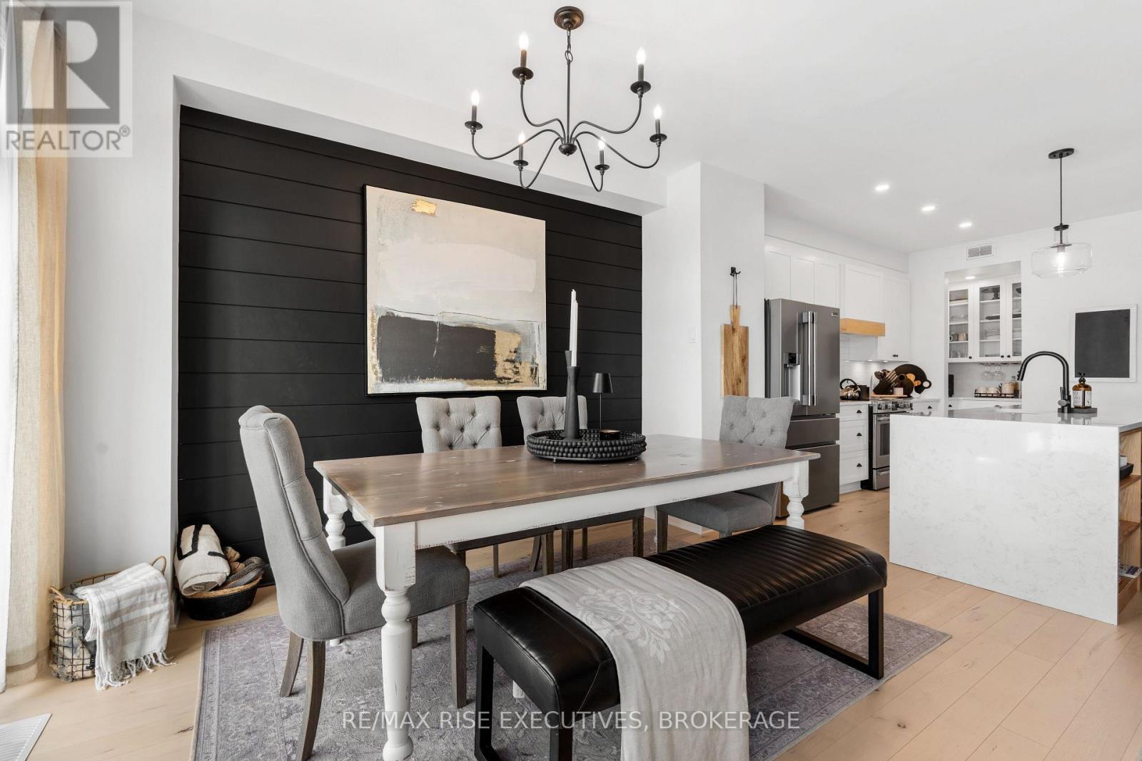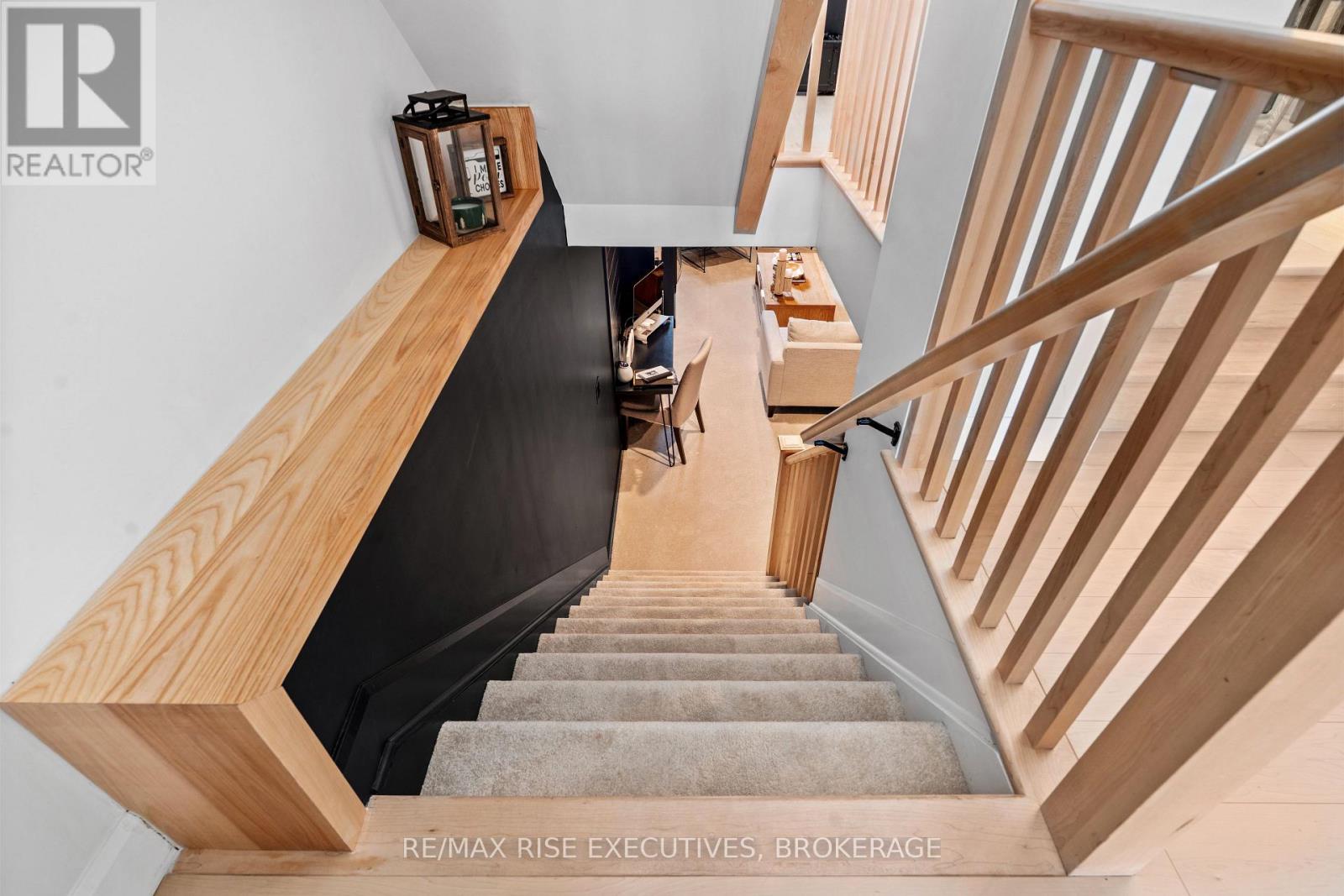 This premium Tamarack residence sits on a standout, fully landscaped lot with patio stone, a custom walkway, and manicured gardens that create an inviting entrance. The backyard is a private retreat with a relaxation hot tub, professional turf for low maintenance, illuminated steps, a raised flower garden, a full fence, and an expansive deck with zones for lounging, dining, entertaining, and storage. With the property backing onto St. Genevieve Catholic School and a new park and walking paths coming soon, this West-End location delivers long-term convenience and family-friendly appeal. Inside, the home showcases quality craftsmanship and a bright, open main level with Maple cabinetry, a custom coffee bar and pantry, quartz countertops, a waterfall island, professional stainless steel appliances, California shutters, and a warm gas fireplace. A beautifully crafted staircase, custom cabinetry, refined finishes, and a stylish powder room elevate the space. The lower level offers a cozy, flexible area for a movie lounge, music space, or children's playroom, plus a rough-in for a future fourth bathroom. Upstairs, the large primary suite features a king-sized layout, walk-in closet, and spa-style ensuite with a soaker tub. A well-designed upper-level laundry room includes quartz counters, a wash sink, cabinets, a folding station, and Electrolux appliances. Two additional bedrooms and a four-piece bath complete this level. With 2,200 sq. ft. of finished living space, upgraded lighting, an extended driveway, full eavestrough system, Celebright exterior lighting, and EV-ready wiring in the garage, this executive townhome blends upscale finishes with modern functionality. A must-see opportunity. (id:29295)