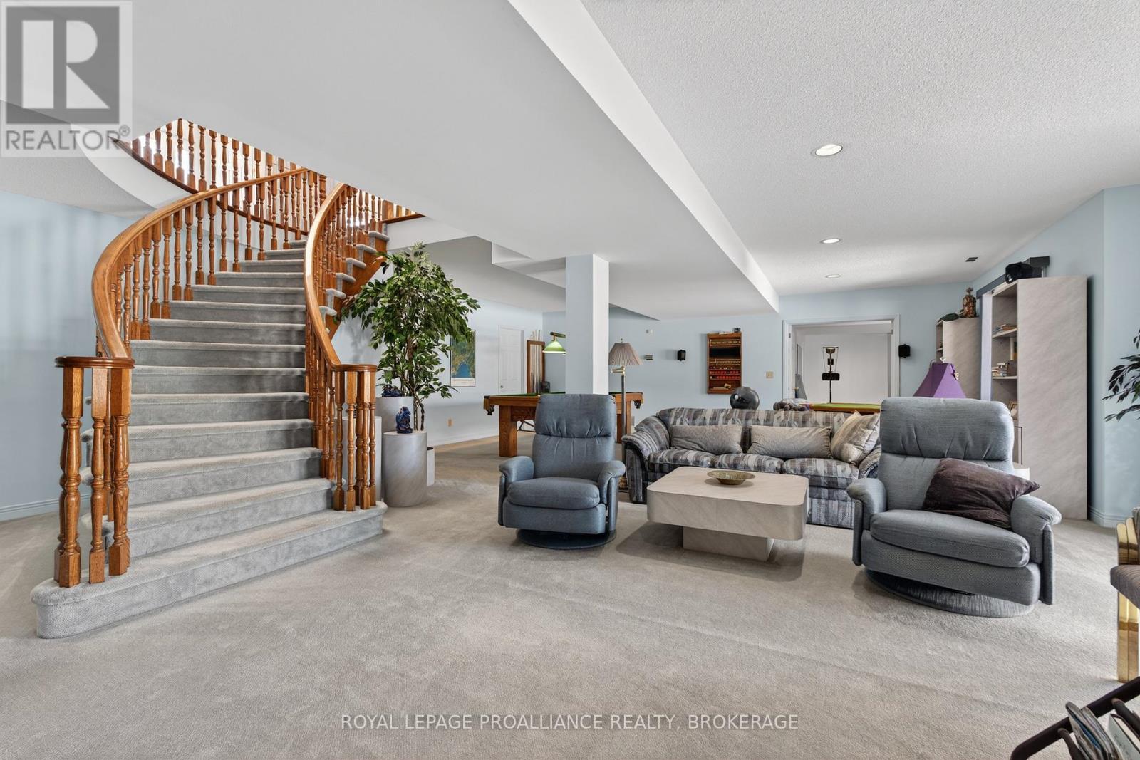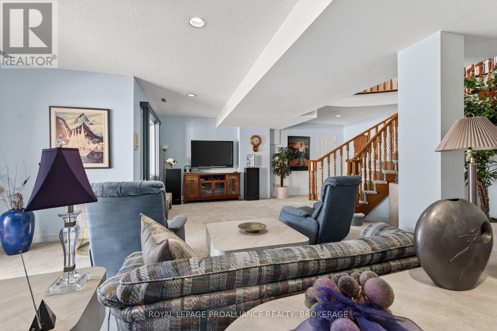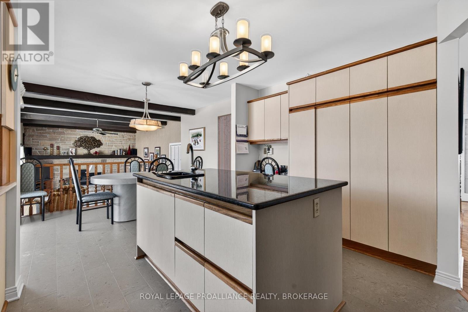 Welcome to your dream home - an exquisite brick walkout bungalow offering nearly 6,000 sqft of finished living space, situated on prestigious Treasure Island. This elegantly designed residence is beautifully landscaped, creating a serene setting for outdoor living. Enjoy direct access to the St. Lawrence River with a deeded 60ft dock, ideal for boating and waterfront enthusiasts. A standout feature of this home is its state-of-the-art geothermal heating and cooling system, designed for exceptional efficiency and sustainability. The system includes three drilled wells, each approximately 200 ft deep and 6 inches in diameter, along with approximately 1,200 ft of heating and cooling lines. This advanced setup significantly reduces annual energy expenses while providing consistent, environmentally friendly comfort year-round. Step inside to discover a modern, spacious layout ideal for family living. The home offers 3+1 bedrooms and 4 luxurious bathrooms, including recently renovated spaces and heated floors in the ensuite bathroom. A spiral staircase serves as a captivating architectural focal point, while the interlocking brick, triple driveway enhances the home's impressive curb appeal. Two years ago, substantial renovations were completed, including new flooring in several areas, new garage doors, a new front door, and a newly finished garage floor. In addition, the outdoor deck was replaced in 2010 with Trex decking, providing a durable, low-maintenance space for outdoor entertaining. Additional highlights include a 400-amp electrical panel to support today's modern lifestyle, an epoxy-finished garage floor, and a matching epoxy finish in the furnace room for added durability and cleanliness. With breathtaking water views and a backyard trail leading directly to the dock, this exceptional property offers the perfect balance of relaxation and adventure. Experience a lifestyle of luxury, comfort, and sustainability in this remarkable waterfront family retreat. (id:29295)