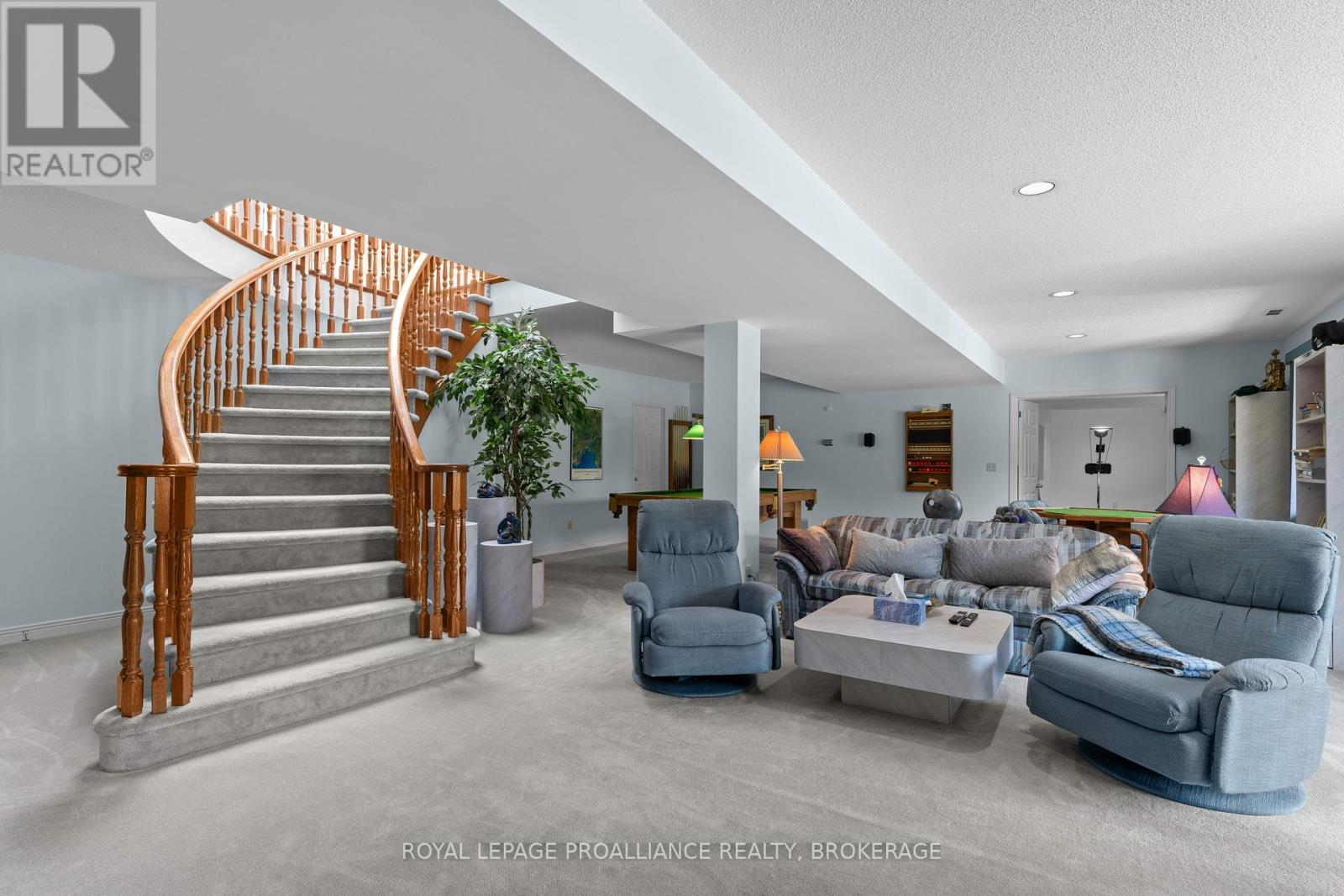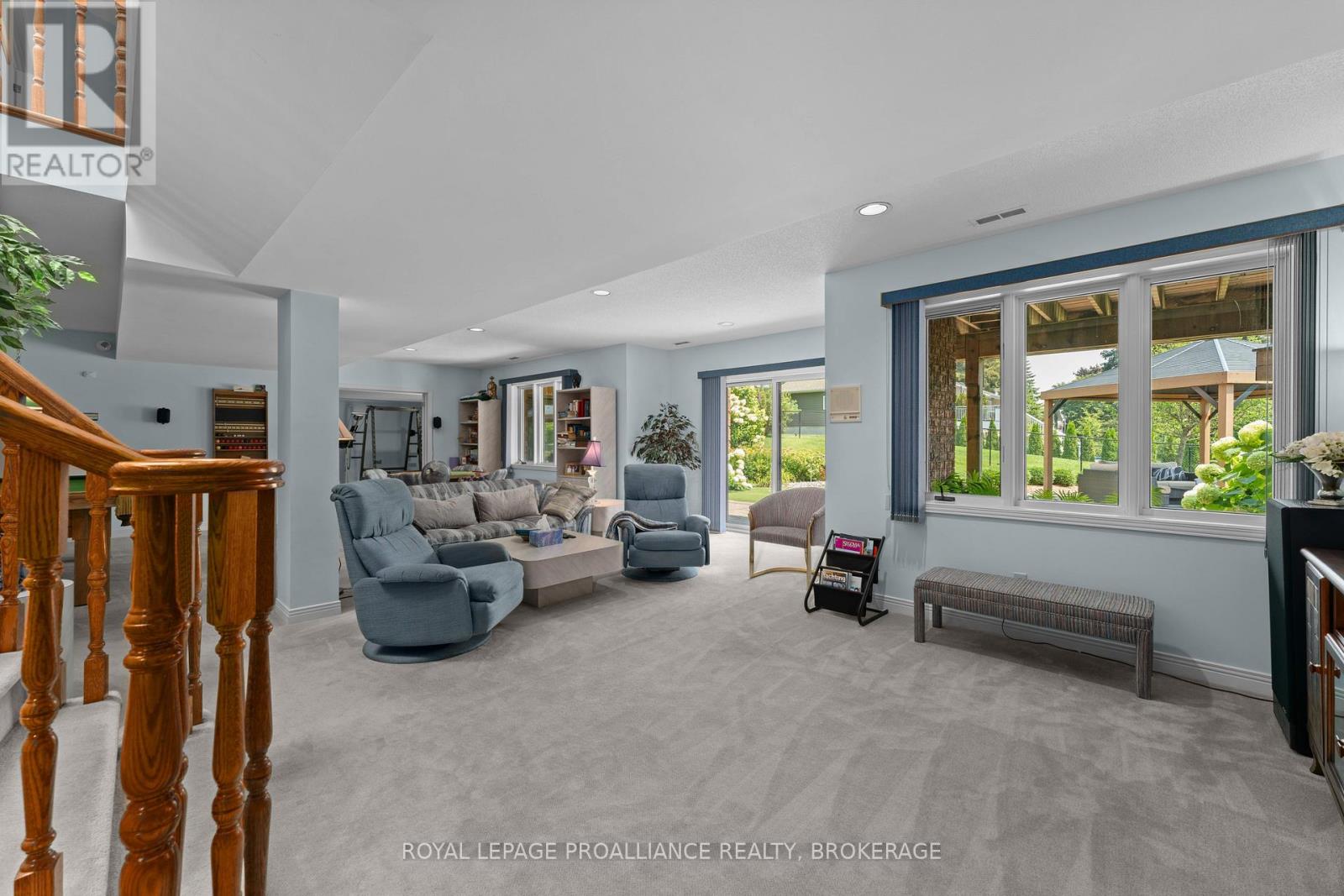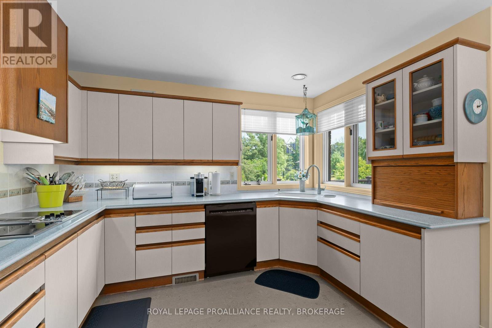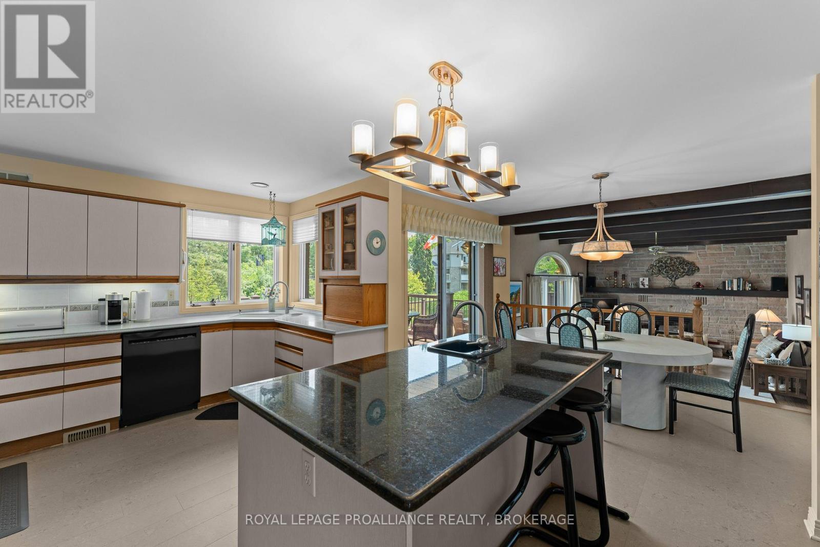 Welcome to your dream home - an exquisite brick walkout bungalow offering nearly 6,000 sqft of finished living space, situated on prestigious Treasure Island. This elegantly designed residence is beautifully landscaped, creating a serene setting for outdoor living. Enjoy direct access to the St. Lawrence River with a deeded 60ft dock, ideal for boating and waterfront enthusiasts. A standout feature of this home is its state-of-the-art geothermal heating and cooling system, designed for exceptional efficiency and sustainability. The system includes three drilled wells, each approximately 200 ft deep and 6 inches in diameter, along with approximately 1,200 ft of heating and cooling lines. This advanced setup significantly reduces annual energy expenses while providing consistent, environmentally friendly comfort year-round. Step inside to discover a modern, spacious layout ideal for family living. The home offers 3+1 bedrooms and 4 luxurious bathrooms, including recently renovated spaces and heated floors in the ensuite bathroom. A spiral staircase serves as a captivating architectural focal point, while the interlocking brick, triple driveway enhances the home's impressive curb appeal. Two years ago, substantial renovations were completed, including new flooring in several areas, new garage doors, a new front door, and a newly finished garage floor. In addition, the outdoor deck was replaced in 2010 with Trex decking, providing a durable, low-maintenance space for outdoor entertaining. Additional highlights include a 400-amp electrical panel to support today's modern lifestyle, an epoxy-finished garage floor, and a matching epoxy finish in the furnace room for added durability and cleanliness. With breathtaking water views and a backyard trail leading directly to the dock, this exceptional property offers the perfect balance of relaxation and adventure. Experience a lifestyle of luxury, comfort, and sustainability in this remarkable waterfront family retreat. (id:29295)
