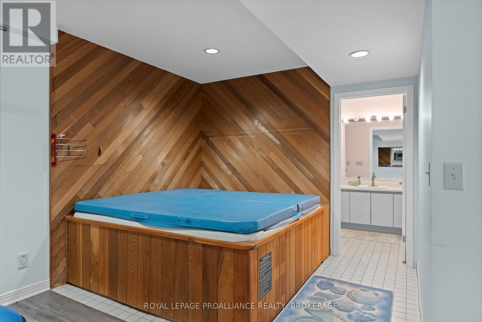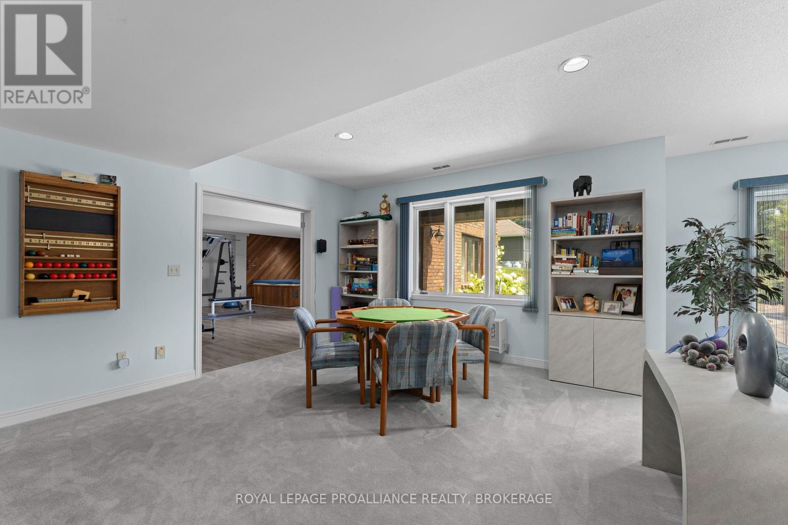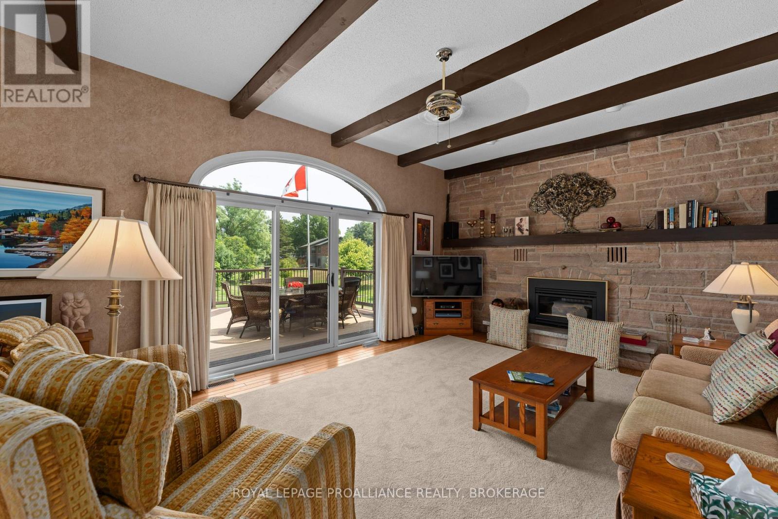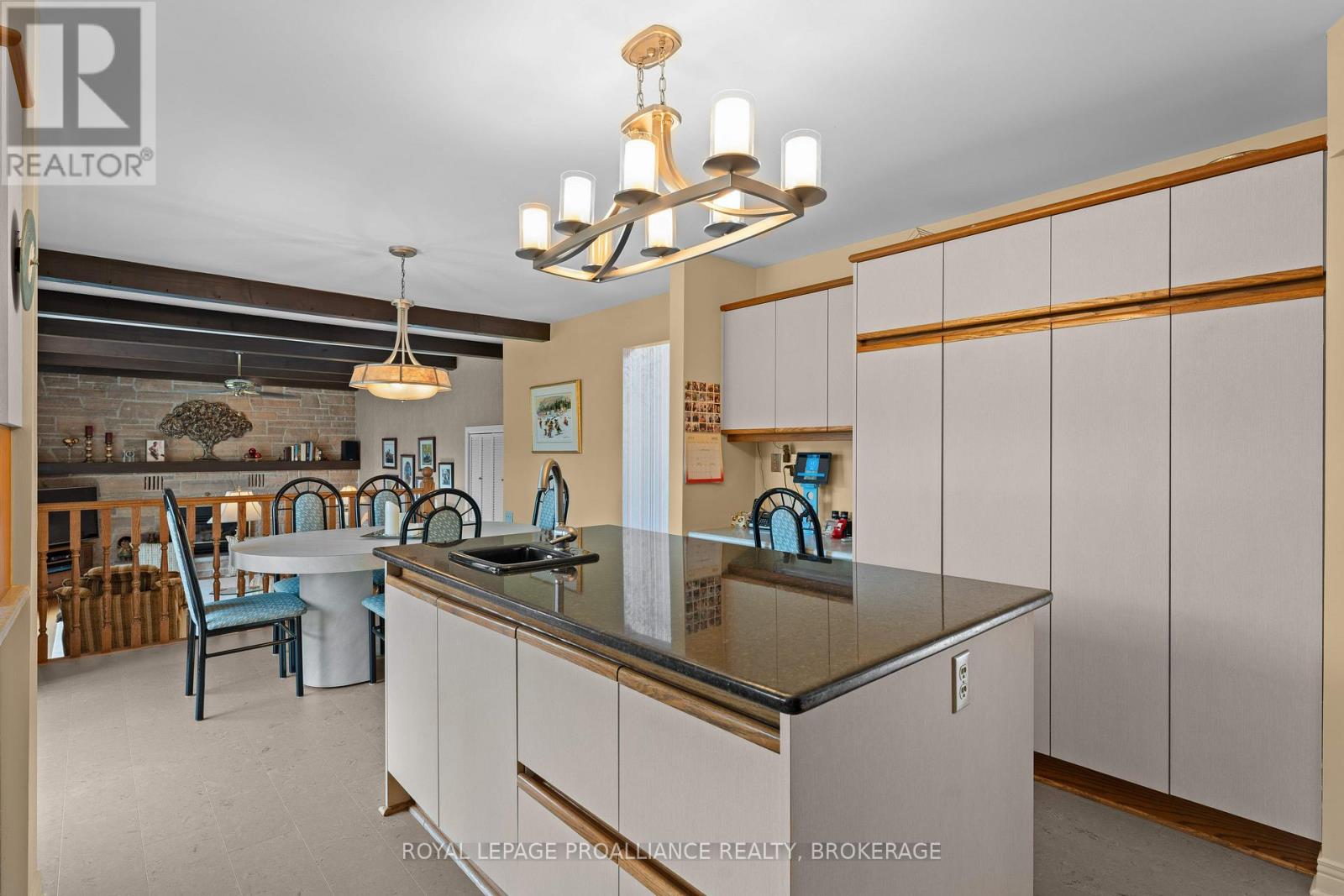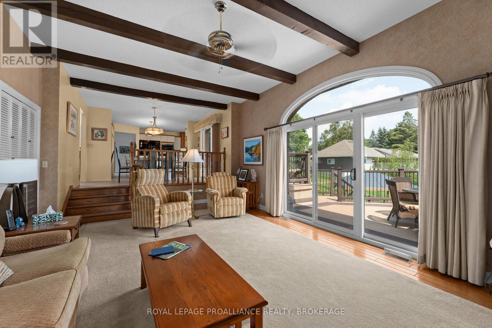 Welcome to your dream home - an exquisite brick walkout bungalow offering nearly 6,000 sqft of finished living space, situated on prestigious Treasure Island. This elegantly designed residence is beautifully landscaped, creating a serene setting for outdoor living. Enjoy direct access to the St. Lawrence River with a deeded 60ft dock, ideal for boating and waterfront enthusiasts. A standout feature of this home is its state-of-the-art geothermal heating and cooling system, designed for exceptional efficiency and sustainability. The system includes three drilled wells, each approximately 200 ft deep and 6 inches in diameter, along with approximately 1,200 ft of heating and cooling lines. This advanced setup significantly reduces annual energy expenses while providing consistent, environmentally friendly comfort year-round. Step inside to discover a modern, spacious layout ideal for family living. The home offers 3+1 bedrooms and 4 luxurious bathrooms, including recently renovated spaces and heated floors in the ensuite bathroom. A spiral staircase serves as a captivating architectural focal point, while the interlocking brick, triple driveway enhances the home's impressive curb appeal. Two years ago, substantial renovations were completed, including new flooring in several areas, new garage doors, a new front door, and a newly finished garage floor. In addition, the outdoor deck was replaced in 2010 with Trex decking, providing a durable, low-maintenance space for outdoor entertaining. Additional highlights include a 400-amp electrical panel to support today's modern lifestyle, an epoxy-finished garage floor, and a matching epoxy finish in the furnace room for added durability and cleanliness. With breathtaking water views and a backyard trail leading directly to the dock, this exceptional property offers the perfect balance of relaxation and adventure. Experience a lifestyle of luxury, comfort, and sustainability in this remarkable waterfront family retreat. (id:29295)