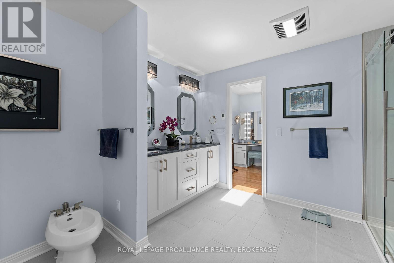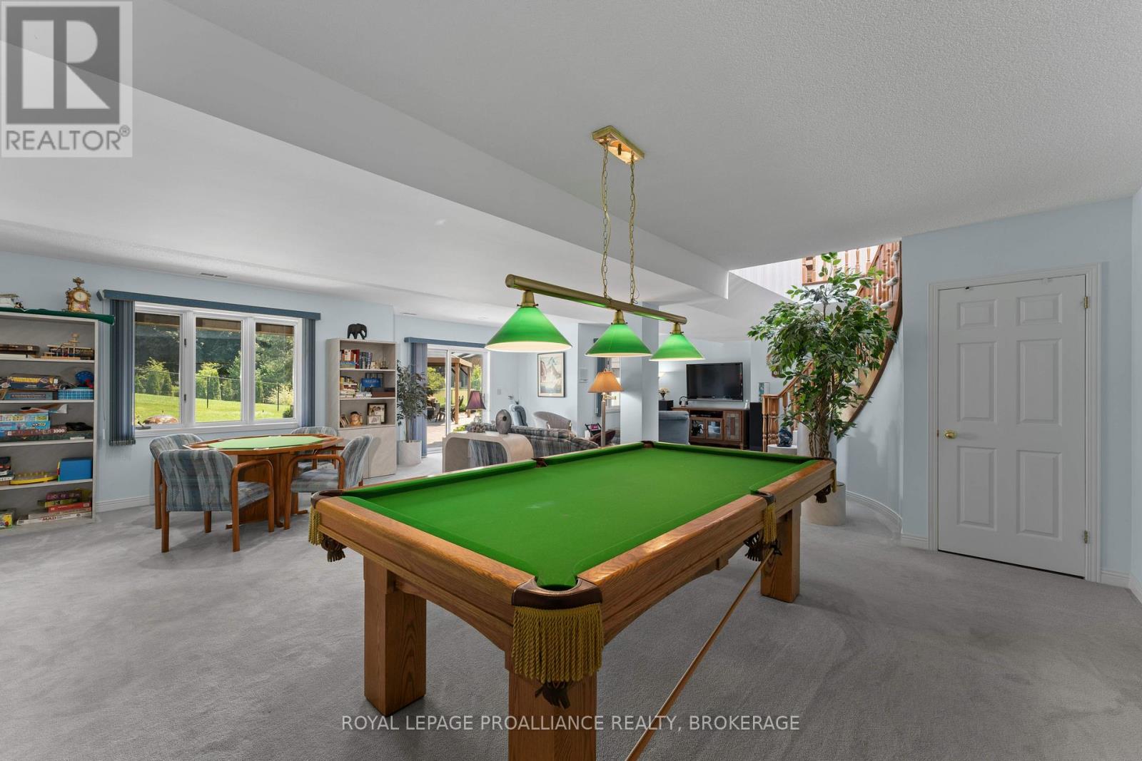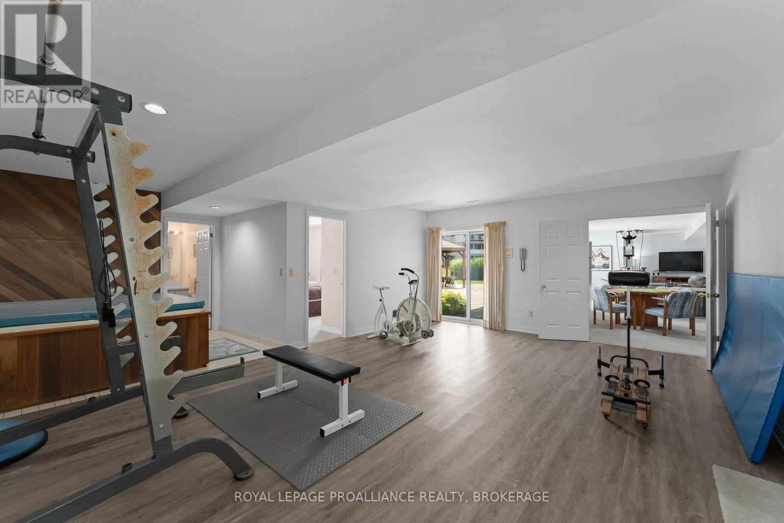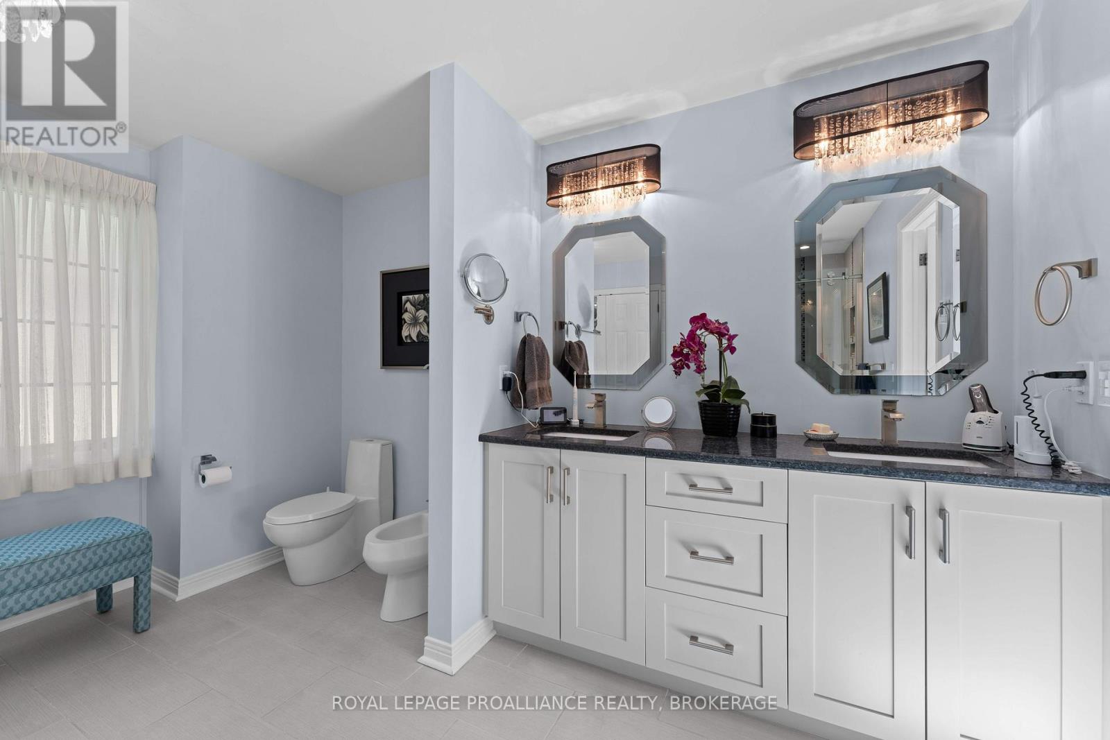 Welcome to your dream home - an exquisite brick walkout bungalow offering nearly 6,000 sqft of finished living space, situated on prestigious Treasure Island. This elegantly designed residence is beautifully landscaped, creating a serene setting for outdoor living. Enjoy direct access to the St. Lawrence River with a deeded 60ft dock, ideal for boating and waterfront enthusiasts. A standout feature of this home is its state-of-the-art geothermal heating and cooling system, designed for exceptional efficiency and sustainability. The system includes three drilled wells, each approximately 200 ft deep and 6 inches in diameter, along with approximately 1,200 ft of heating and cooling lines. This advanced setup significantly reduces annual energy expenses while providing consistent, environmentally friendly comfort year-round. Step inside to discover a modern, spacious layout ideal for family living. The home offers 3+1 bedrooms and 4 luxurious bathrooms, including recently renovated spaces and heated floors in the ensuite bathroom. A spiral staircase serves as a captivating architectural focal point, while the interlocking brick, triple driveway enhances the home's impressive curb appeal. Two years ago, substantial renovations were completed, including new flooring in several areas, new garage doors, a new front door, and a newly finished garage floor. In addition, the outdoor deck was replaced in 2010 with Trex decking, providing a durable, low-maintenance space for outdoor entertaining. Additional highlights include a 400-amp electrical panel to support today's modern lifestyle, an epoxy-finished garage floor, and a matching epoxy finish in the furnace room for added durability and cleanliness. With breathtaking water views and a backyard trail leading directly to the dock, this exceptional property offers the perfect balance of relaxation and adventure. Experience a lifestyle of luxury, comfort, and sustainability in this remarkable waterfront family retreat. (id:29295)