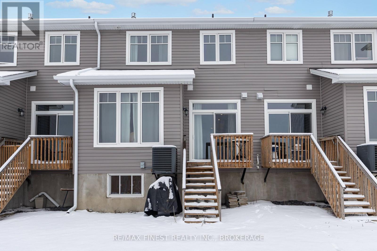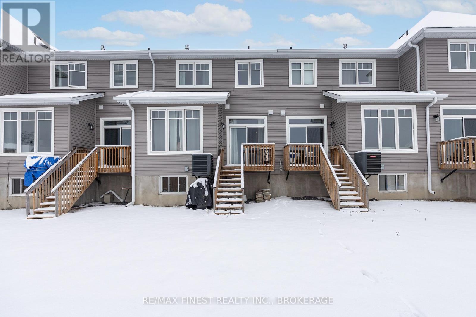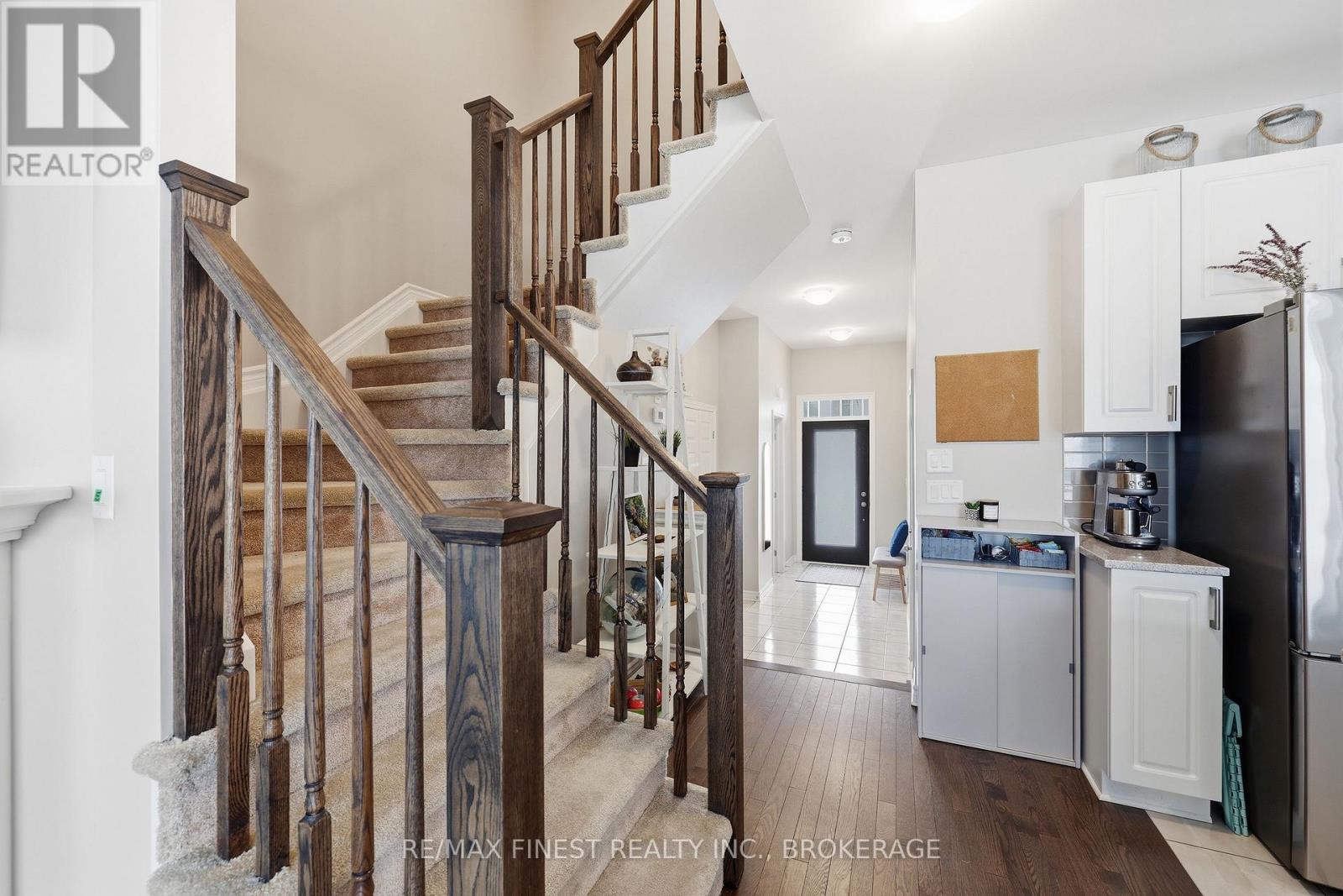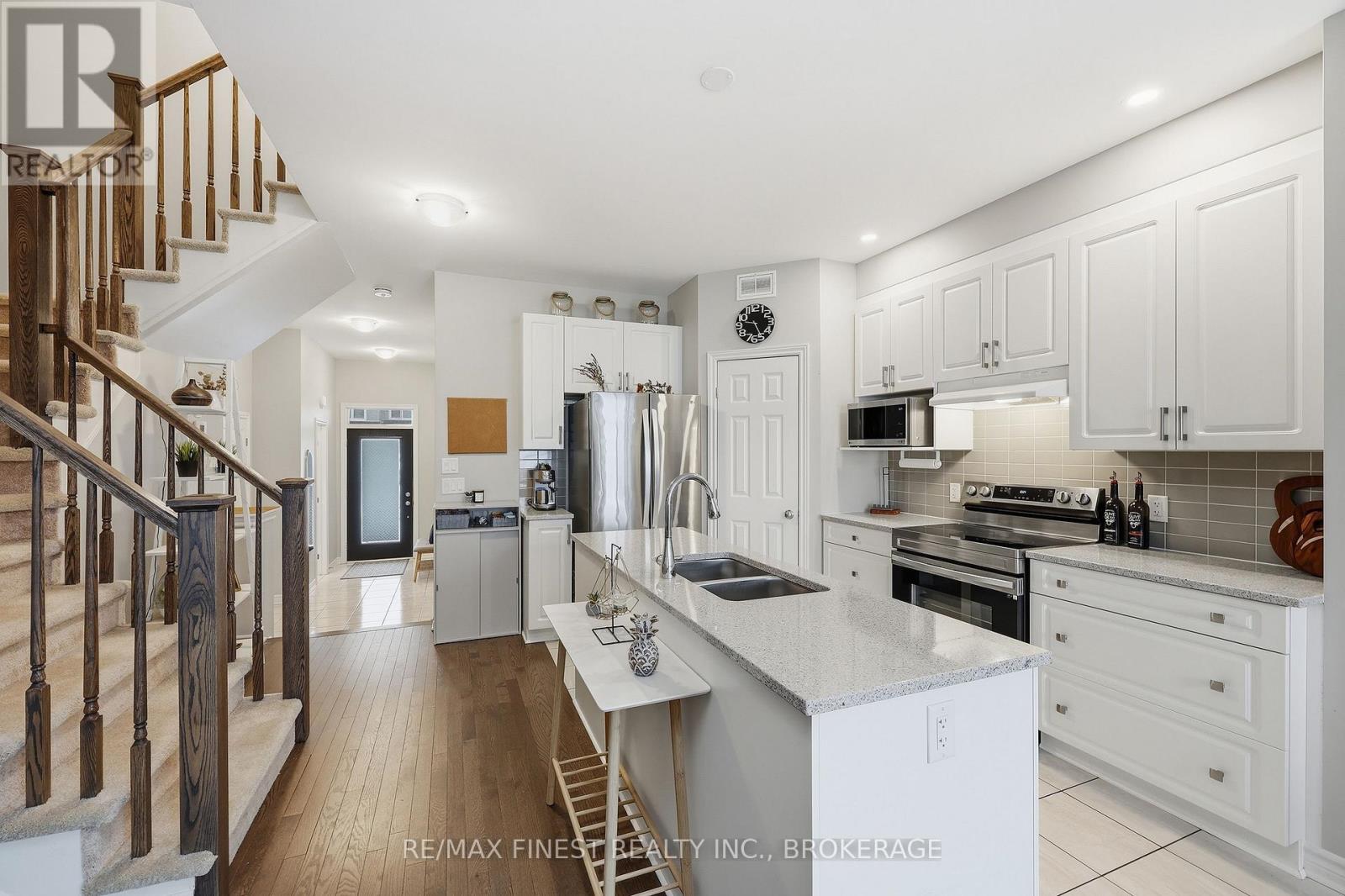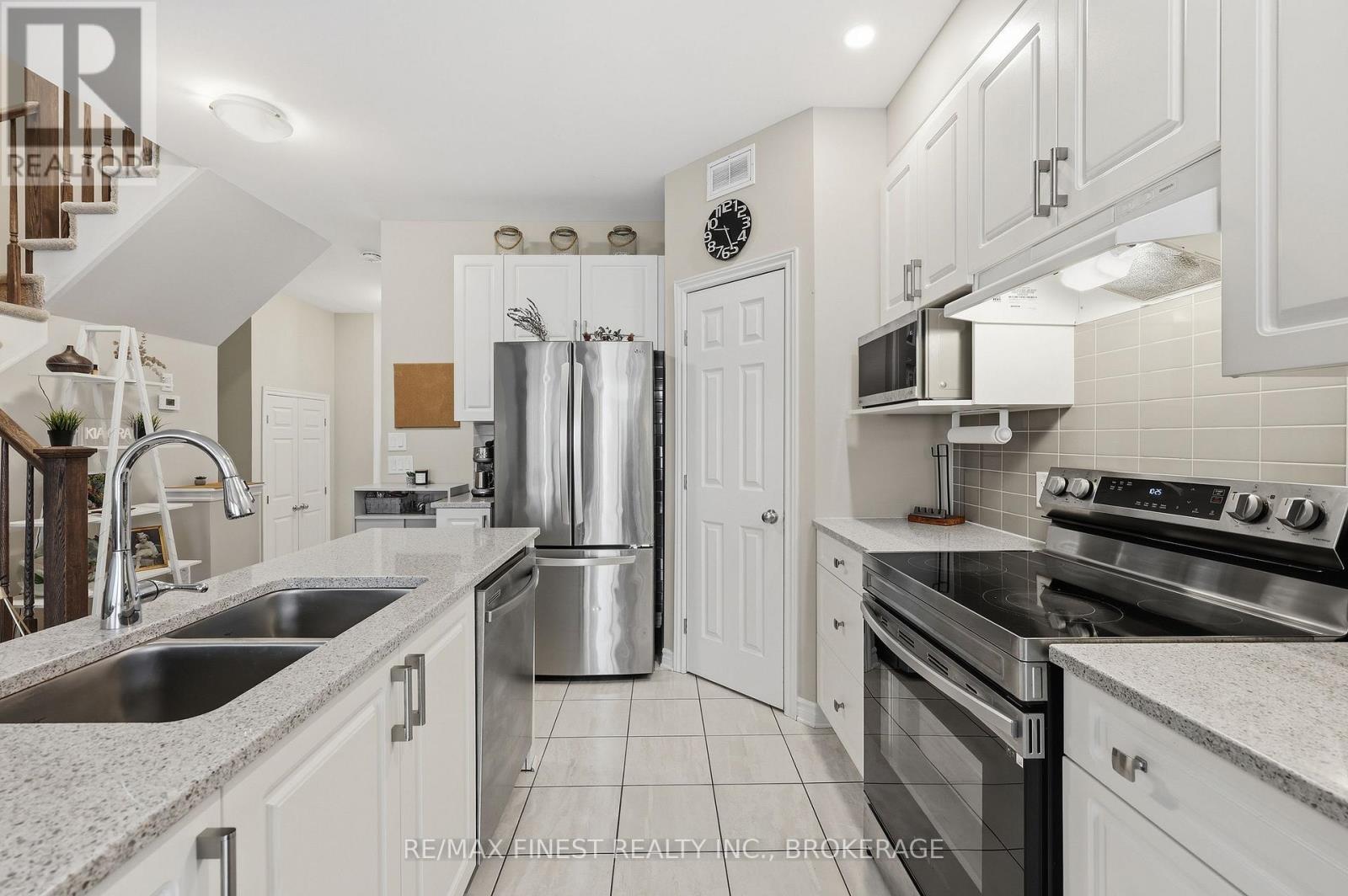 Welcome to this beautifully appointed 3-bedroom, 3-bathroom townhouse located in Kingston's west end. Designed with modern living in mind, this home offers high ceilings and an open-concept layout that's both spacious and inviting. The kitchen features quartz countertops, stainless steel appliances, and a stylish tile backsplash - perfect for everyday cooking or entertaining guests. Hardwood flooring spans the main level, while ceramic tile in all wet areas adds durability and easy maintenance. Relax by the cozy fireplace in the living room, framed by large transom windows and a patio door that flood the space with natural light. Upstairs, you'll find three comfortable bedrooms, including the primary bedroom with 4-piece ensuite, plus you'll enjoy the convenience of upper-level laundry. The finished rec room in the lower level provides added living space ideal for a family room, home gym, or office. Located close to schools, walking paths, west-end shops, and everyday amenities, this home combines comfort, style, and an excellent location. (id:29295)