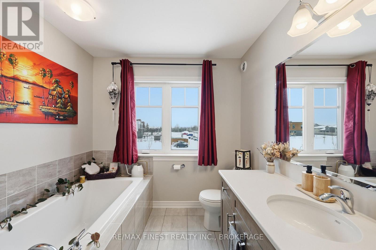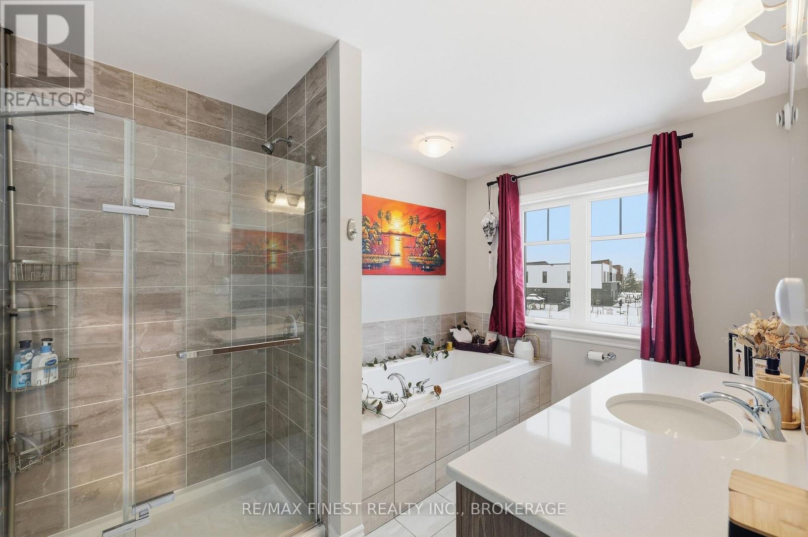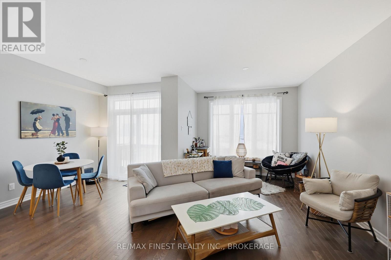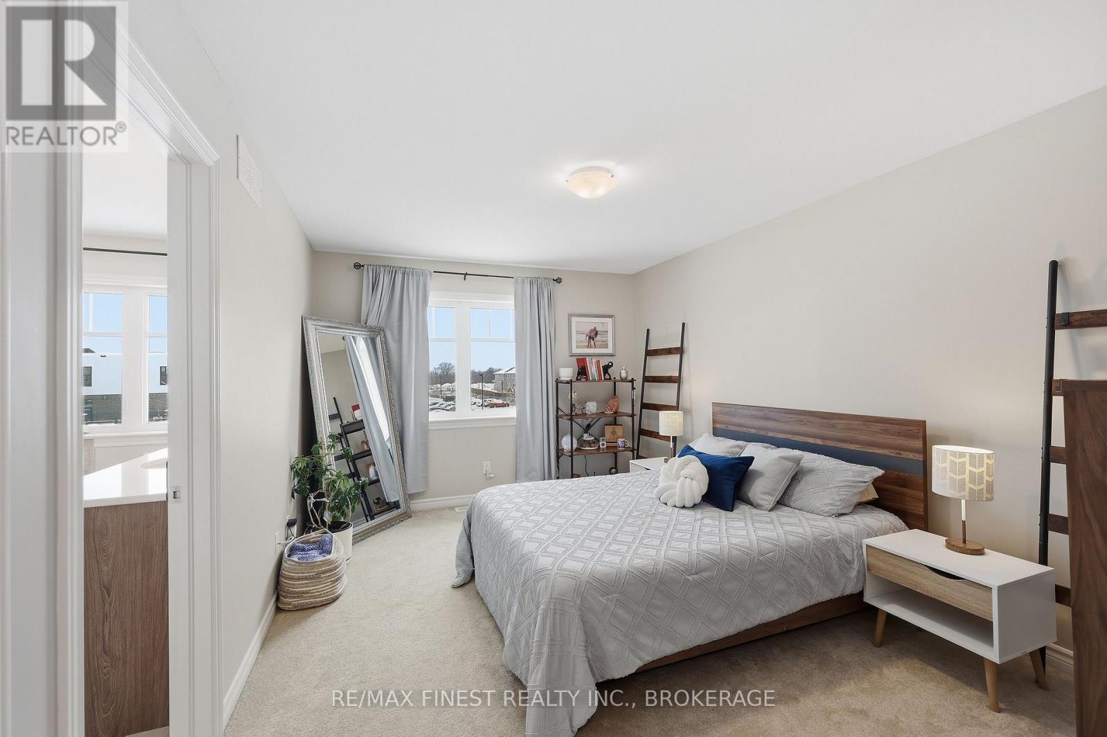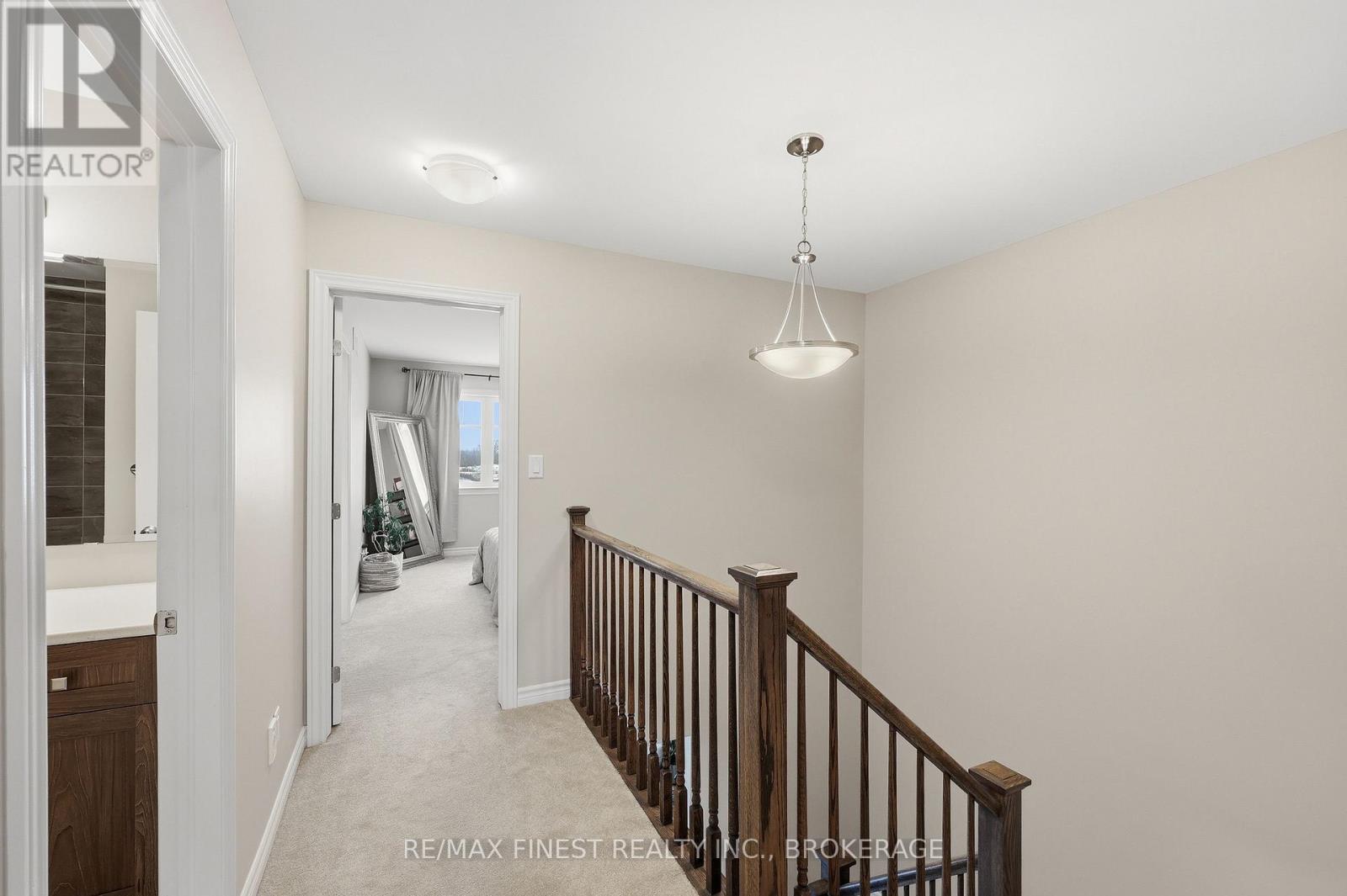 Welcome to this beautifully appointed 3-bedroom, 3-bathroom townhouse located in Kingston's west end. Designed with modern living in mind, this home offers high ceilings and an open-concept layout that's both spacious and inviting. The kitchen features quartz countertops, stainless steel appliances, and a stylish tile backsplash - perfect for everyday cooking or entertaining guests. Hardwood flooring spans the main level, while ceramic tile in all wet areas adds durability and easy maintenance. Relax by the cozy fireplace in the living room, framed by large transom windows and a patio door that flood the space with natural light. Upstairs, you'll find three comfortable bedrooms, including the primary bedroom with 4-piece ensuite, plus you'll enjoy the convenience of upper-level laundry. The finished rec room in the lower level provides added living space ideal for a family room, home gym, or office. Located close to schools, walking paths, west-end shops, and everyday amenities, this home combines comfort, style, and an excellent location. (id:29295)